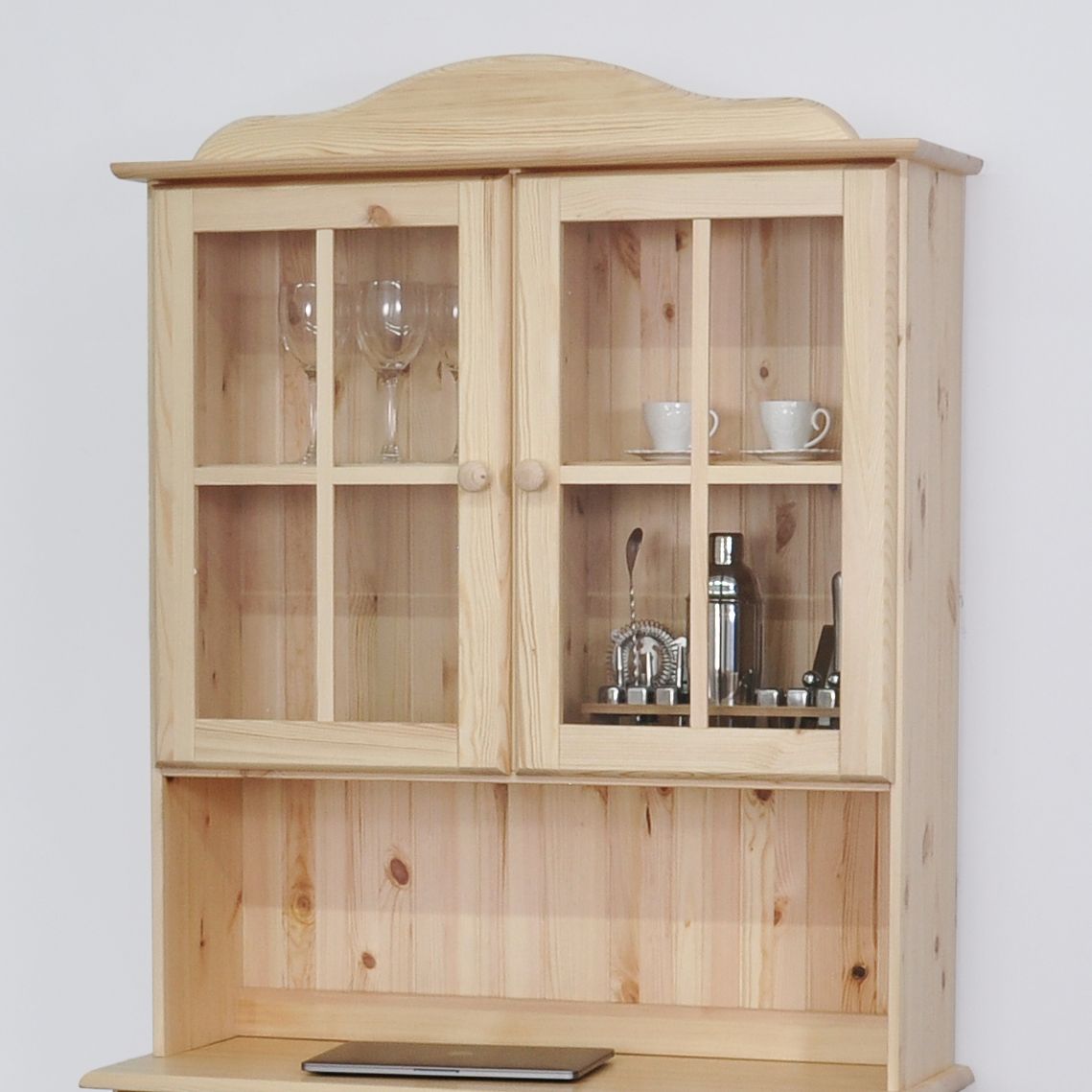 Шкаф-витрина "Лена" выполнен в универсальном классическом стиле прованс. Плавный карниз с фрезеровкой и остекленные двери с перекладинами придают ему изысканный и утончённый вид, который прекрасно дополнит любой интерьер, будь то городская современная квартира или деревенский домик. Задняя стенка надстройки выполнена из декоративной деревянной вагонки, которая придает буфету утонченный элегантный вид.