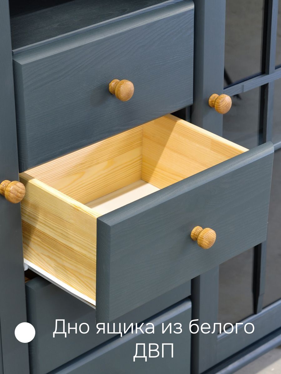 Покрытие серым воском с антикварным эффектом добавляет изделию уникальный внешний вид, подчеркивая текстуру древесины и сохраняя её натуральный оттенок. Такой воск защищает древесину от внешних воздействий, сохраняя её первоначальную свежесть на долгие годы. При этом, в отличие от химических покрытий, воск не выделяет вредных веществ, что делает комод безопасным и экологичным вариантом для дома.