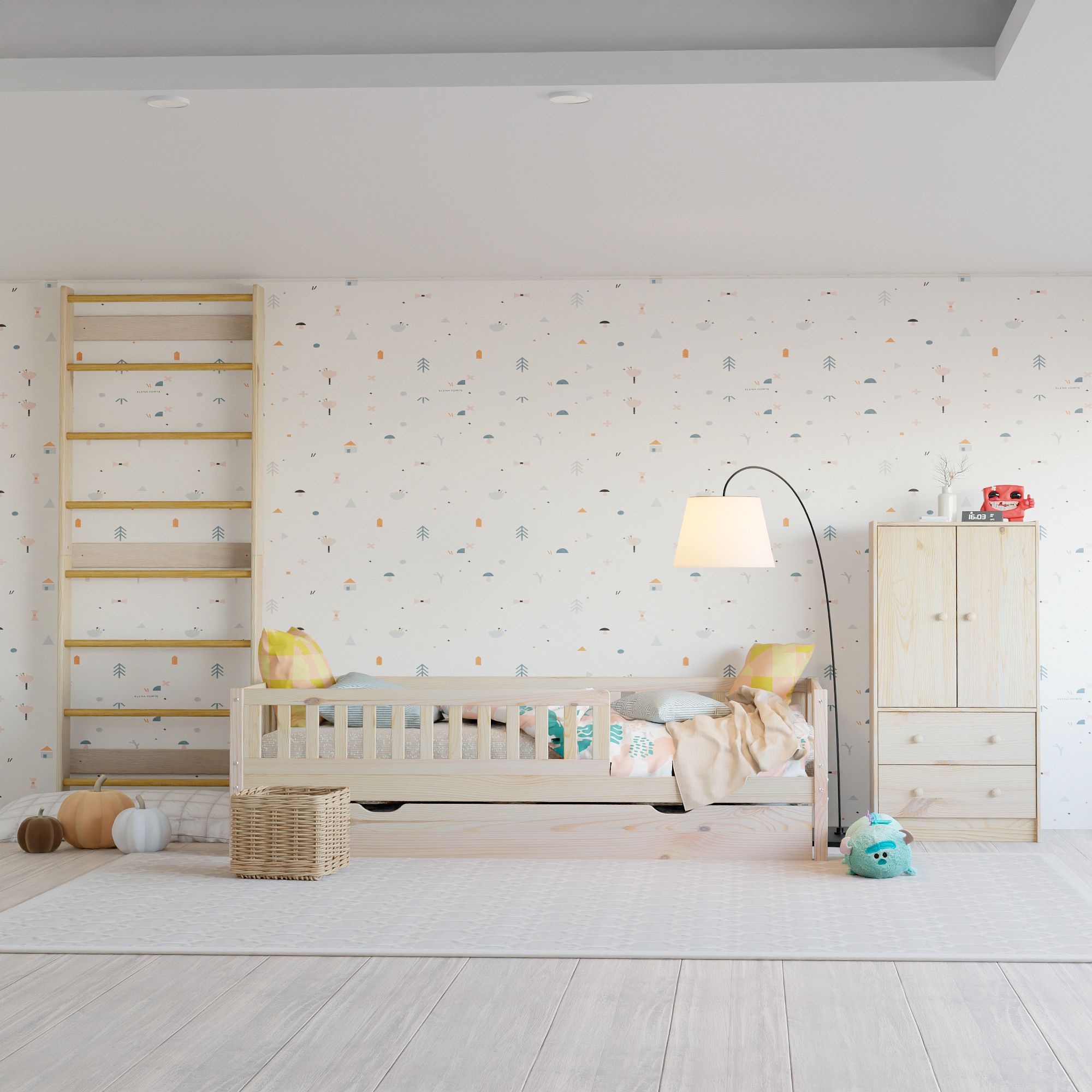 - Безопасная отделка: покрыта натуральным лаком, который не вызывает аллергии и безопасен даже для грудных детей. Лак подчеркивает природную текстуру древесины, делая поверхность не только эстетичной, но и приятной на ощупь.