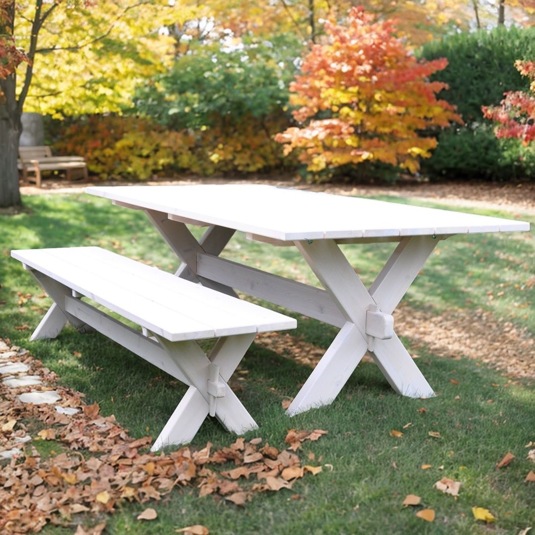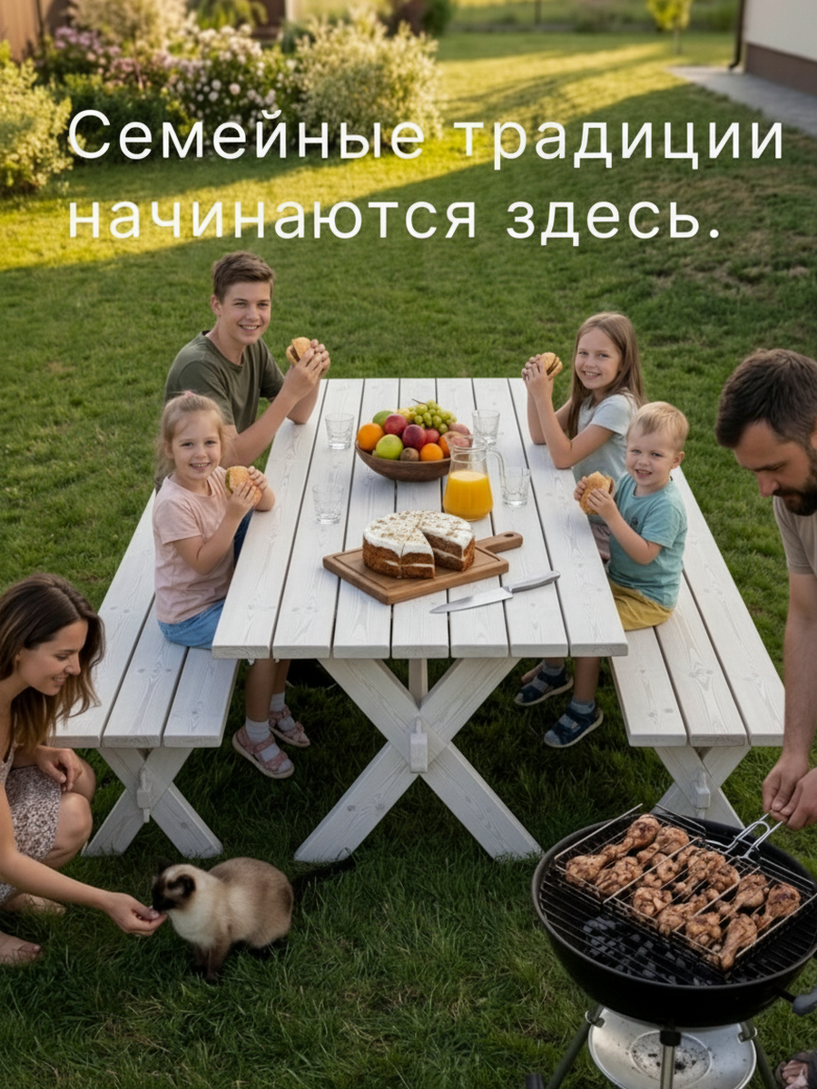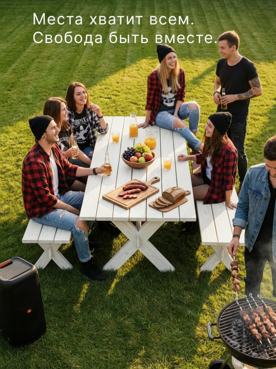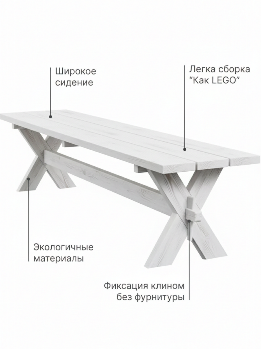 Наша деревянная скамейка стол имеет уникальное защитное покрытие белого цвета, обеспечивающее долговечность и защиту от воздействия внешних условий, что позволяет использовать ее на открытом воздухе в любое время года. Скамейка легкая и простая в использовании, занимает мало места и вмещает до 5 человек.