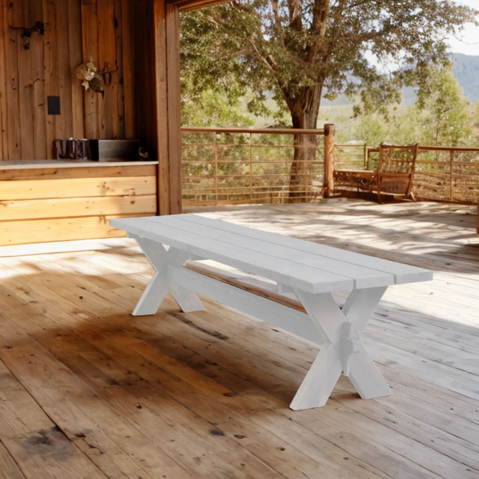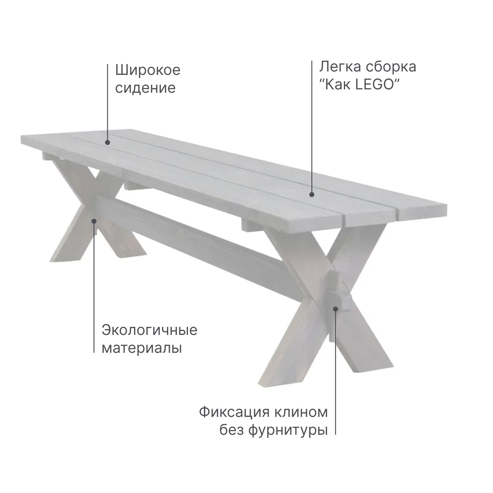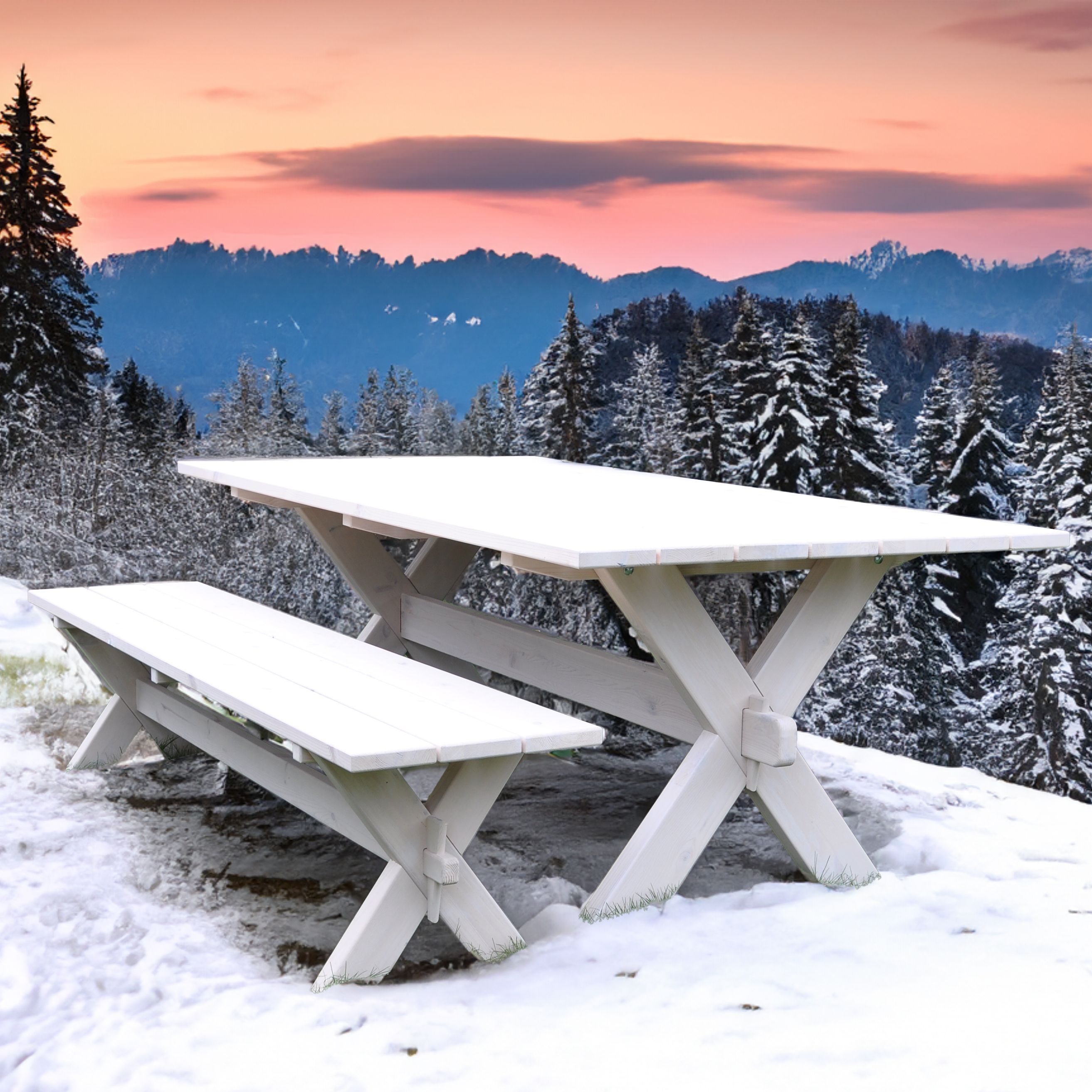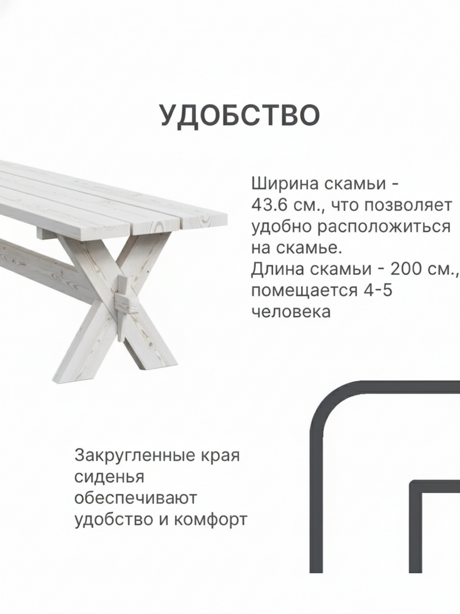 Наша деревянная скамейка стол имеет уникальное защитное покрытие белого цвета, обеспечивающее долговечность и защиту от воздействия внешних условий, что позволяет использовать ее на открытом воздухе в любое время года. Скамейка легкая и простая в использовании, занимает мало места и вмещает до 5 человек.