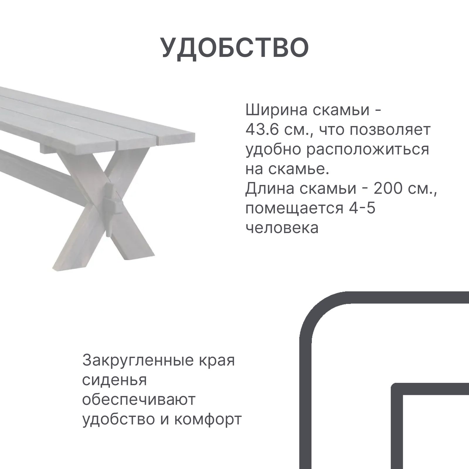 Скамейка отлично пригодится для приятного времяпровождения на открытом воздухе или для фуршета с сотрудниками в теплое время года. Основной замысел изделия данной серии - создание устойчивой, прочной скамейки для дачи и загородного отдыха, которая прослужит Вам долгие годы.