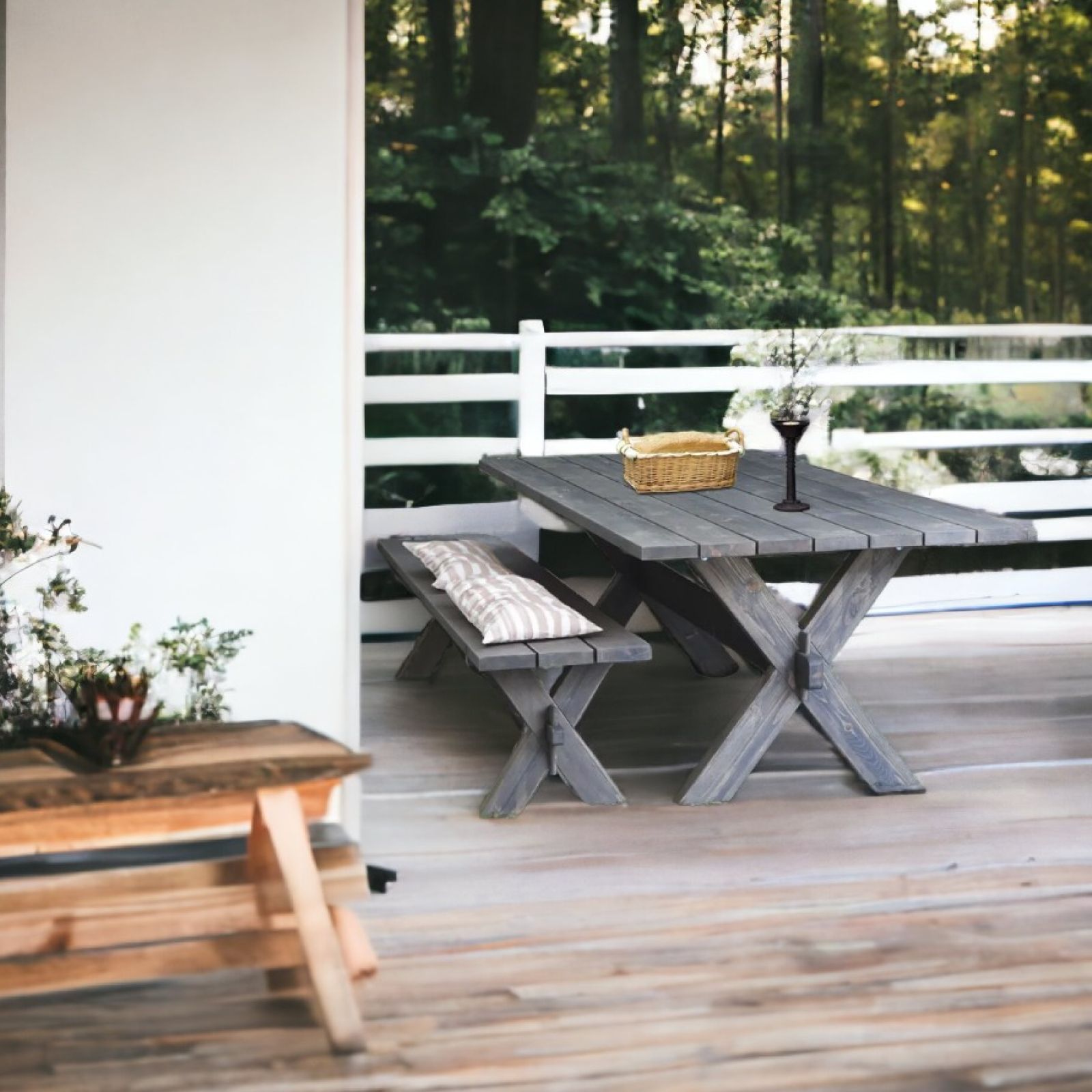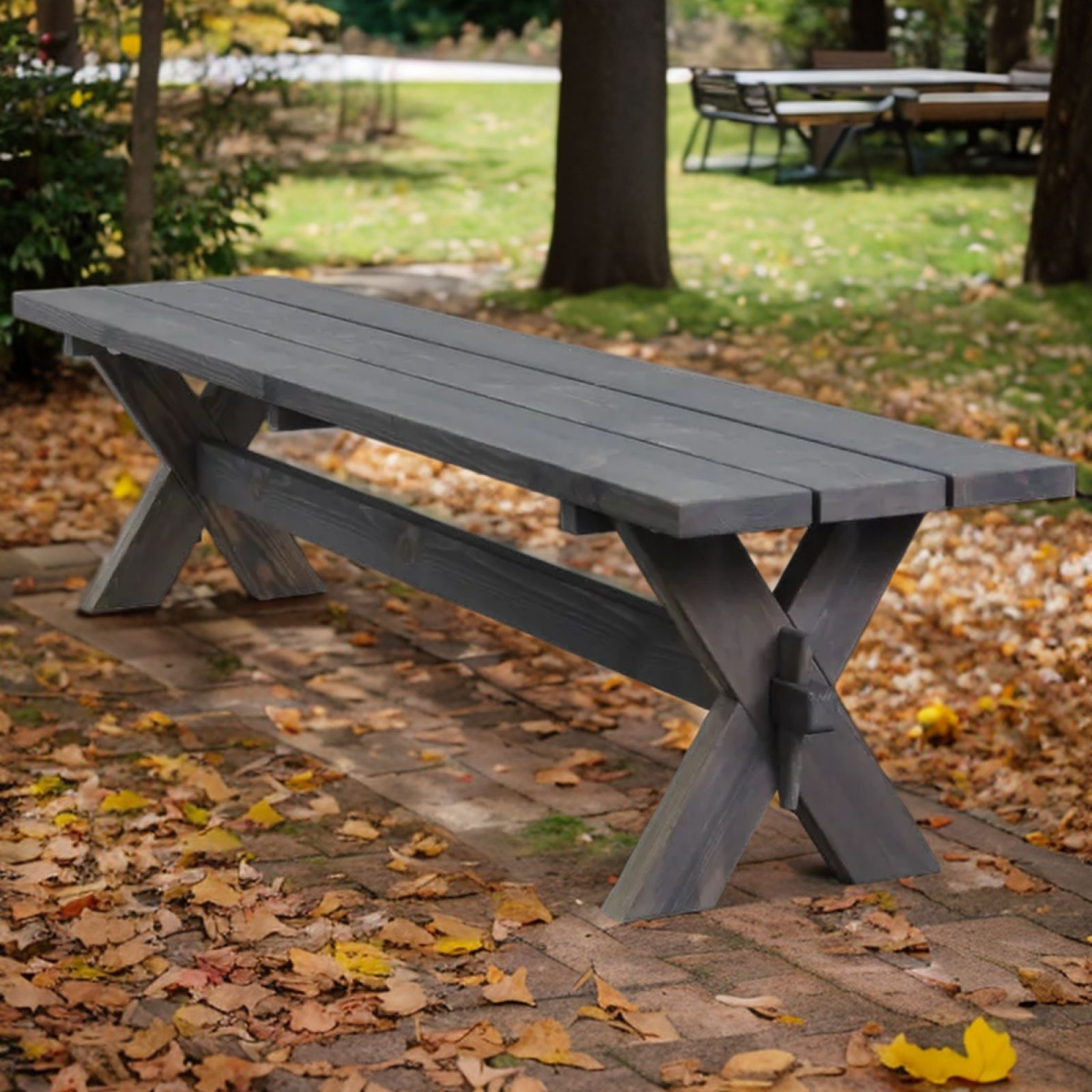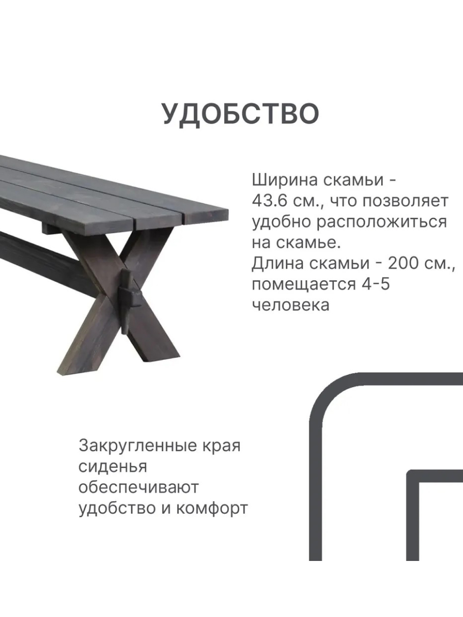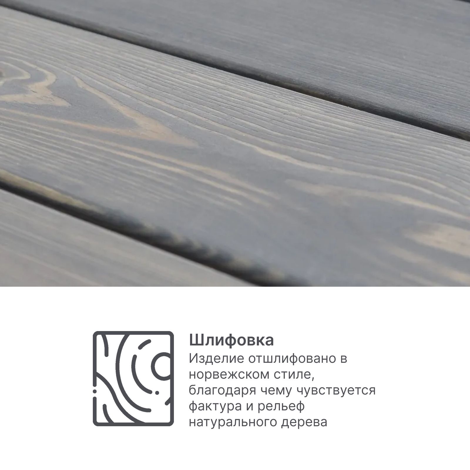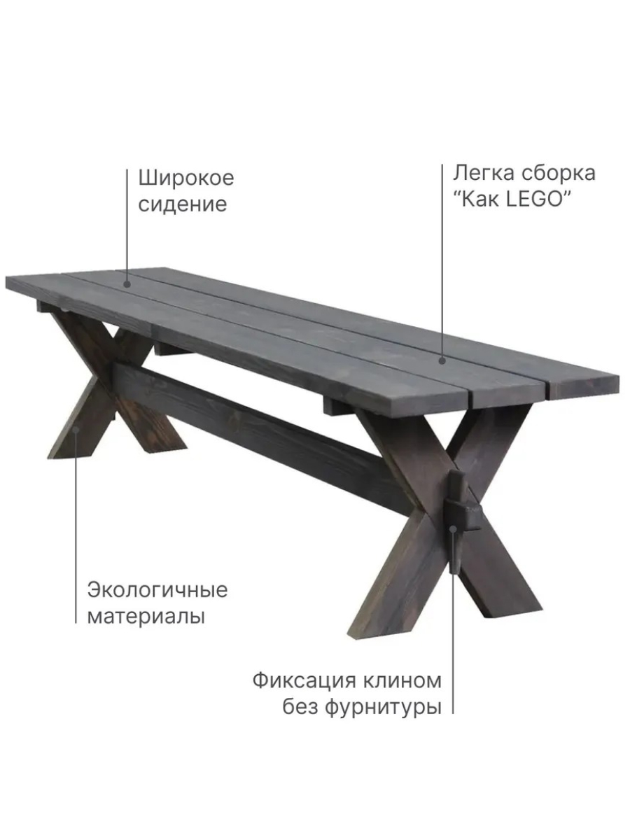 Наша деревянная скамейка стол имеет уникальное защитное покрытие серого цвета графит, обеспечивающее долговечность и защиту от воздействия внешних условий, что позволяет использовать ее на открытом воздухе в любое время года. Скамейка легкая и простая в использовании, занимает мало места и вмещает до 5 человек.