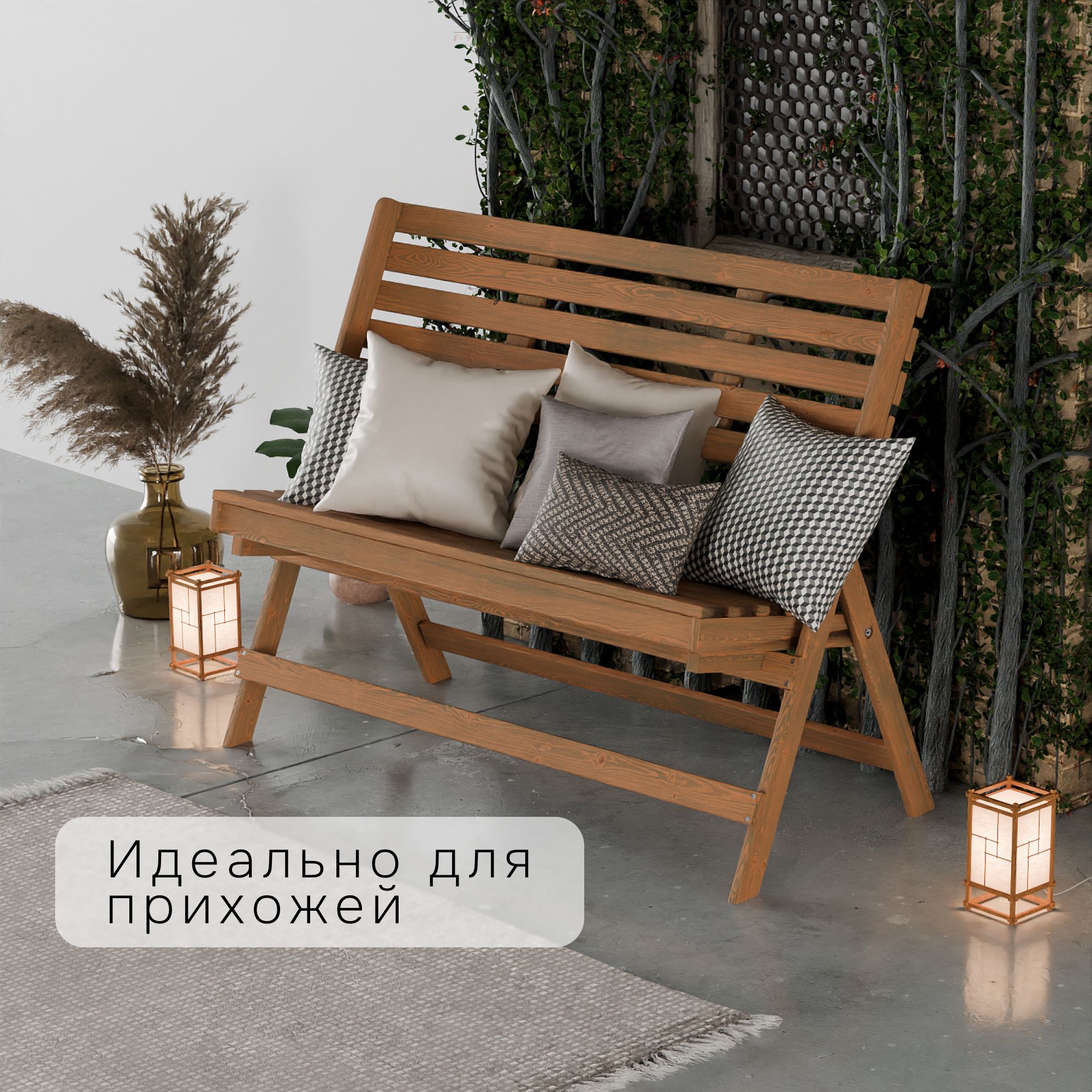 Основная идея садовой скамейки данной серии - создать устойчивую, прочную скамейку, которая прослужит долгие годы. Благодаря складной конструкции, не будет занимать много места в сложенном виде. Скамейка поставляется в полусобранном виде с качественной фурнитурой и понятной инструкцией по сборке в комплекте. Для более стабильного и устойчивого использования на улице допускается заделка термошпатлевкой.