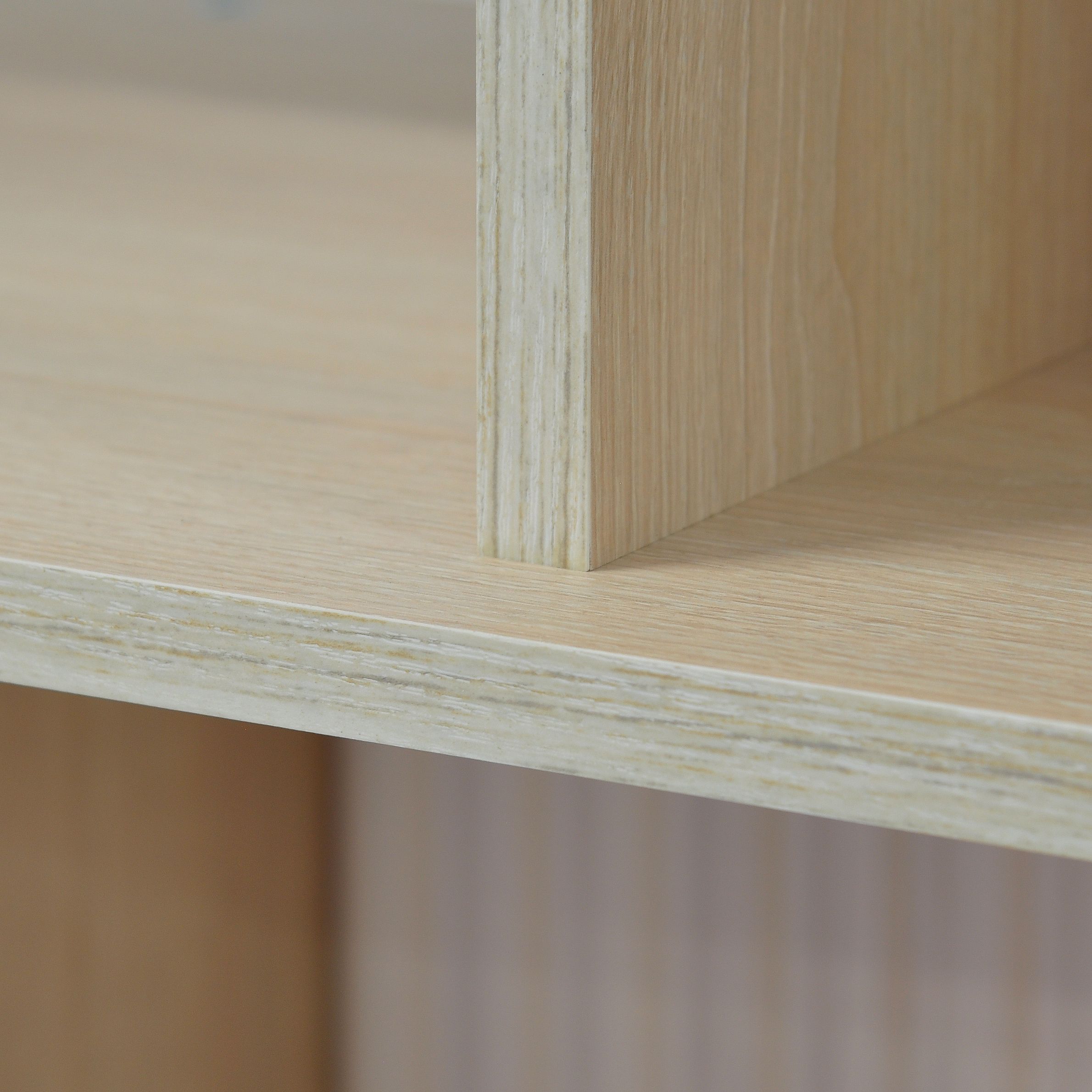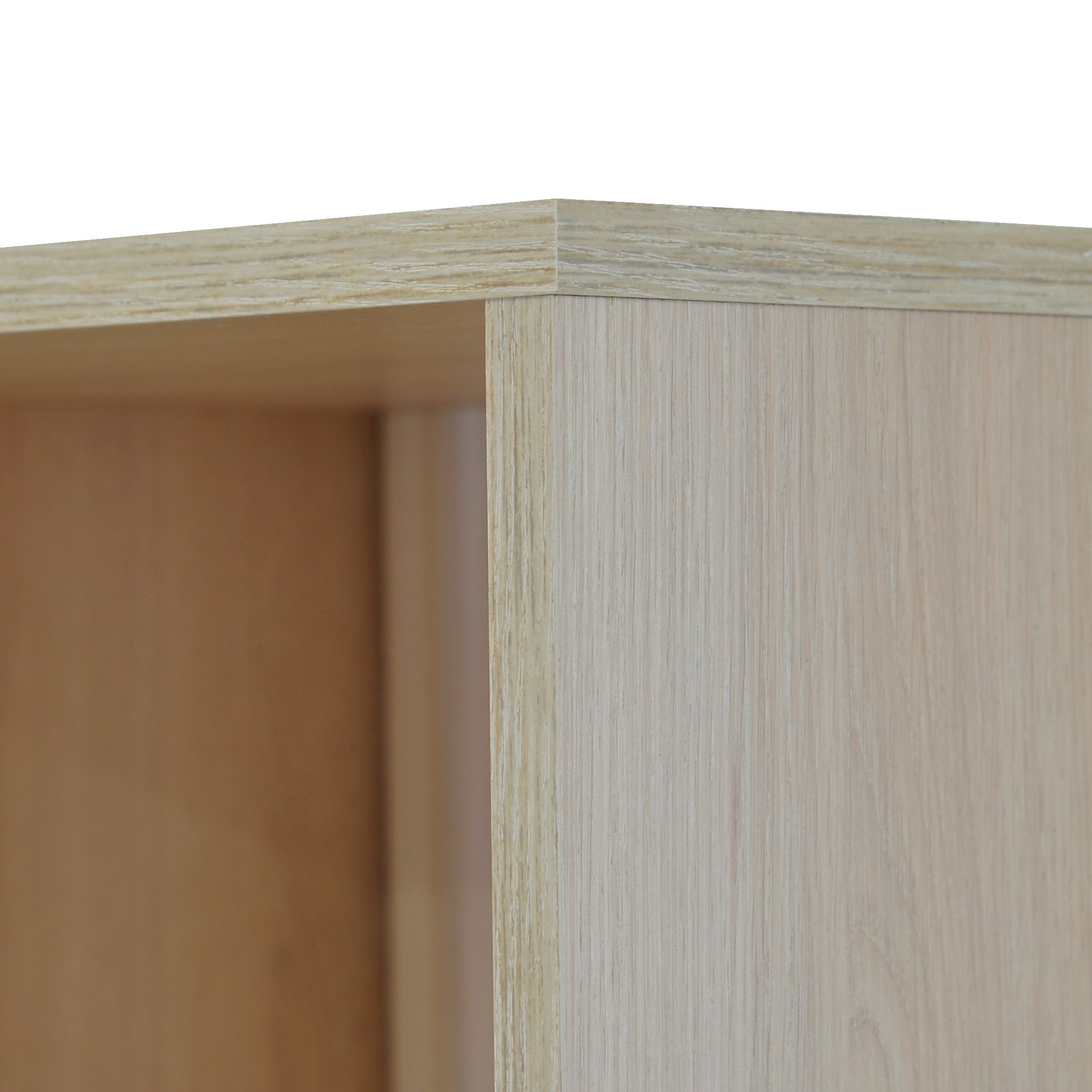 Стеллаж изготовлен из высококачественного ЛДСП цвета дуб шамони 331 (соответствует европейскому классу Е1, толщ. 16 мм), что позволяет безопасно использовать его даже в детской. Для задней стенки использовалось ДВП белого цвета. Книжный шкаф выполнен на высокоточном оборудовании, все кромки изделия обработаны аккуратно, промышленным методом на современных станках, что обеспечивает плотное прилегание древесного слоя, устойчивость к влажности и деформации.