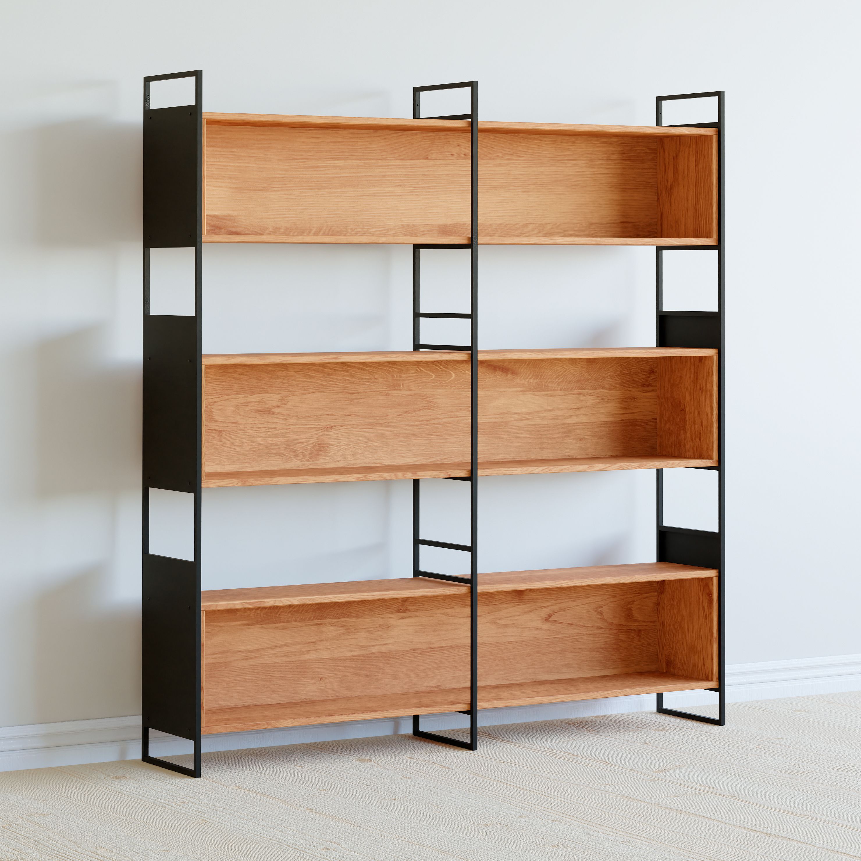 Стеллаж отличается лаконичным стилем, который легко дополнит современные интерьеры в стиле лофт, индастриал и ар-деко, а также прекрасно впишется в классический дизайн помещения. Благодаря своей универсальности и элегантности, этот стеллаж деревянный может быть использован как для организации книжных полок, так и для хранения игрушек или других мелких предметов.