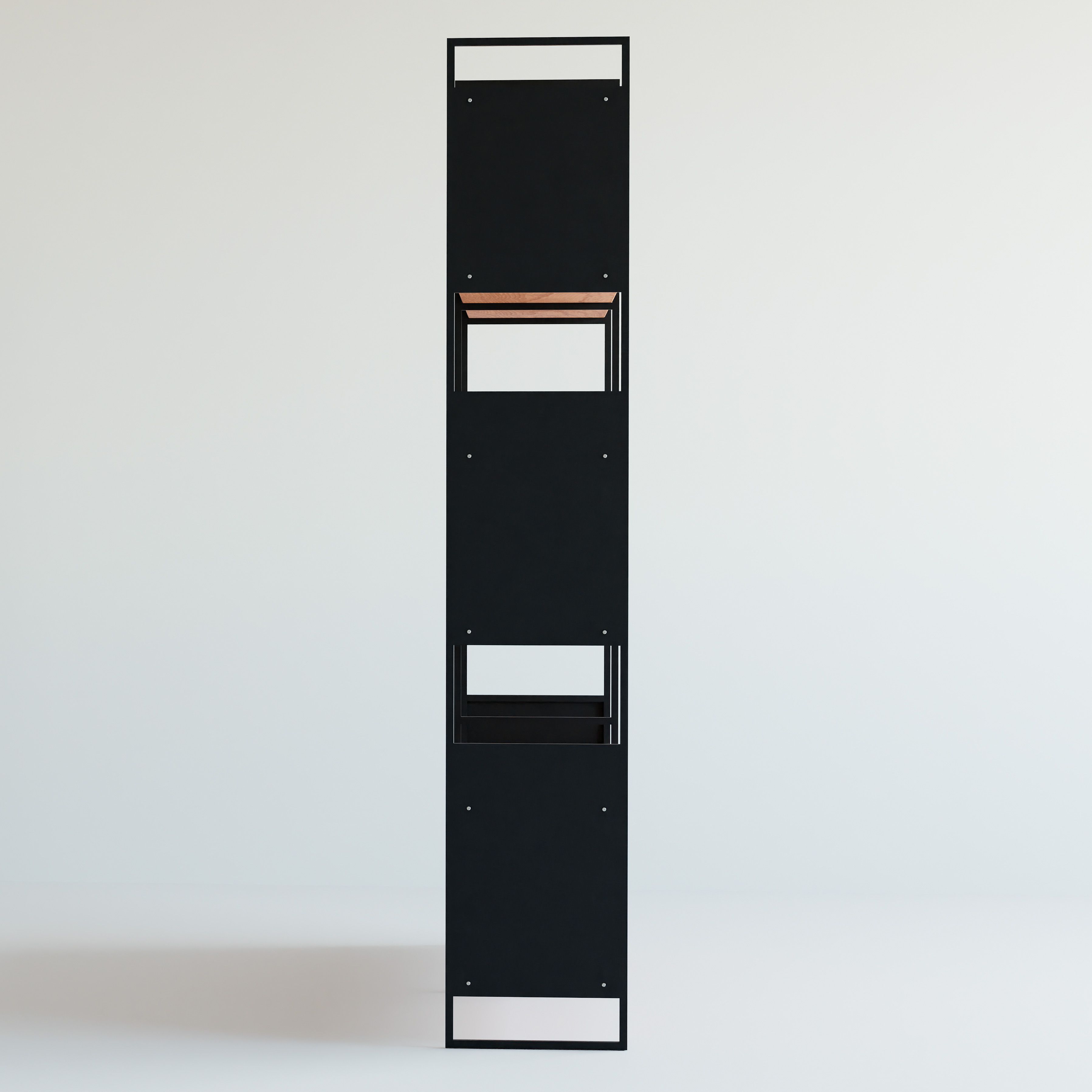 Этот высокий деревянный стеллаж поставляется в разобранном виде, но в комплекте есть вся необходимая мебельная фурнитура и подробная инструкция для сборки. Для обеспечения стабильности и безопасности, стеллаж рекомендуется крепить к стене.