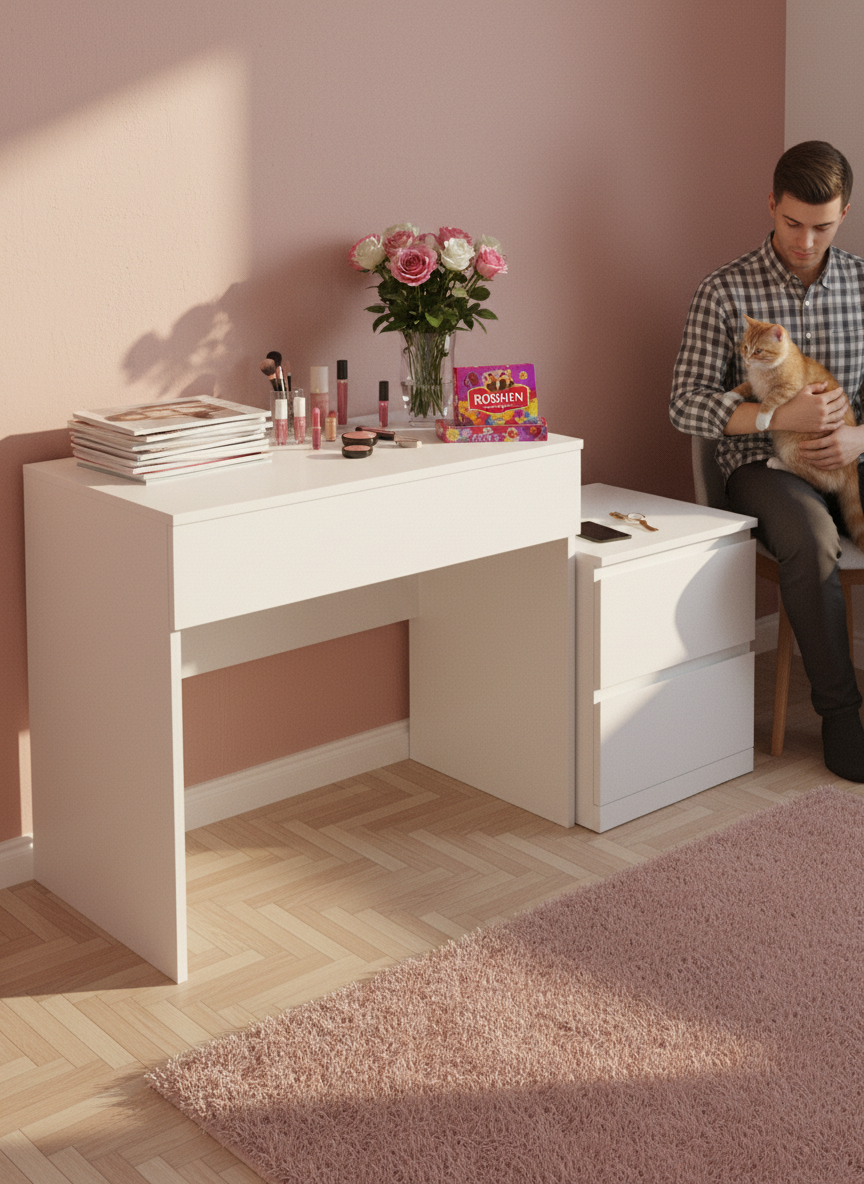 Столик подойдет для спальни. Стоит только повесить настенное зеркало и изделие превратится в туалетный столик, а выдвижной ящик идеально подойдет для хранения косметики, украшений и книг и прочих мелочей. Стол-консоль можно использовать для офиса и для детской комнаты как рабочее место. С хорошим настольным светильником стол можно использовать как маникюрный стол.