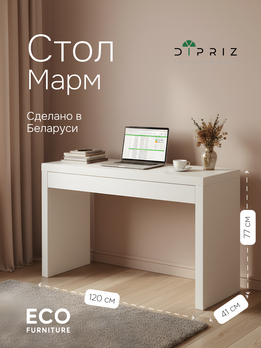 Специально разработанный стол-консоль Марм относится к эргономичной мебели. Консоль оснащена выдвижным ящиком, при этом занимает мало места - идеальный вариант для небольших помещений.
