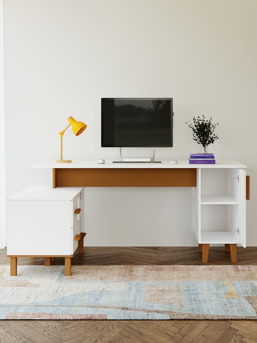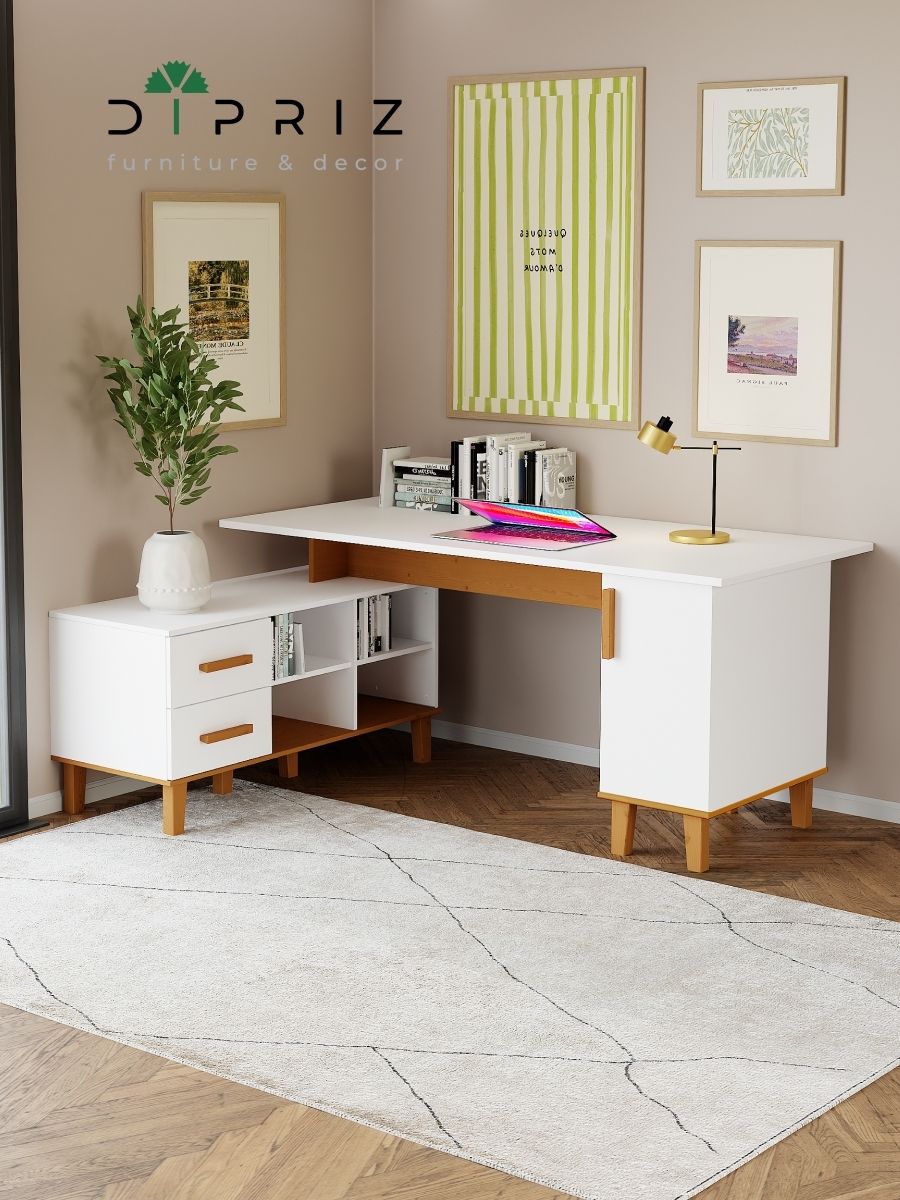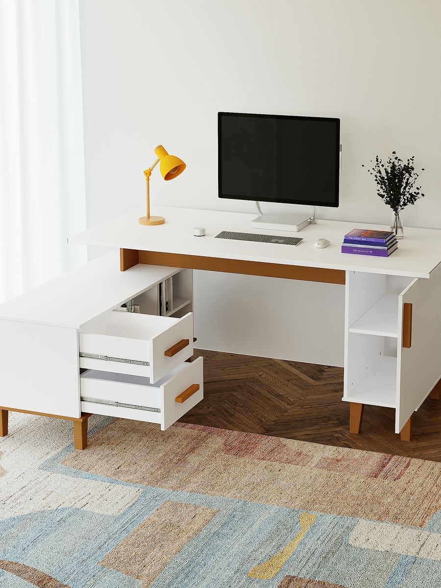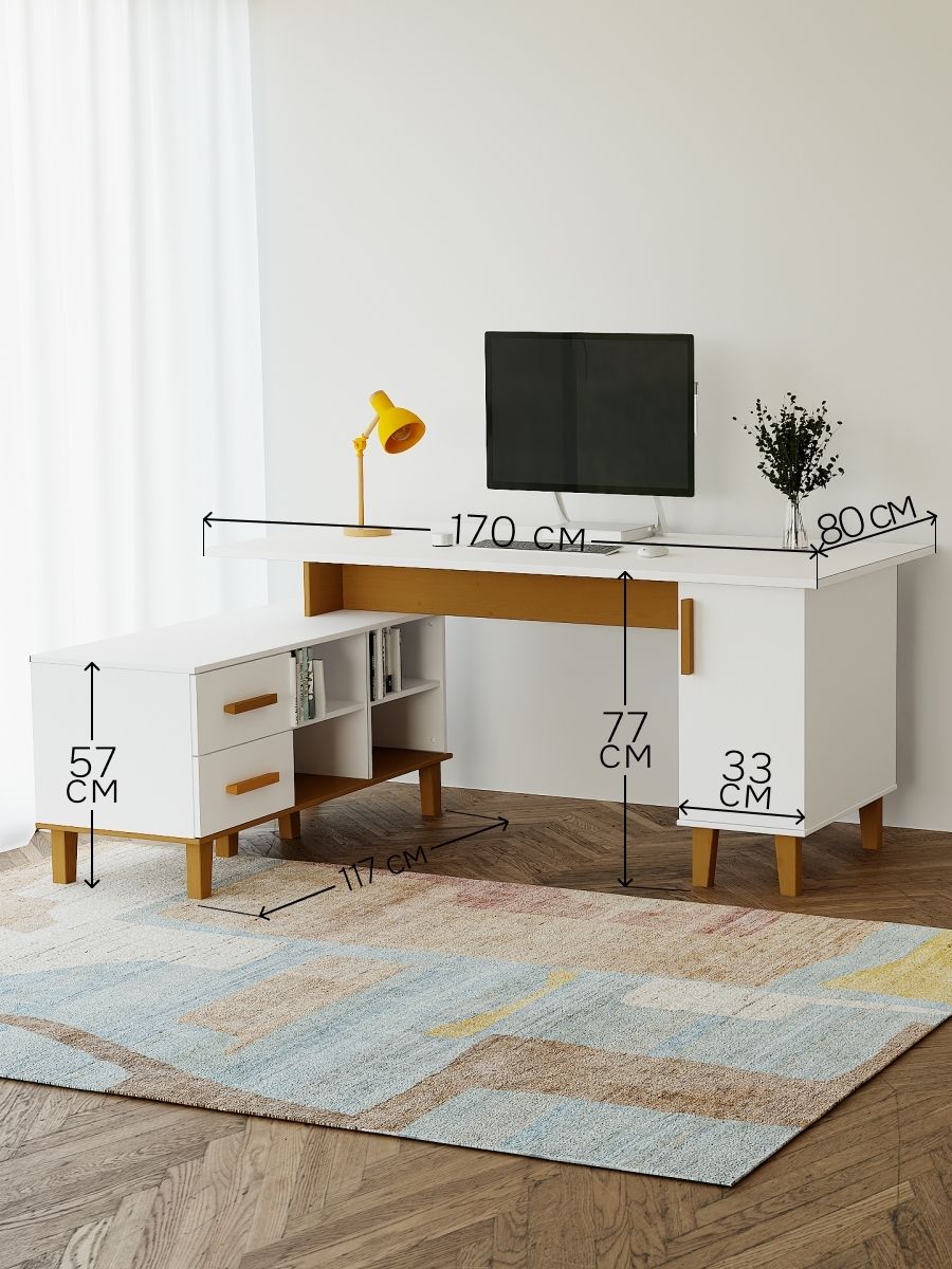 Угловая конструкция позволяет максимально эффективно использовать вашу рабочую зону, делая стол отличным выбором для дома, офиса или детской. Эргономичный дизайн воплощает в себе продуманную систему хранения: два выдвижных ящика, вместительная тумба с дверцей и открытые полки помогут поддерживать порядок и держать все необходимые вещи под рукой.
