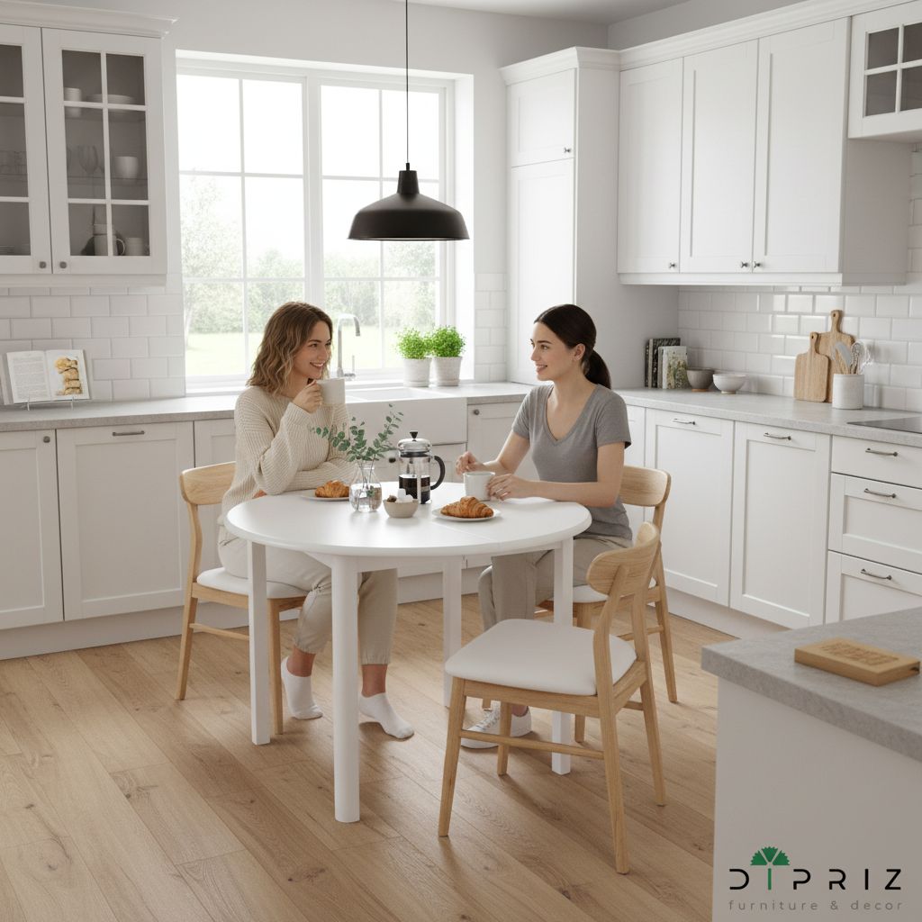 - универсальный дизайн: классическая круглая форма подходит для кухни, столовой, гостиной в американском или классическом стиле