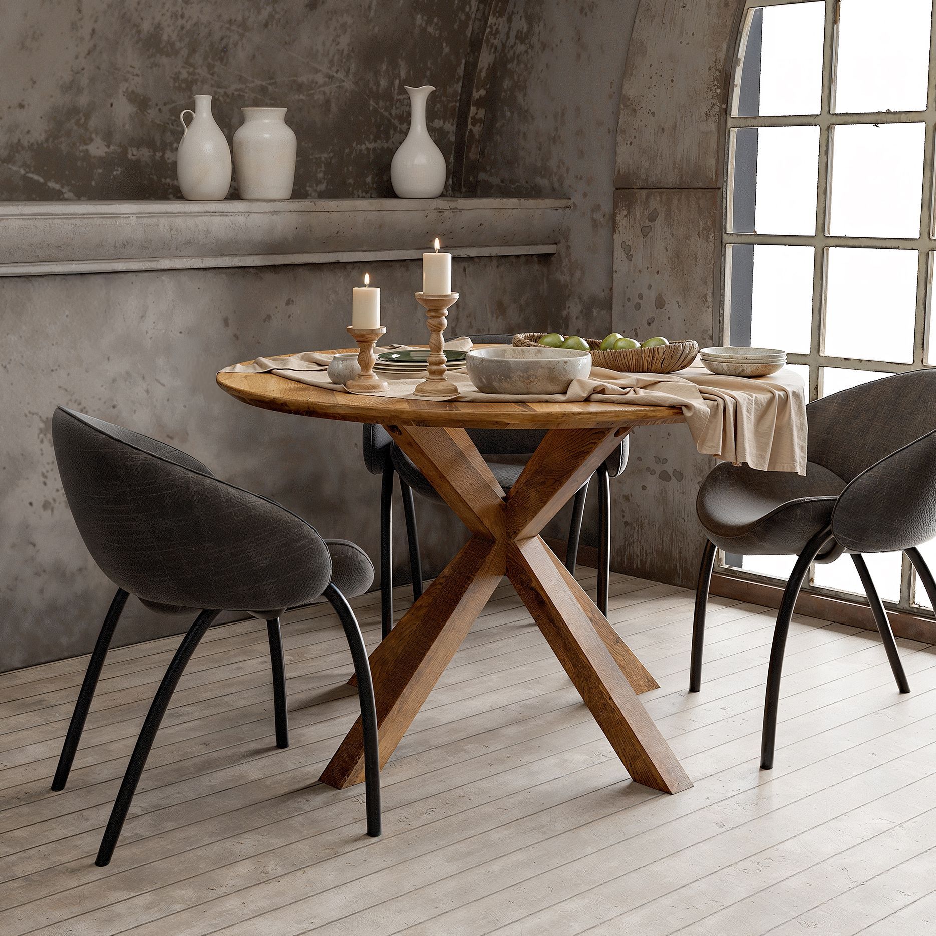 Круглая форма этого стола не только оптимизирует пространство, но и является символом дружной семейной трапезы и душевных бесед. Современный обеденный стол в стиле лофт придаст вашей кухне или столовой нотку изысканности. Он достаточно большой, чтобы вместить всю семью и гостей, делая каждую трапезу особенной. Высокое качество дуба гарантирует долговечность и надежность, а массивная конструкция придает столу устойчивость и прочность.