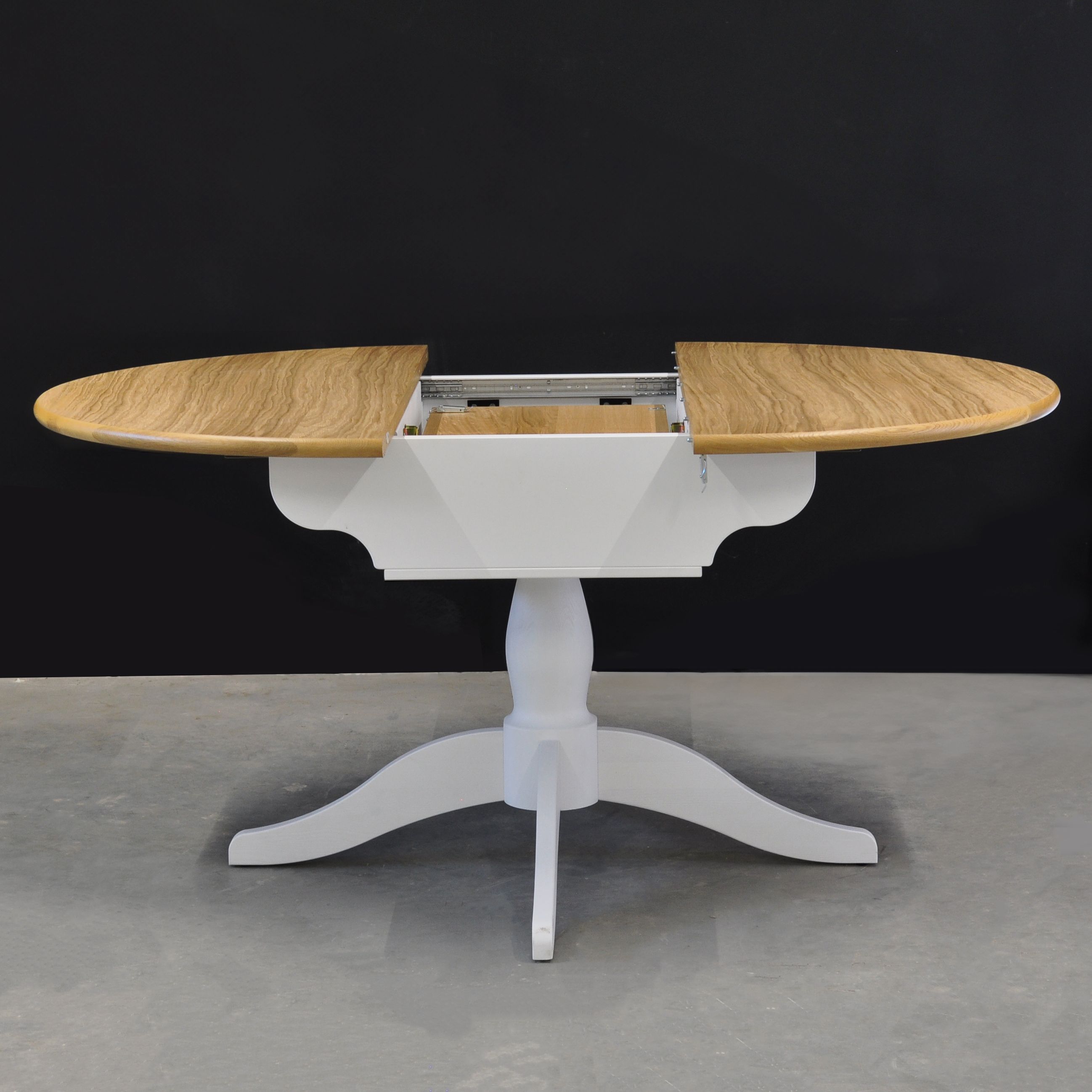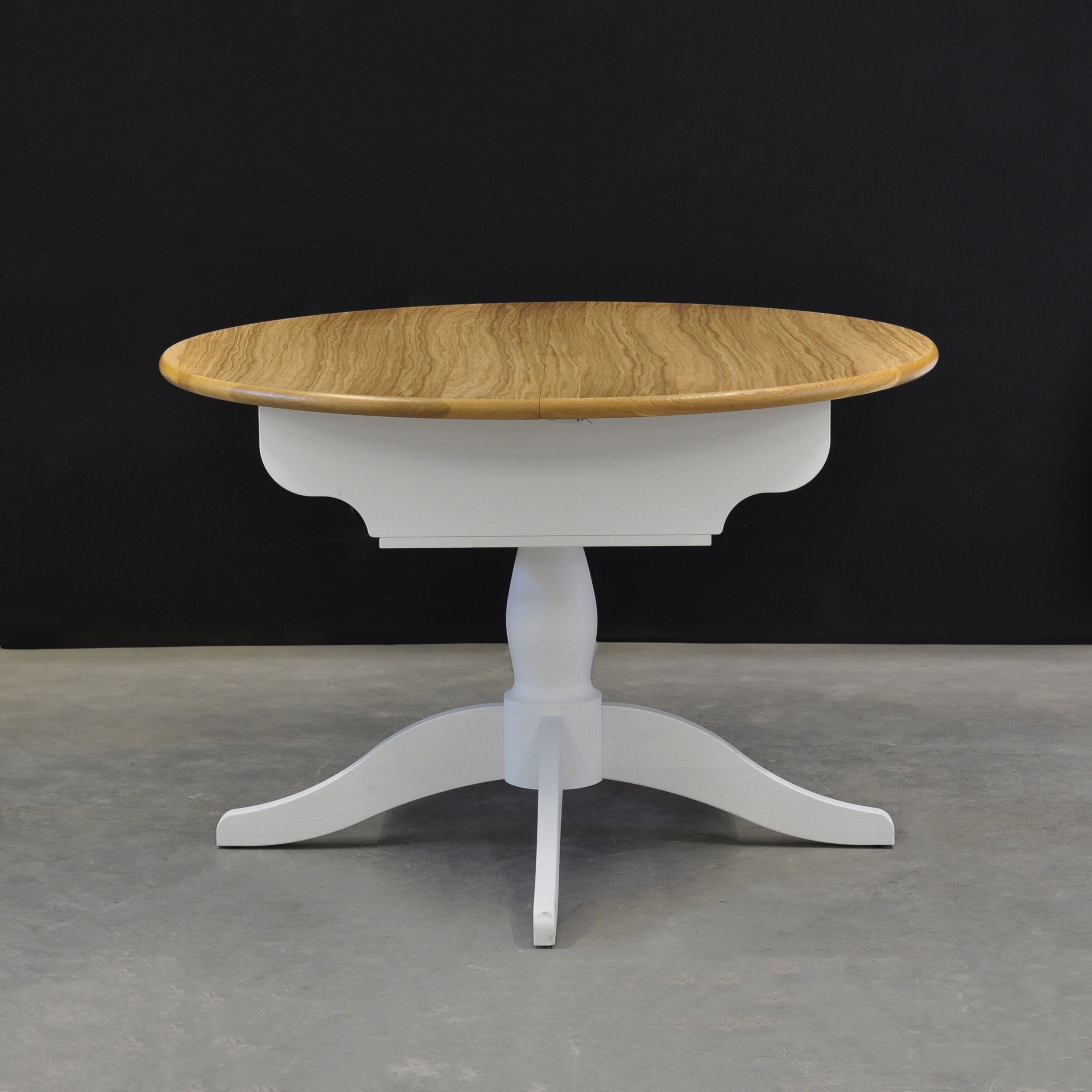 Изящный и функциональный круглый обеденный стол с раздвижной конструкцией станет великолепным дополнением вашей кухни или столовой. Благодаря сочетанию натуральной сосны, ламинированного ДСП и натурального дубового шпона, этот стол привнесёт в ваш интерьер элегантность и уют.