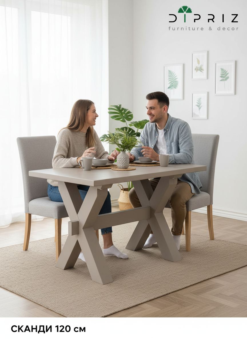 Обеденный стол "Сканди" от белорусского производителя "Диприз" — это стильная и экологически чистая мебель, выполненная из натурального массива сосны. Серый цвет и лаконичный дизайн делают его идеальным выбором для современных интерьеров, создавая уютную атмосферу в вашем доме.