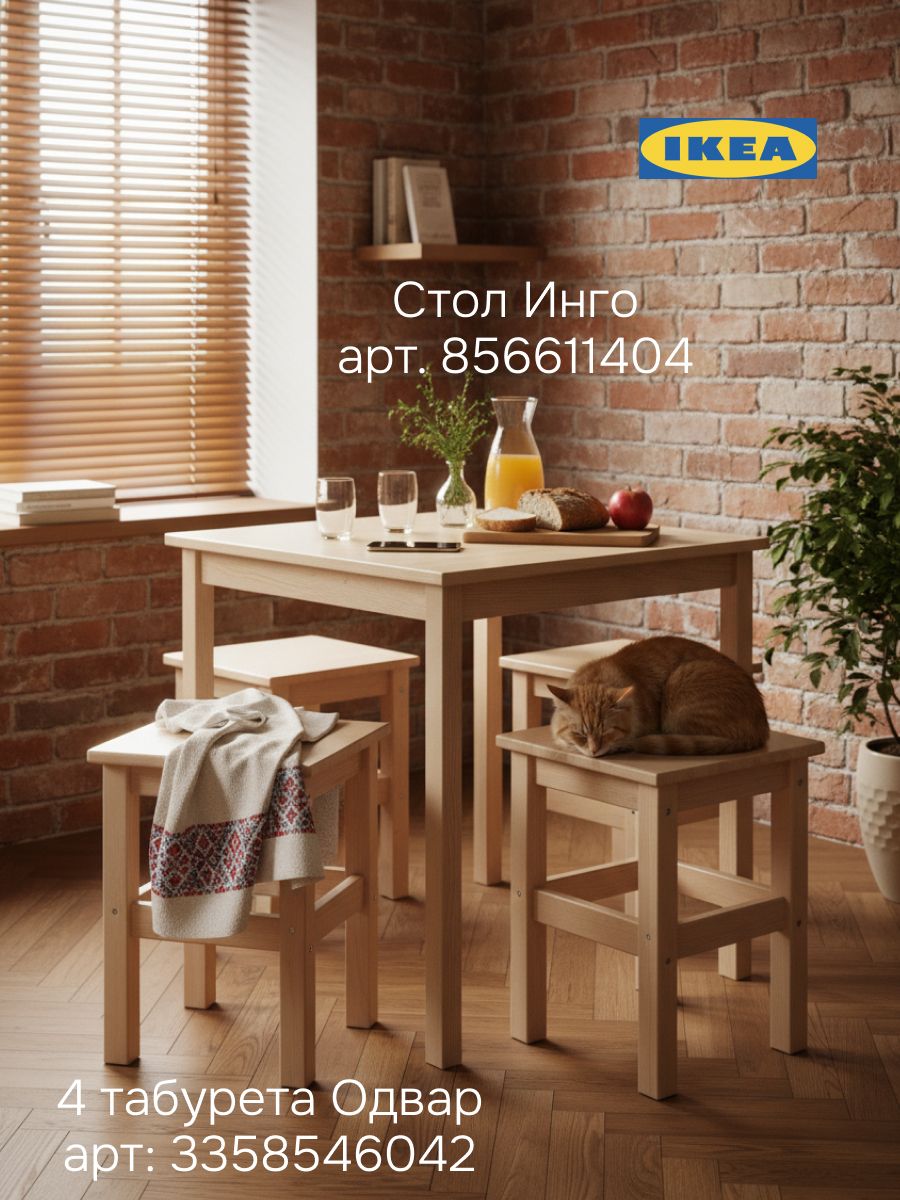 Стол IKEA INGO 75×75 см из массива сосны — это как чистый холст для вашего дома, который ждет ваших идей и наполняется теплом семейных моментов. Представьте: компактный обеденный стол из натурального дерева стоит на кухне, а за ним собирается вся семья на завтрак, или он превращается в уютный уголок для детских поделок в комнате малыша. Белорусский поставщик IKEA сделал его прочным и долговечным, с толщиной столешницы 18 мм, сечением ножек 40×40 мм и расстоянием между ними 640 мм — все продумано для стабильности и удобства.