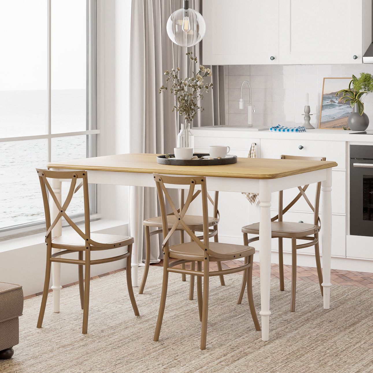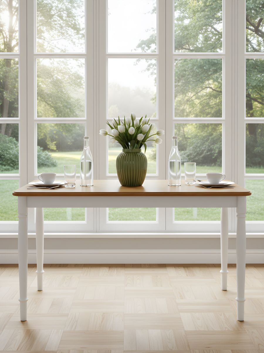 Стол обеденный деревянный Дандерид изготовлен из массива березы, что обеспечивает ему высокую прочность и долговечность. Столешница, покрытая шпоном дуба, придаёт изделию роскошный вид и делает его устойчивым к механическим повреждениям. Точеные ножки, выкрашенные в белый цвет, создают ощущение легкости и элегантности, делая этот стол подходящим как для классических, так и для современных интерьеров в стиле лофт.