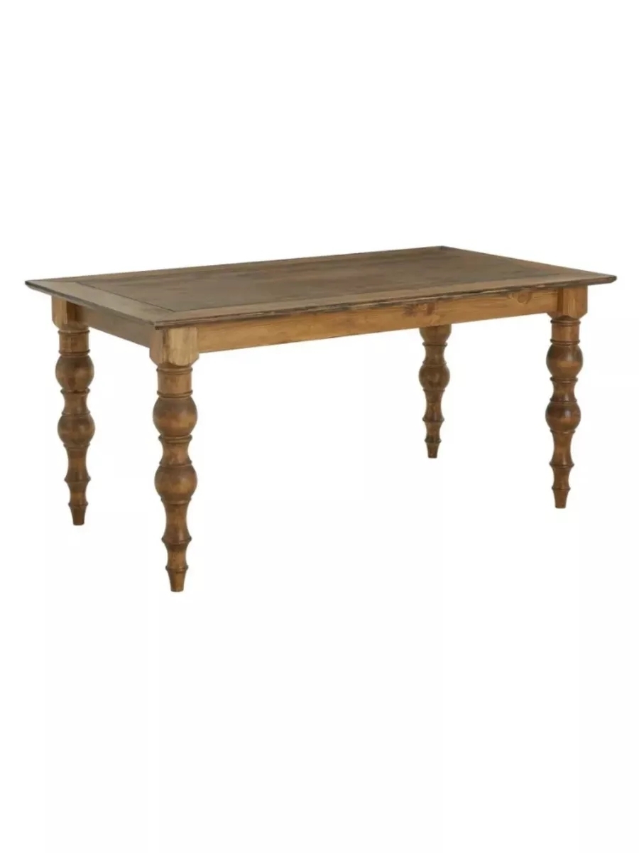 Этот деревянный стол может выполнять множество функций. Он подходит не только для обедов и ужинов, но и как удобный письменный или компьютерный стол. Просторная столешница позволяет разместить необходимую технику и аксессуары, организовав комфортное рабочее место.