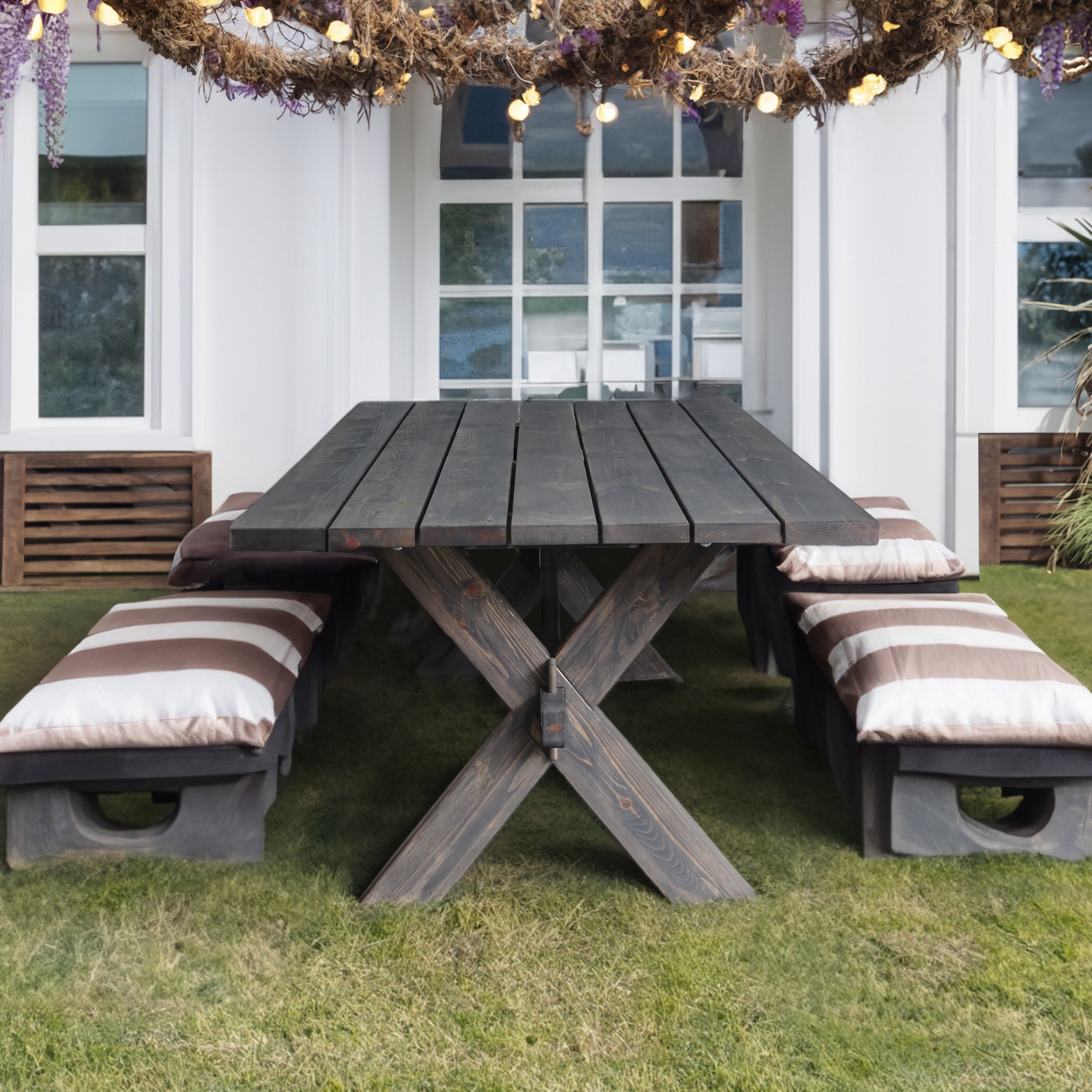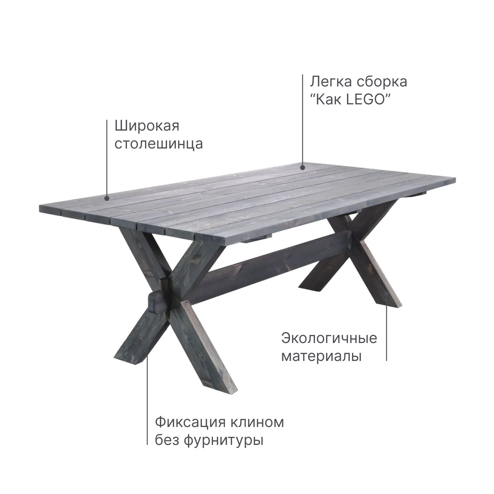 Наш садовый стол имеет уникальное защитное покрытие серого цвета графит, обеспечивающее долговечность и защиту от воздействия внешних условий, что позволяет использовать его на открытом воздухе в любое время года. Он легкий и простой в использовании, занимает мало места и вмещает до 15 человек.