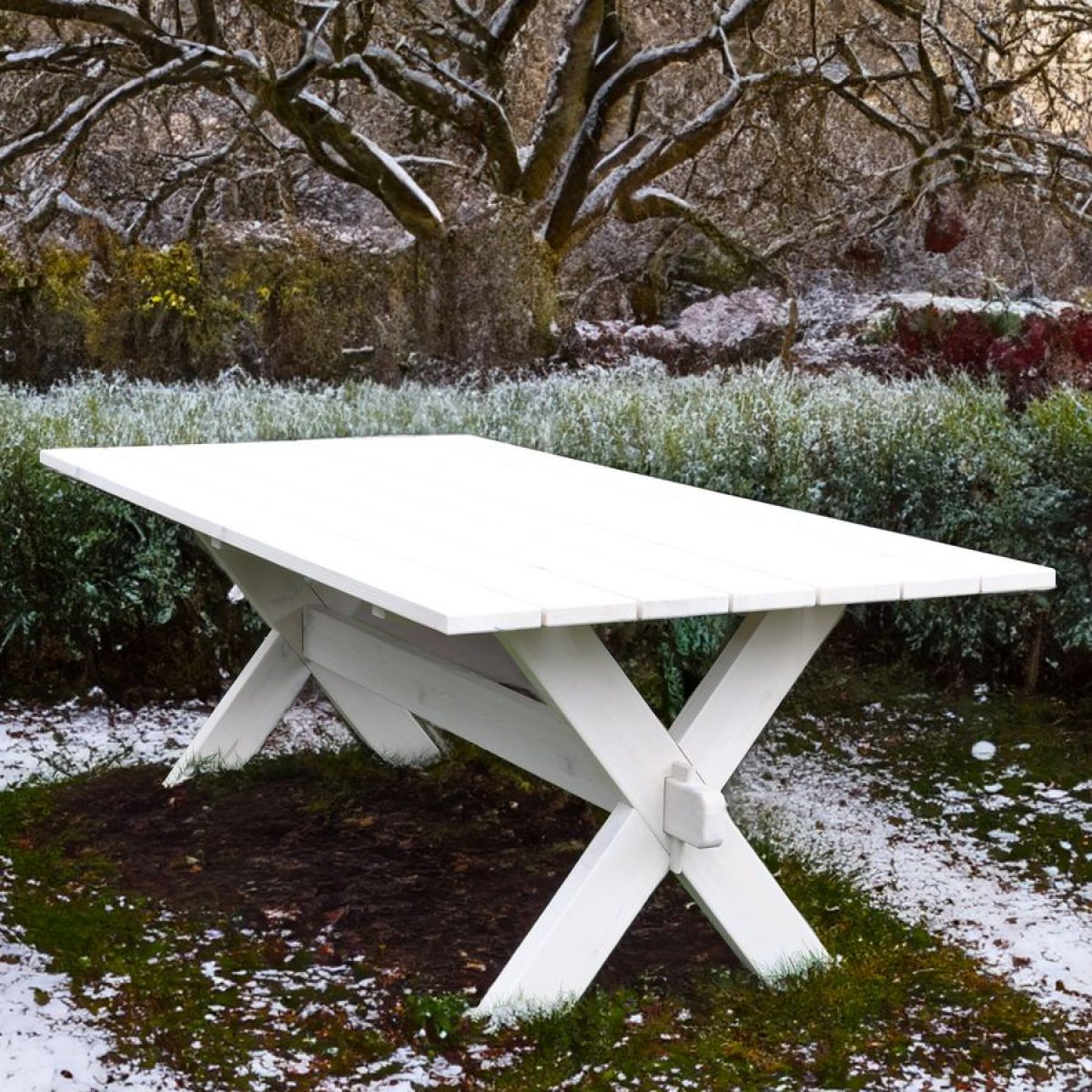 Наш садовый стол имеет уникальное защитное покрытие белым воском на водной основе, обеспечивающее долговечность и защиту от воздействия внешних условий, что позволяет использовать его на открытом воздухе в любое время года. Он легкий и простой в использовании, занимает мало места и вмещает до 15 человек.
