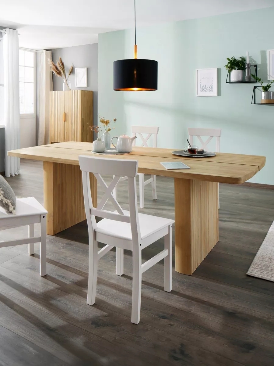 Обеденный стол "Розенбург" из натурального дуба сочетает в себе прочность и элегантность, идеально подходя для современных и классических интерьеров. Его массивная конструкция обеспечивает долговечность и устойчивость, а ножки выполнены с акцентом на стиль и надежность. Столешница размерами 220х100 см и толщиной 40 мм покрыта влагостойким маслом, что защищает дерево и сохраняет его природную текстуру. Этот стол создан для уютных семейных ужинов и незабываемых моментов с близкими, вписываясь как в домашнюю обстановку, так и в кафе или рестораны.