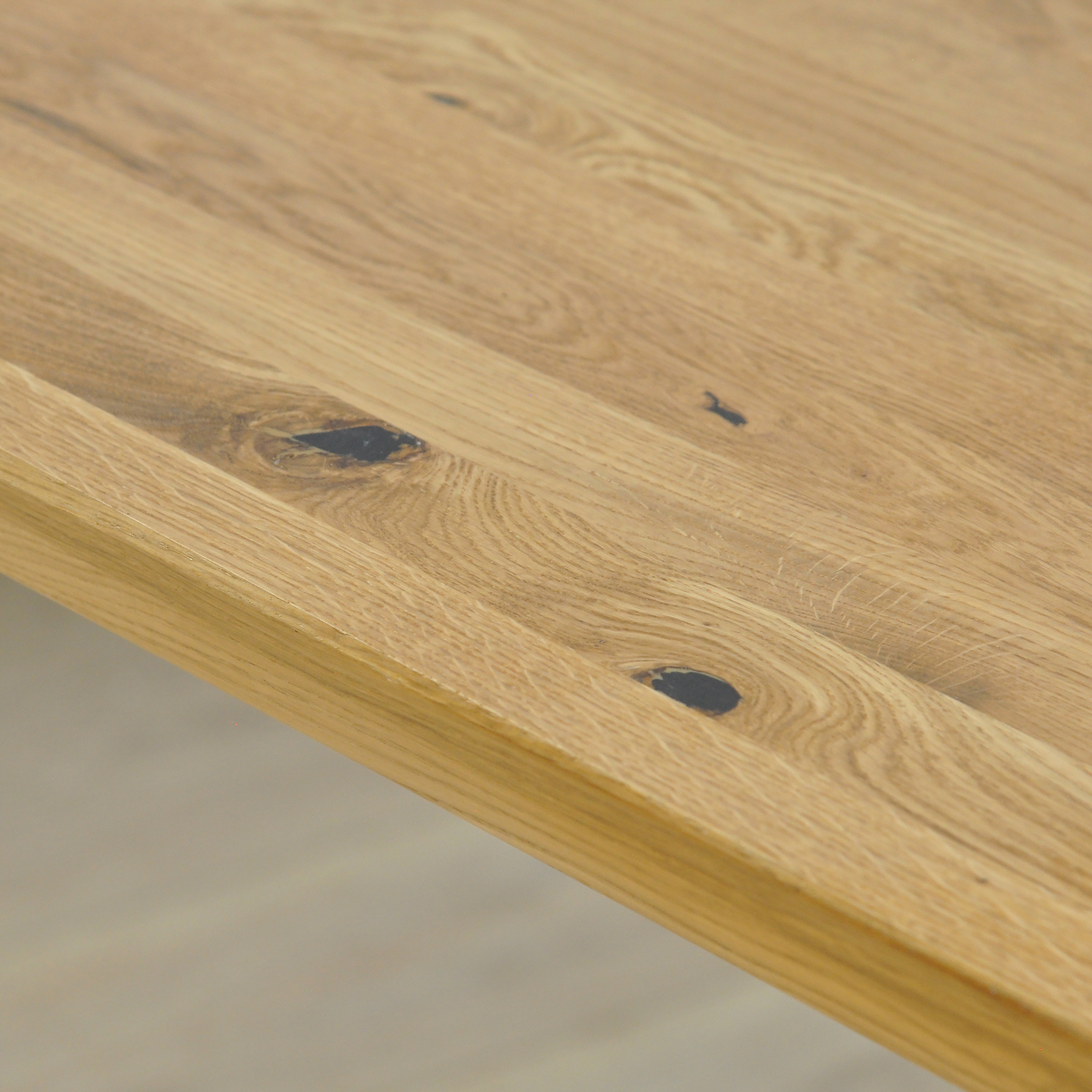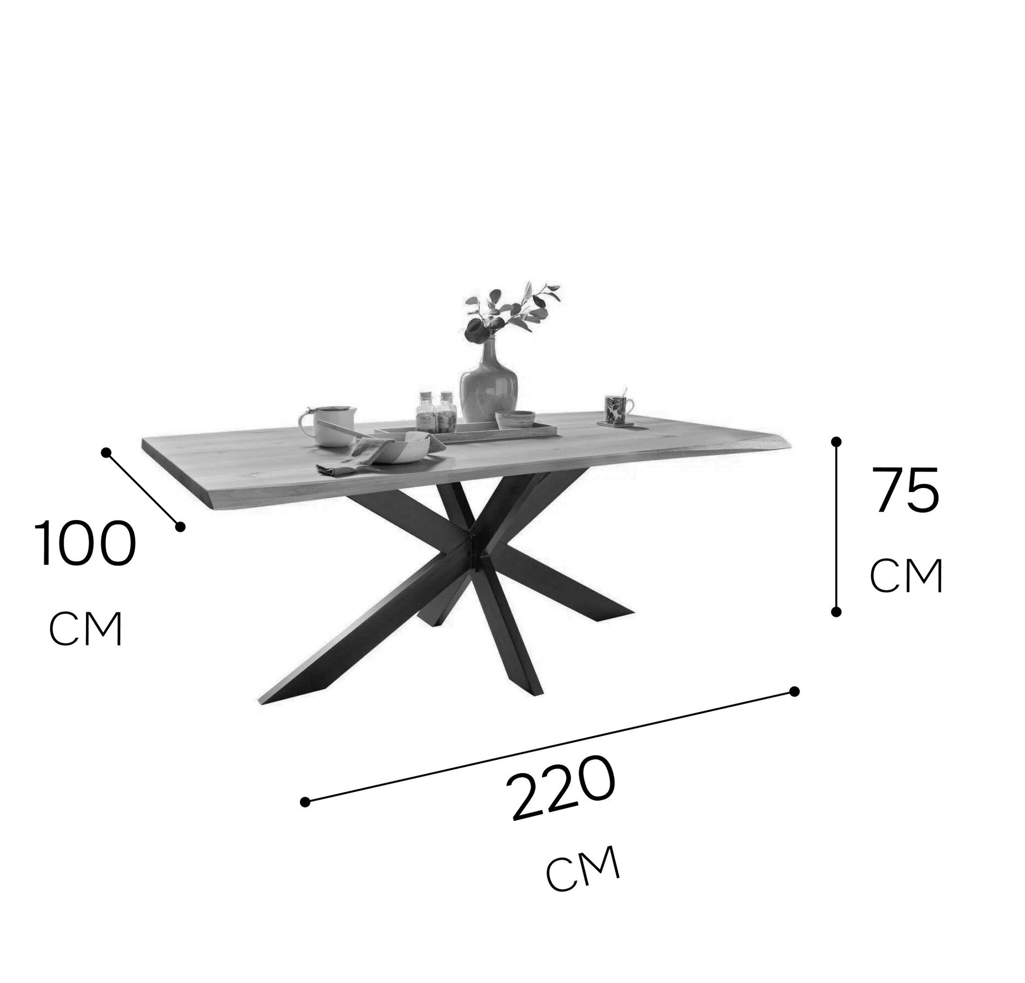 Столешница пропитана натуральным лаком, что подчеркивает уникальную текстуру дерева и дарит ощущение естественной теплоты. Каждый штрих, каждая прожилка древесины сохраняет свою природную красоту, делая каждый стол 220 уникальным. Декоративные радиусы на уголках столешницы добавляют изысканности и утонченности, создавая неповторимый акцент в дизайне.
