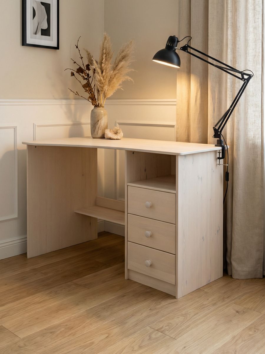 Стол белорусского производителя "Диприз" выполнен в современном лаконичном стиле, отличается элегантной простотой дизайна. Изделие имеет комфортные размеры столешницы для повседневного использования, оснащено удобной системой хранения документов и письменных принадлежностей: секцией открытого типа и тремя выдвижными ящиками среднего размера. Помимо этого, стол снабжен глубокой полкой для размещения периферийной техники.