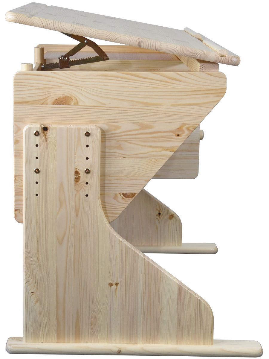Стол-парта белорусского производителя "Диприз" выполнен из массива сосны и экологически чистых отделочных материалов. Парта оснащена механизмом регулировки высоты крышки и высоты опоры. Регулировка по высоте позволяет максимально точно настроить стол под рост ребенка. Так же стол имеет два выдвижных ящика для хранения необходимых вещей.