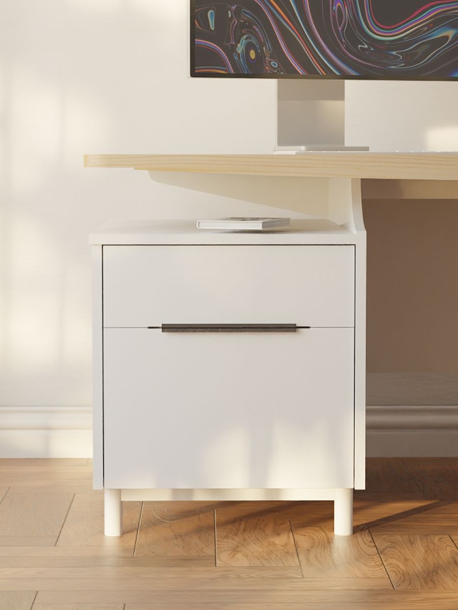 Письменный стол Ochensol (артикул Д.40033.1) — это идеальное сочетание скандинавской эстетики, натуральности и функциональности. Центром притяжения в этом столе стала столешница из массива сосны, покрытая мягким белесым лаком, которая создает теплую и вдохновляющую атмосферу для работы и творчества.