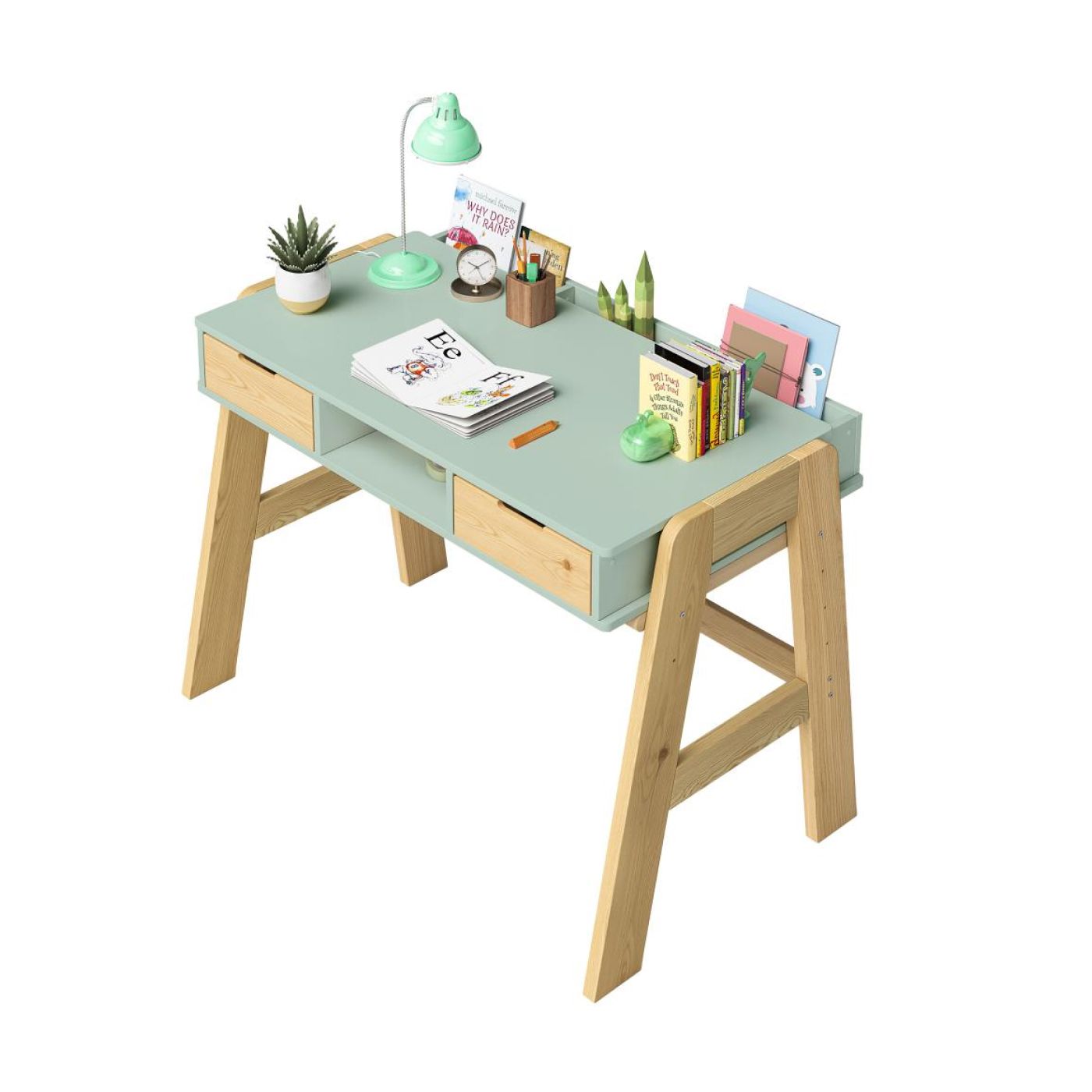 Парта с ящиками «Чек» также учитывает организацию пространства и хранения. Она оснащена двумя выдвижными ящиками, удобно расположенными под письменной поверхностью, а также имеет просторный отсек для книг. Три отсека для канцелярских принадлежностей, расположенные на задней стороне стола, обеспечивают удобное хранение всех необходимых мелочей, что позволяет избежать их потери.