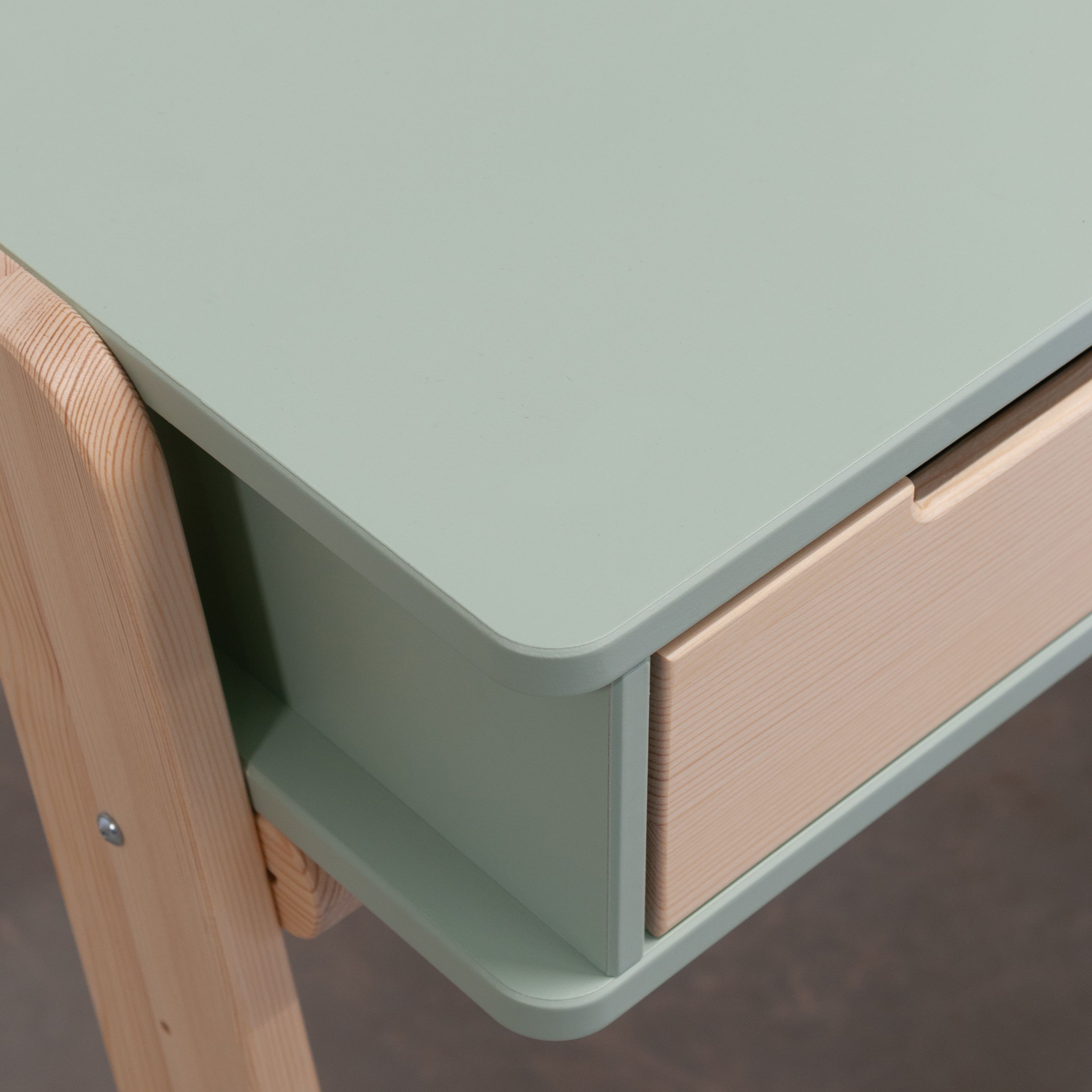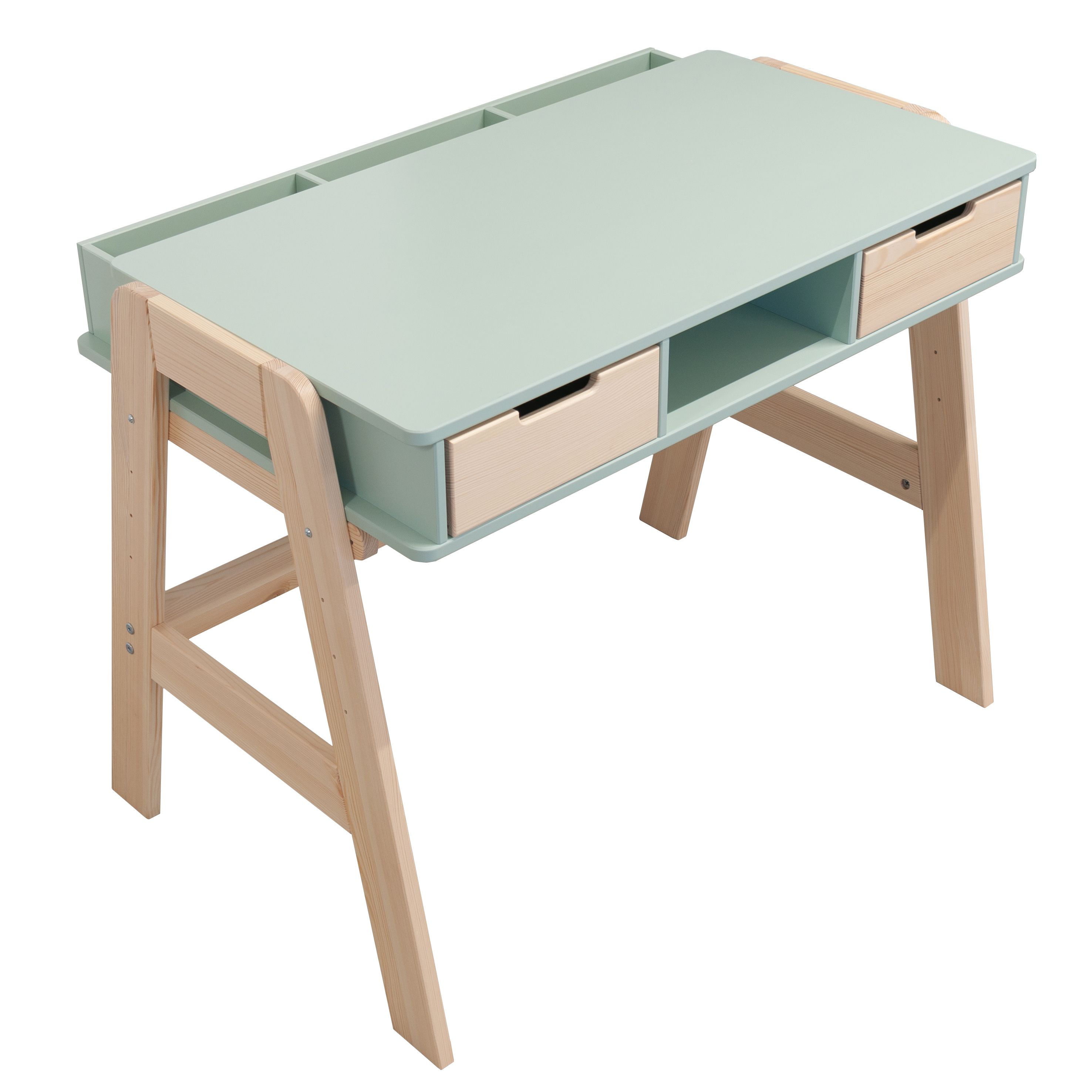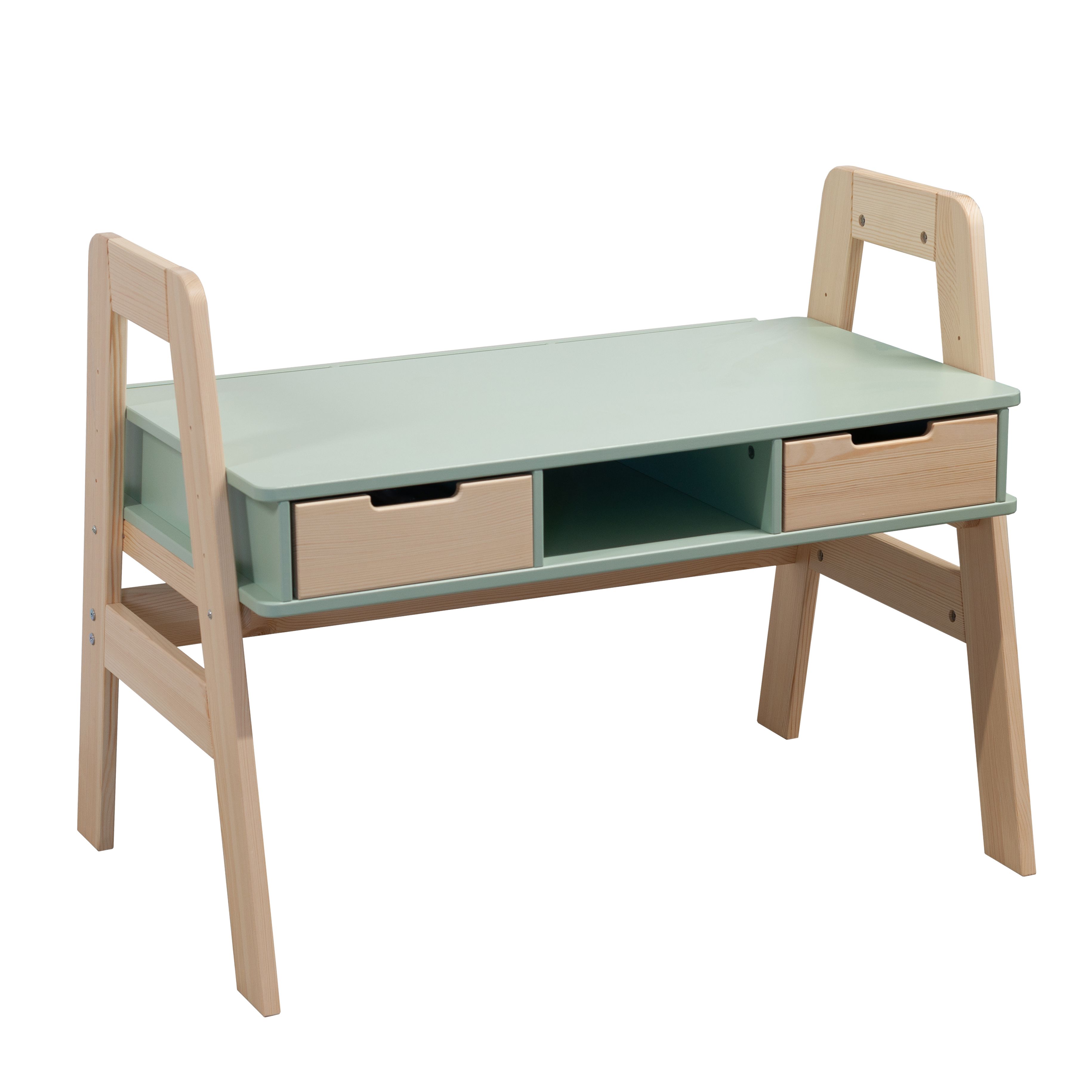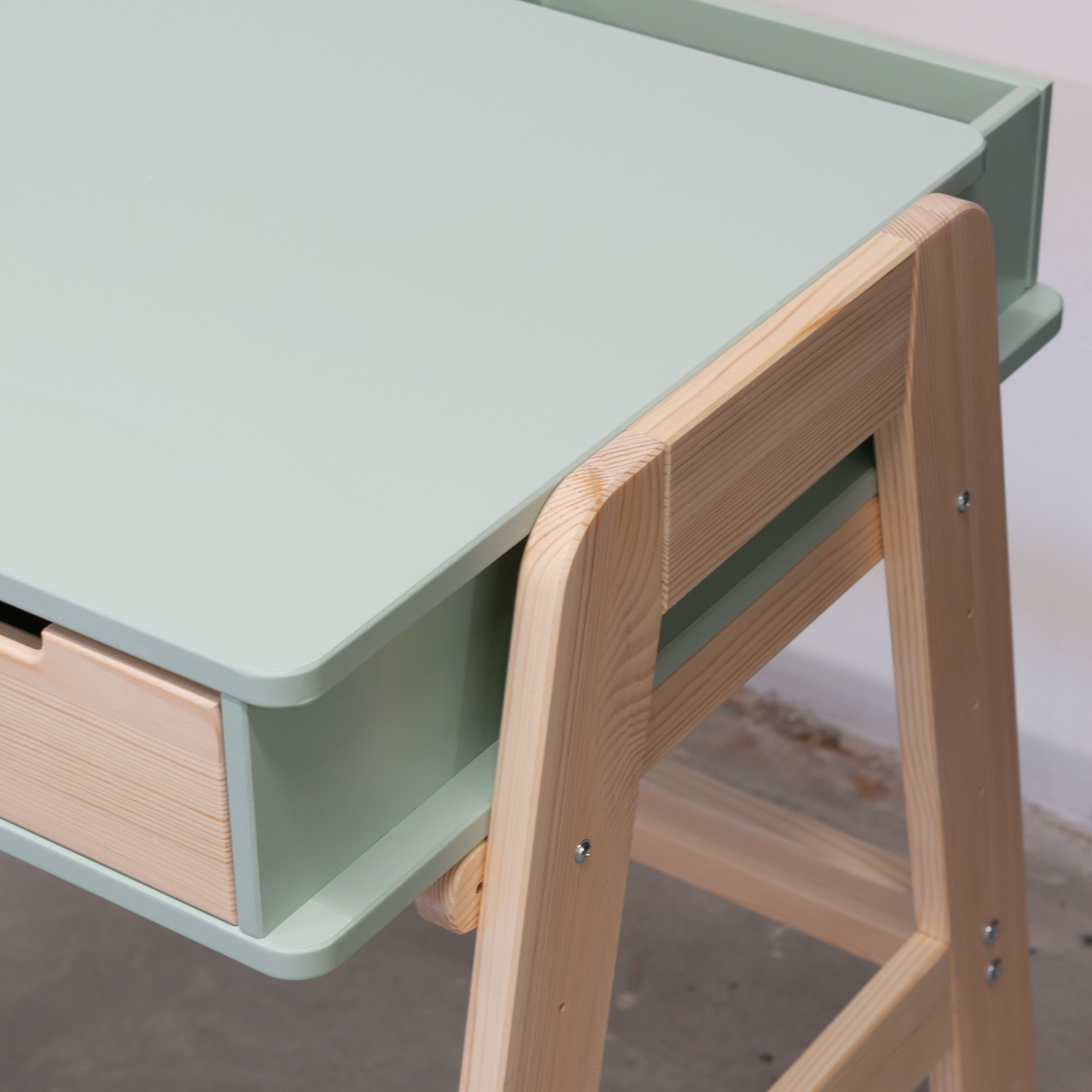 Растущий письменный стол для школьника «Чек» в скандинавском стиле - это функциональное решение, которое поддерживает вашего ребенка в процессе обучения письму и чтению. Парта с ящиками «Чек» несомненно порадует вас своей просторной рабочей поверхностью размером 50x90 см, что делает ее идеальным пространством для размещения учебных материалов. Закругленные ножки из массива сосны придают столу элегантный вид и, что более важно, высокую устойчивость.