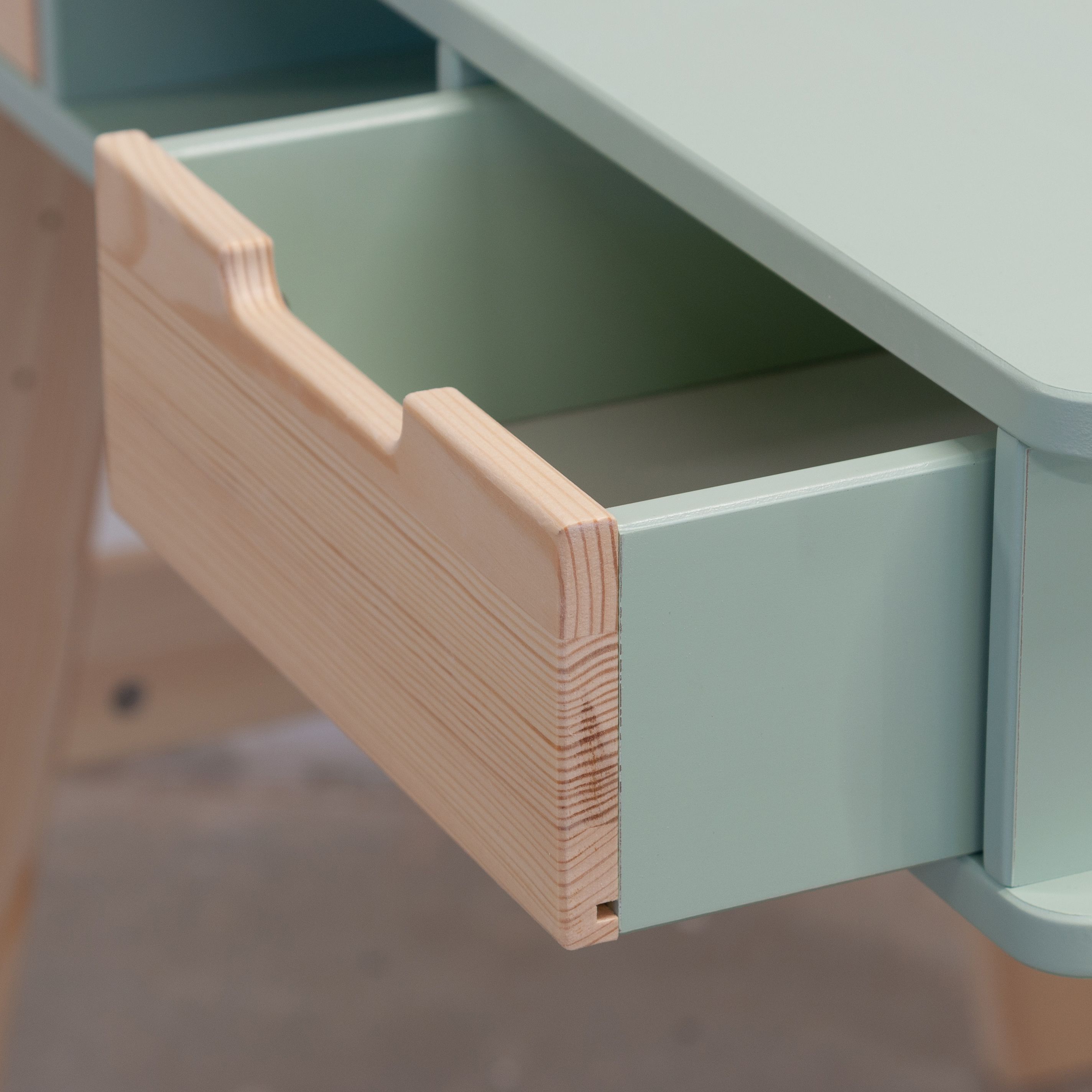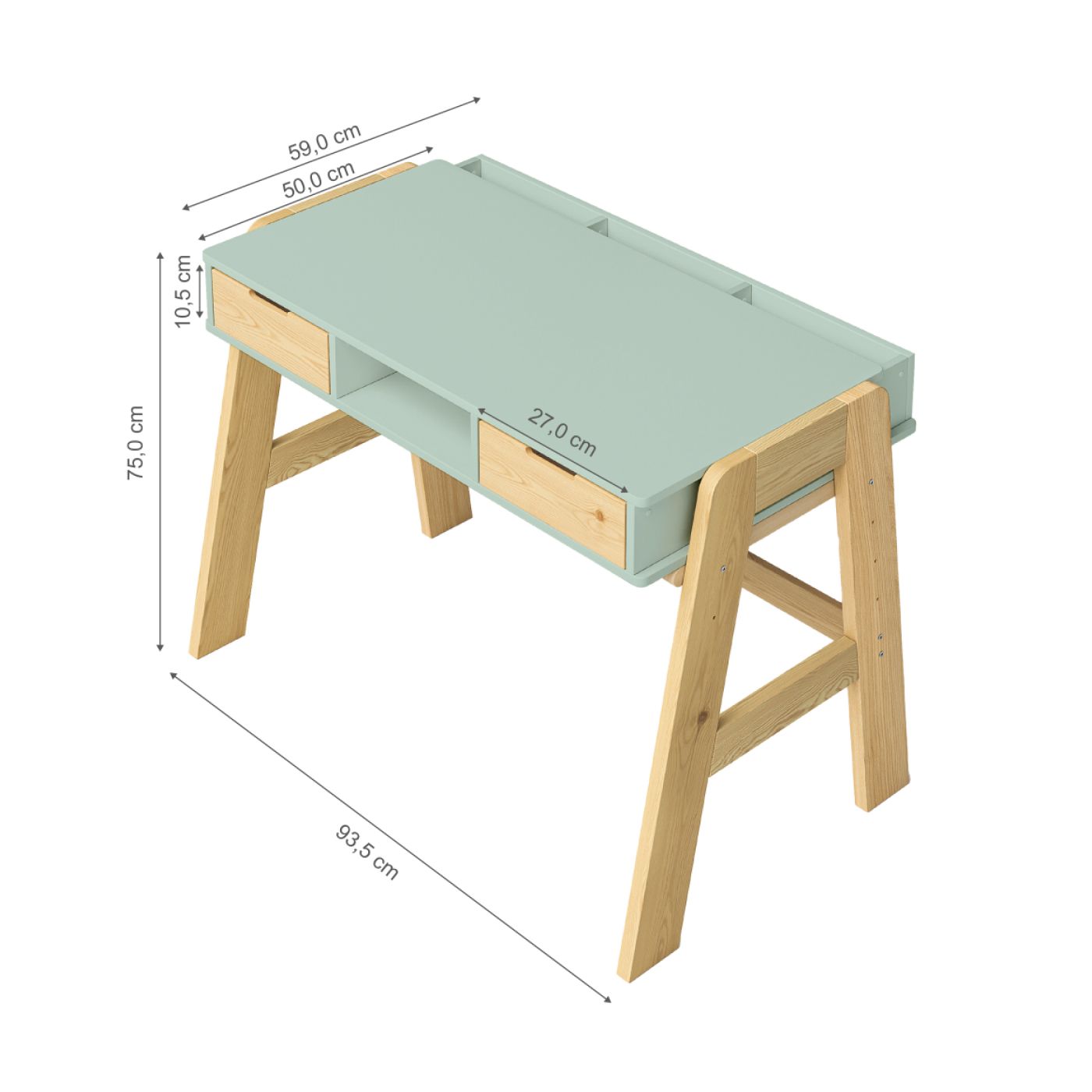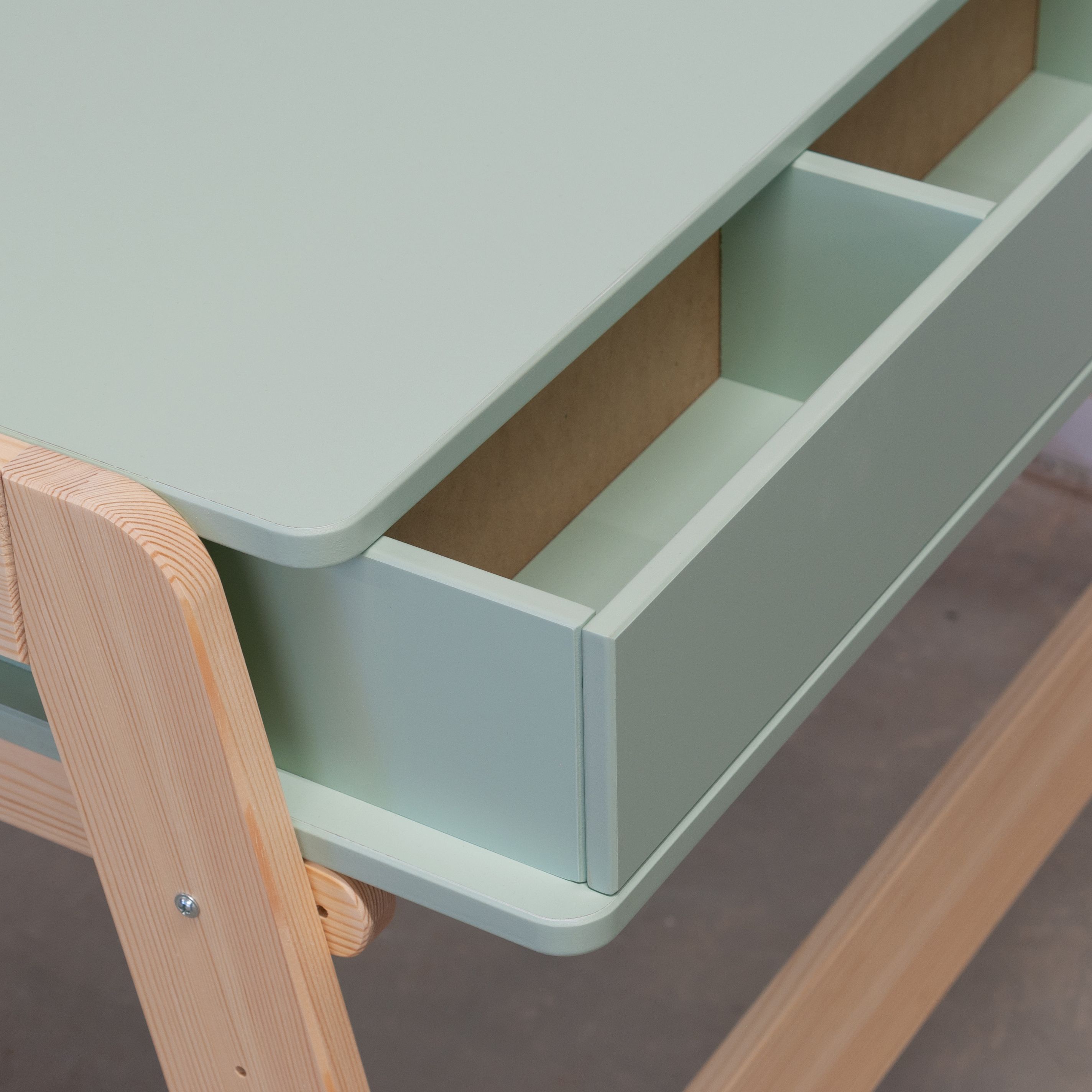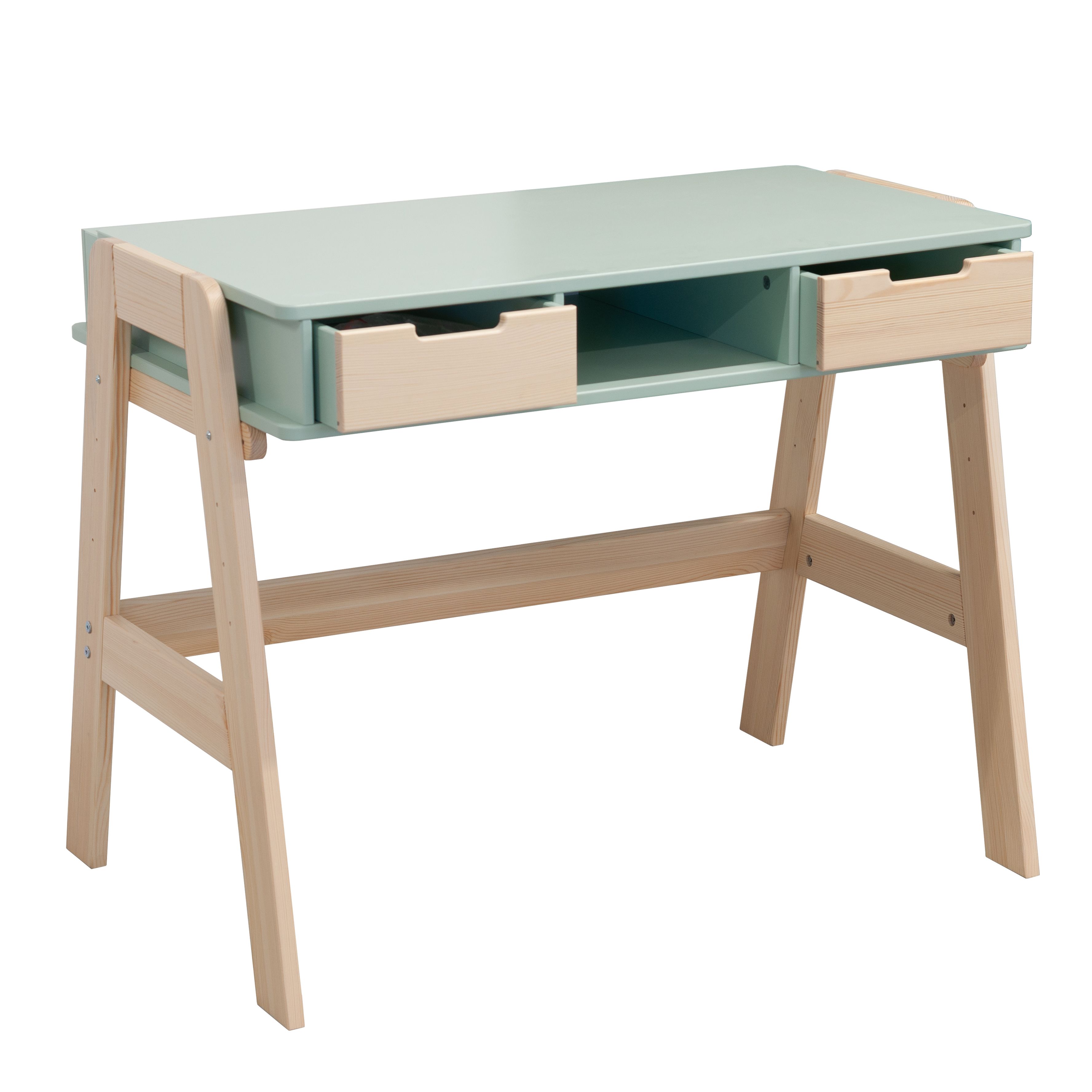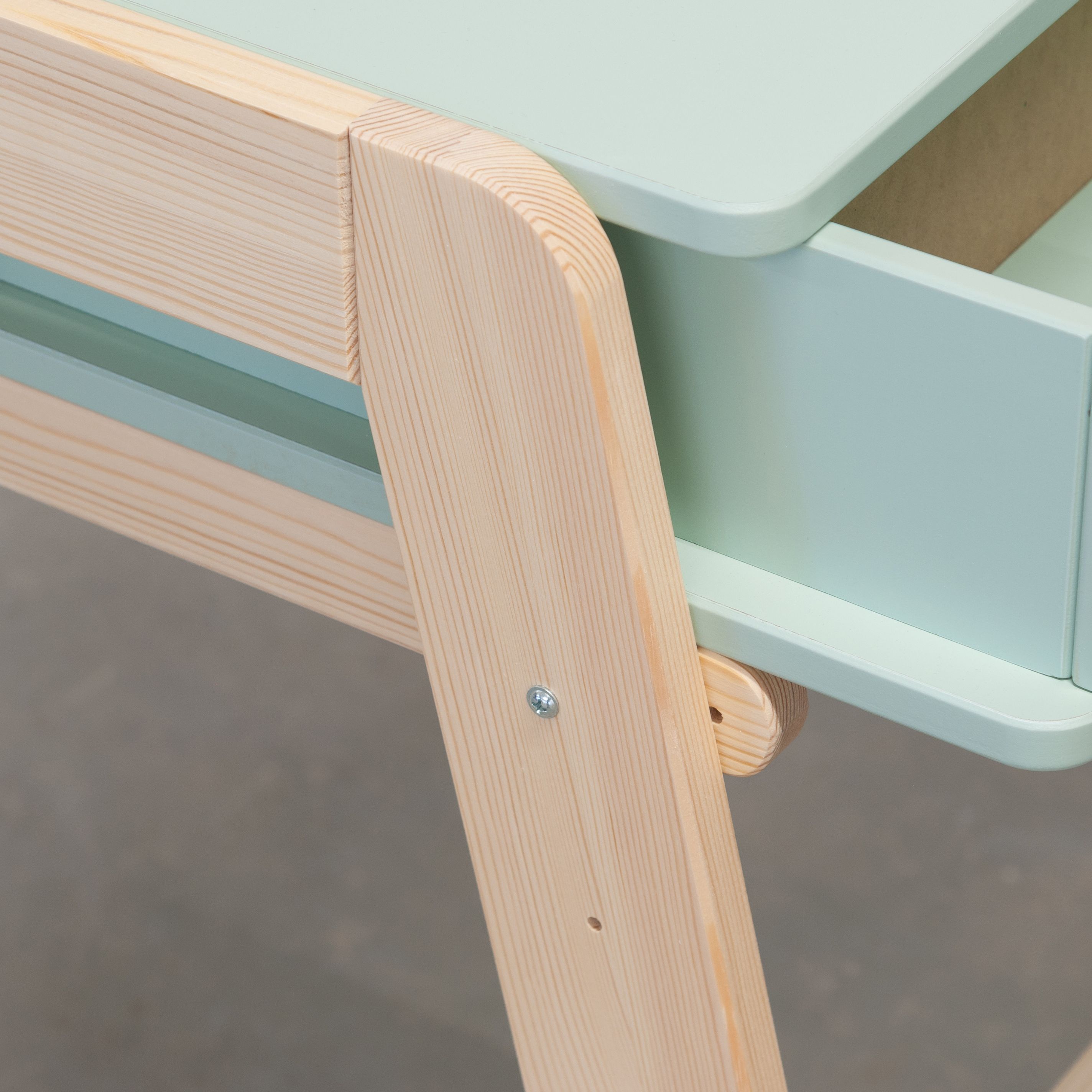 Растущий письменный стол для школьника «Чек» в скандинавском стиле - это функциональное решение, которое поддерживает вашего ребенка в процессе обучения письму и чтению. Парта с ящиками «Чек» несомненно порадует вас своей просторной рабочей поверхностью размером 50x90 см, что делает ее идеальным пространством для размещения учебных материалов. Закругленные ножки из массива сосны придают столу элегантный вид и, что более важно, высокую устойчивость.