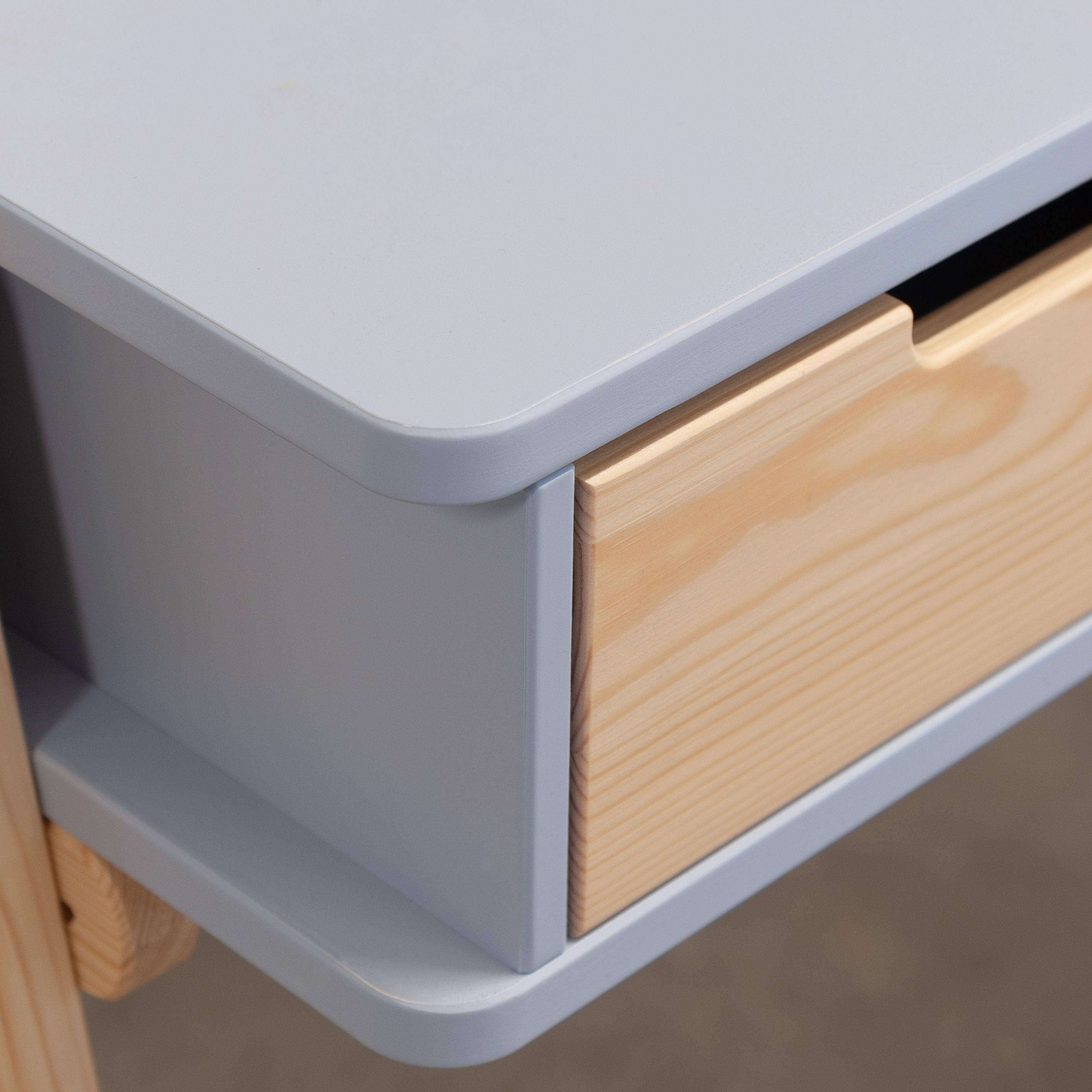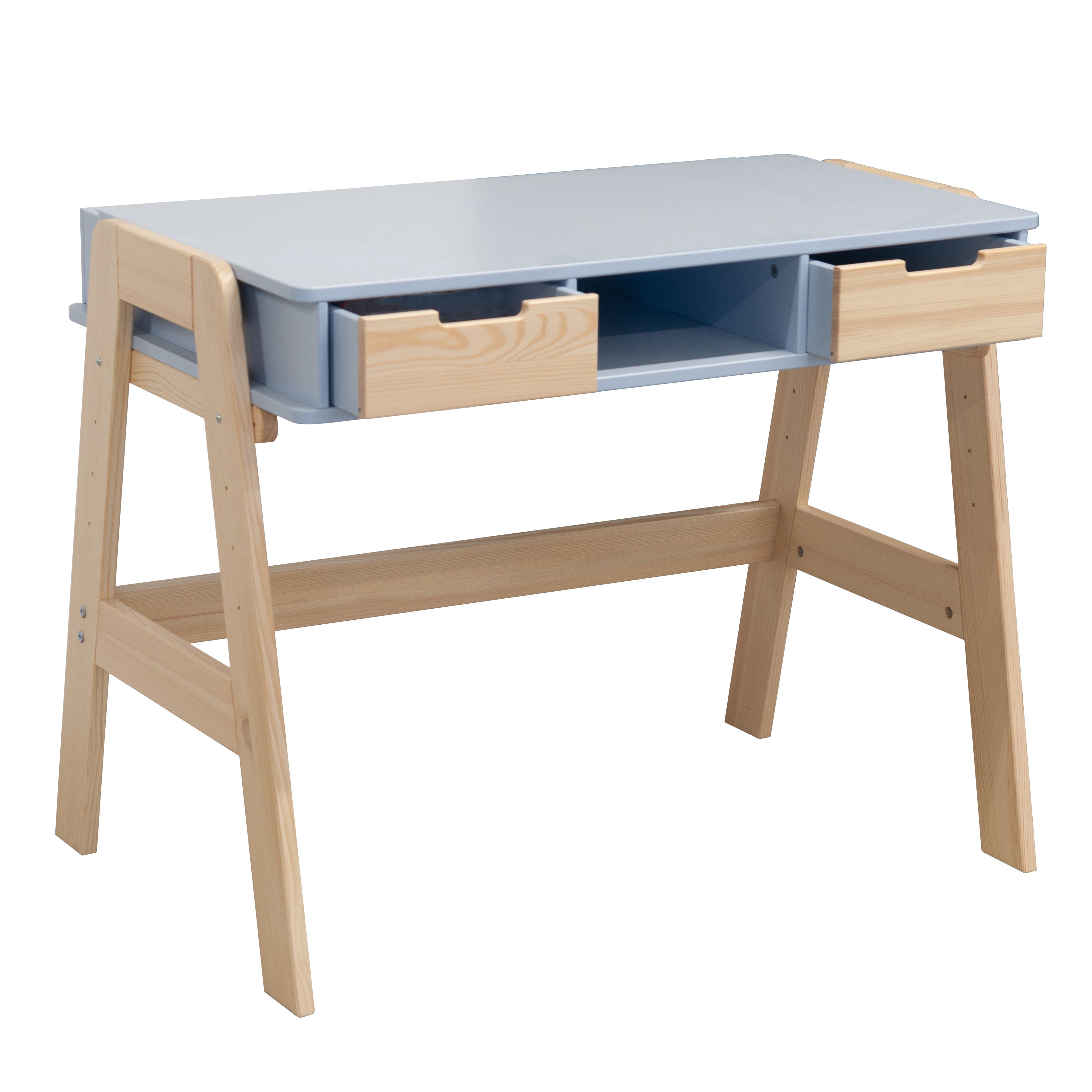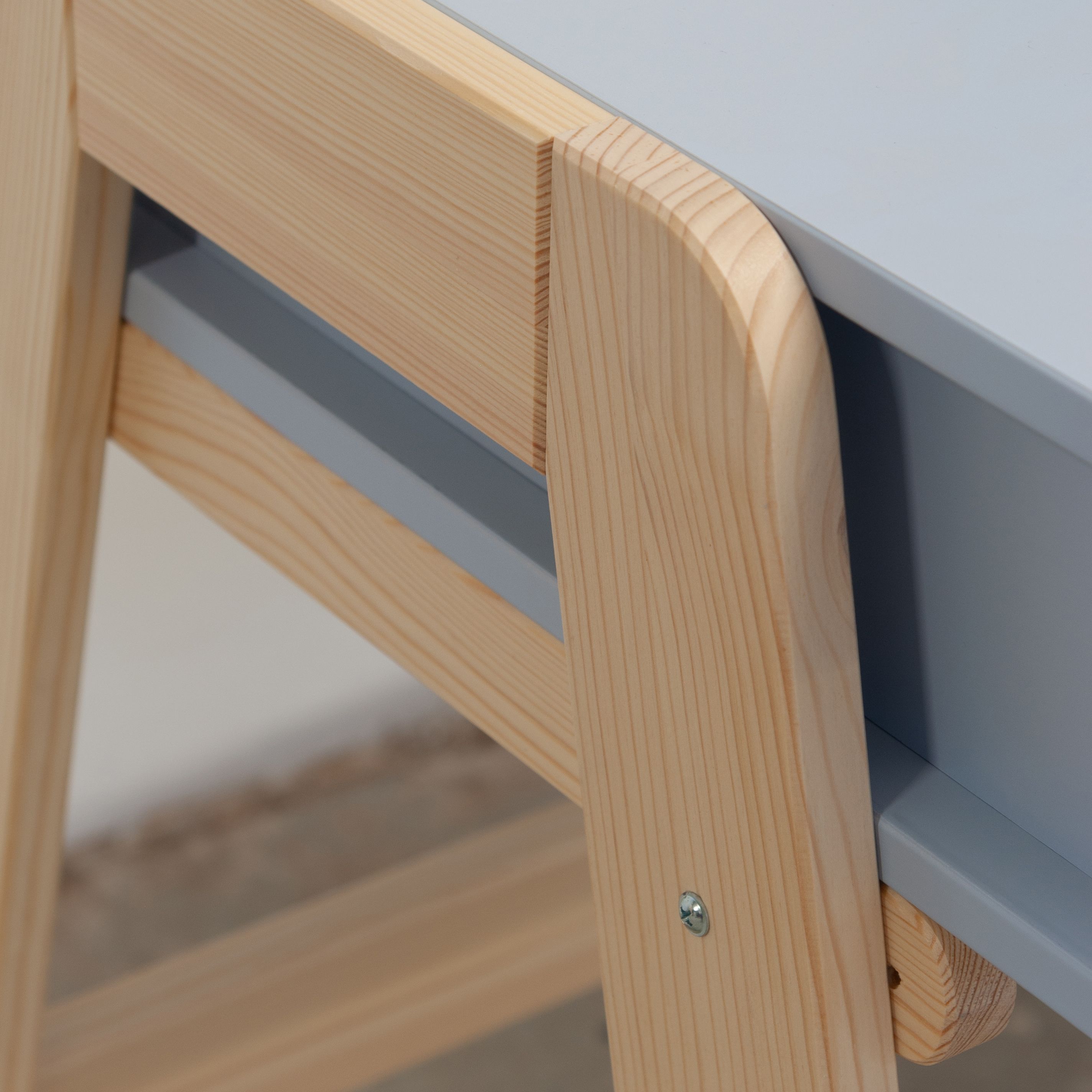 Современная растущая парта для школьника «Чек» в скандинавском стиле - это функциональное решение, которое поддерживает вашего ребенка в процессе обучения письму и чтению. Парта «Чек» несомненно порадует вас своей просторной рабочей поверхностью размером 50x90 см, что делает ее идеальным пространством для размещения учебных материалов. Закругленные ножки из массива сосны придают столу элегантный вид и, что более важно, высокую устойчивость.