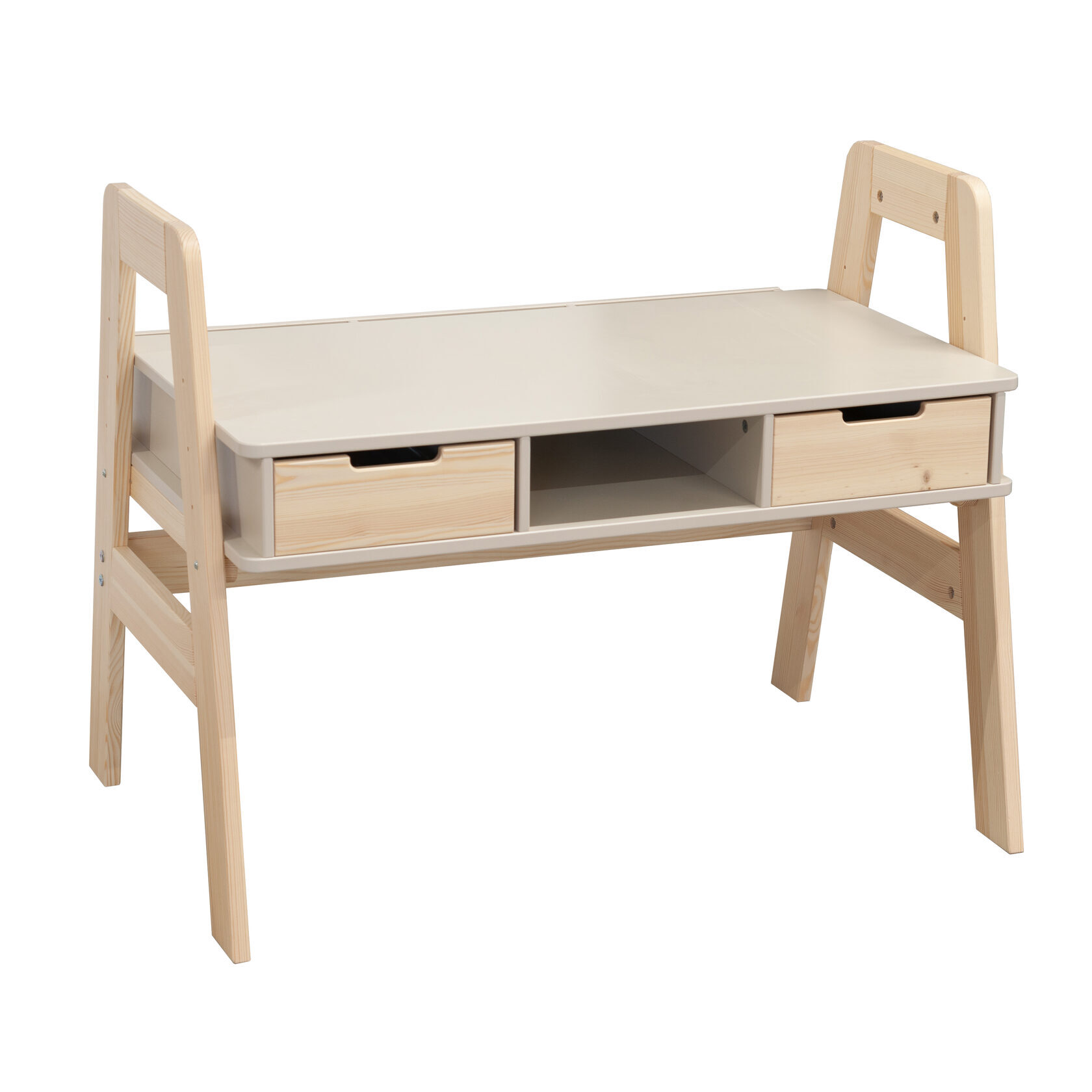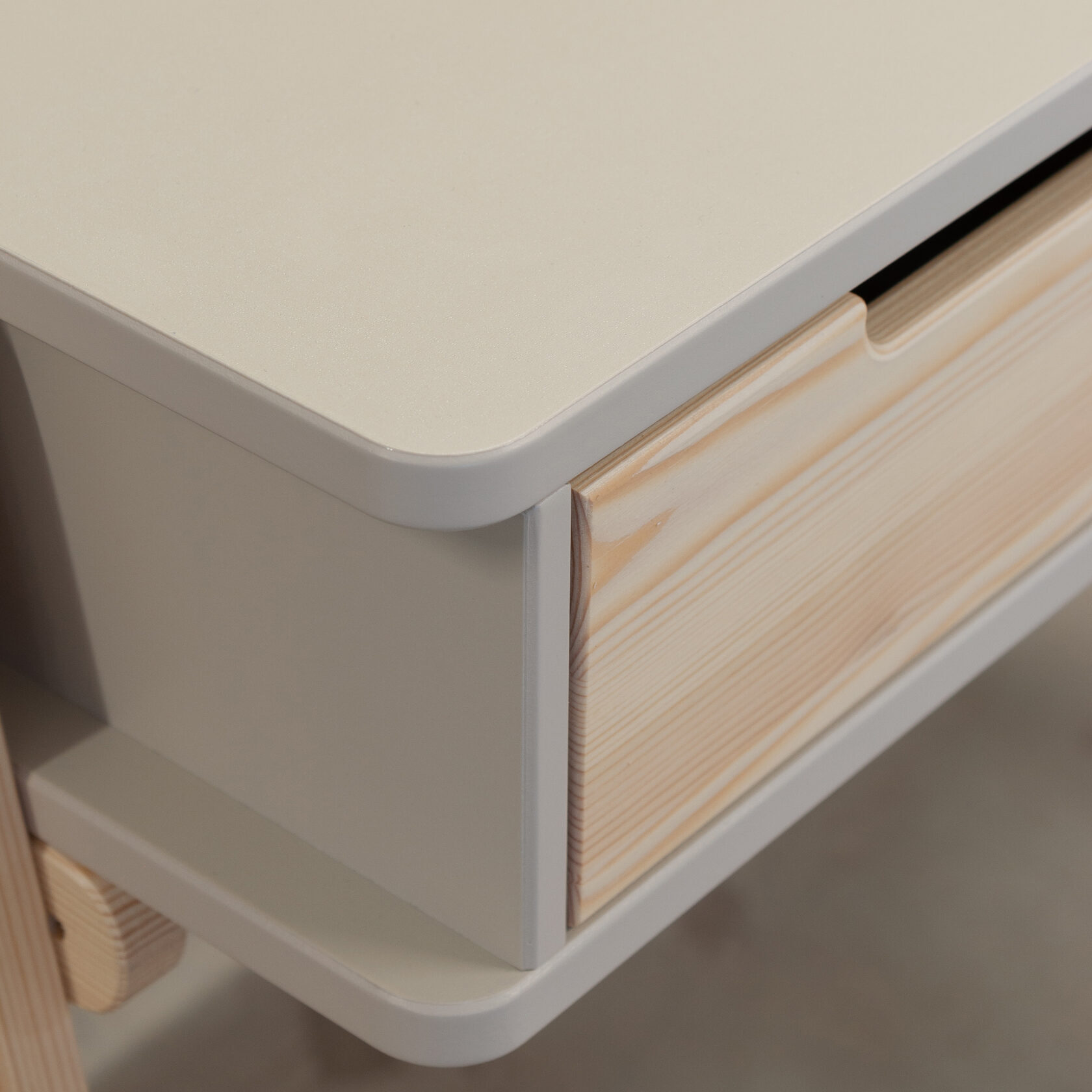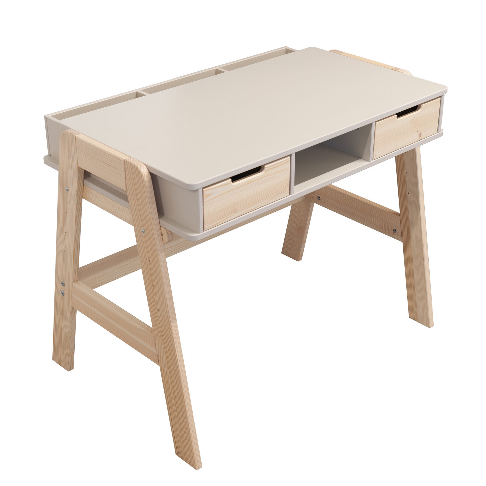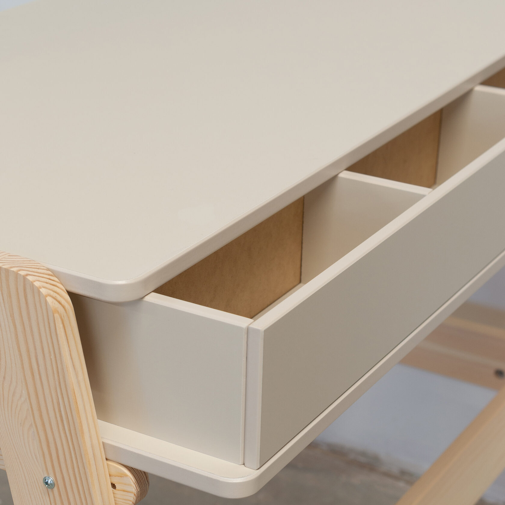 Современная растущая парта для школьника «Чек» в скандинавском стиле - это функциональное решение, которое поддерживает вашего ребенка в процессе обучения письму и чтению. Парта «Чек» несомненно порадует вас своей просторной рабочей поверхностью размером 50x90 см, что делает ее идеальным пространством для размещения учебных материалов. Закругленные ножки из массива сосны придают столу элегантный вид и, что более важно, высокую устойчивость.