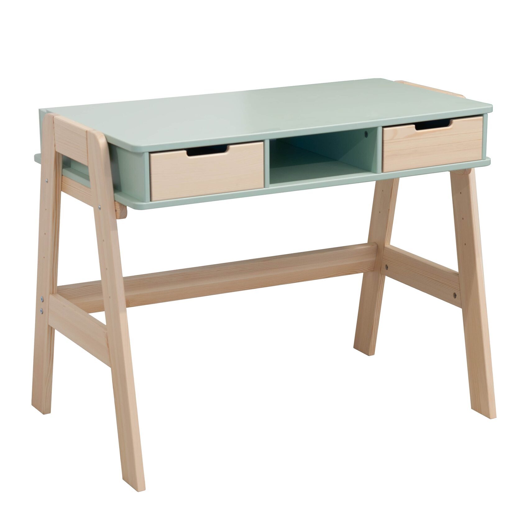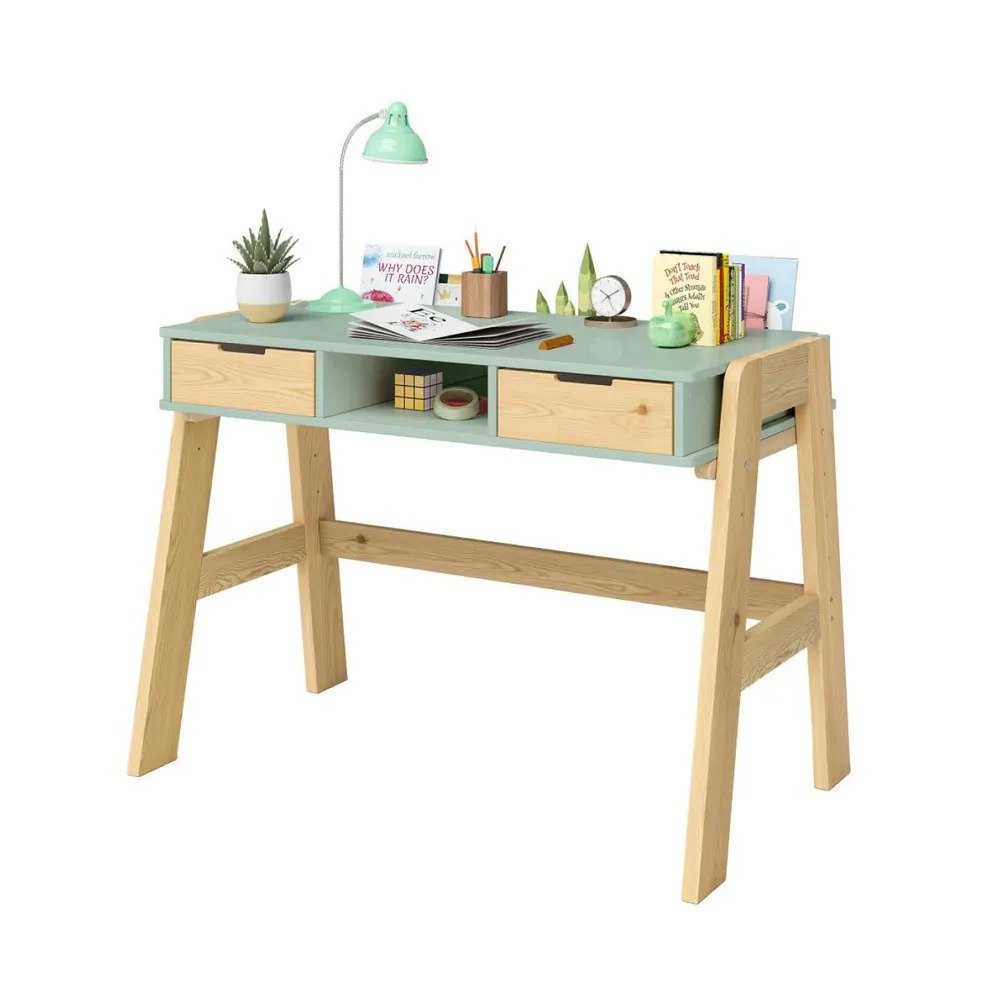 Стол письменный детский, парта 2 ящика Чек многоуровневая, с ножками из массива сосны, зеленый