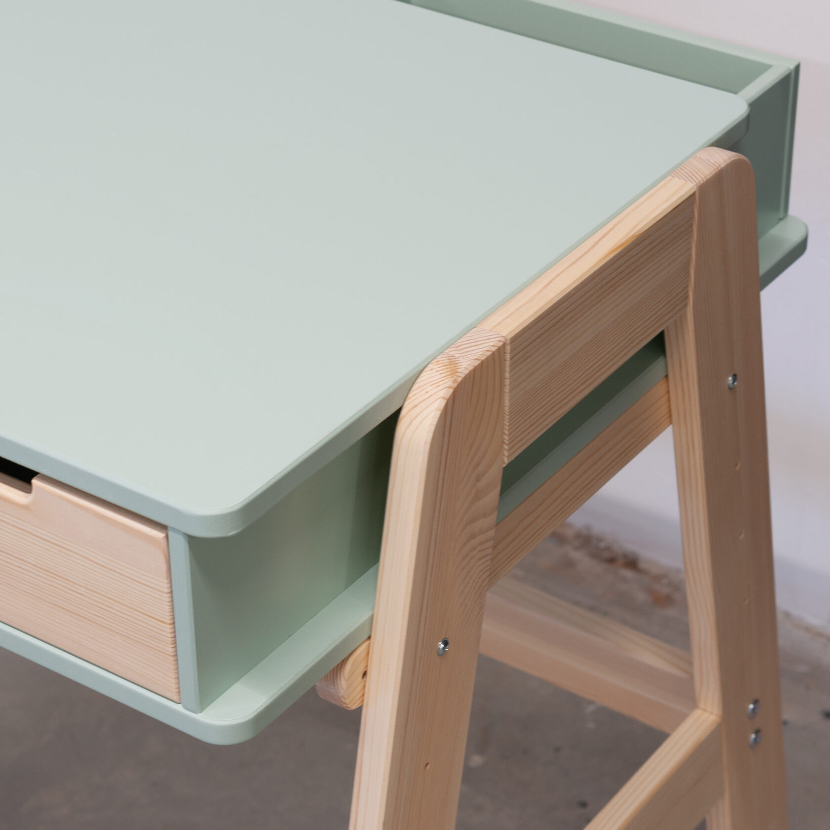 Современная растущая парта для школьника «Чек» в скандинавском стиле - это функциональное решение, которое поддерживает вашего ребенка в процессе обучения письму и чтению. Парта «Чек» несомненно порадует вас своей просторной рабочей поверхностью размером 50x90 см, что делает ее идеальным пространством для размещения учебных материалов. Закругленные ножки из массива сосны придают столу элегантный вид и, что более важно, высокую устойчивость.