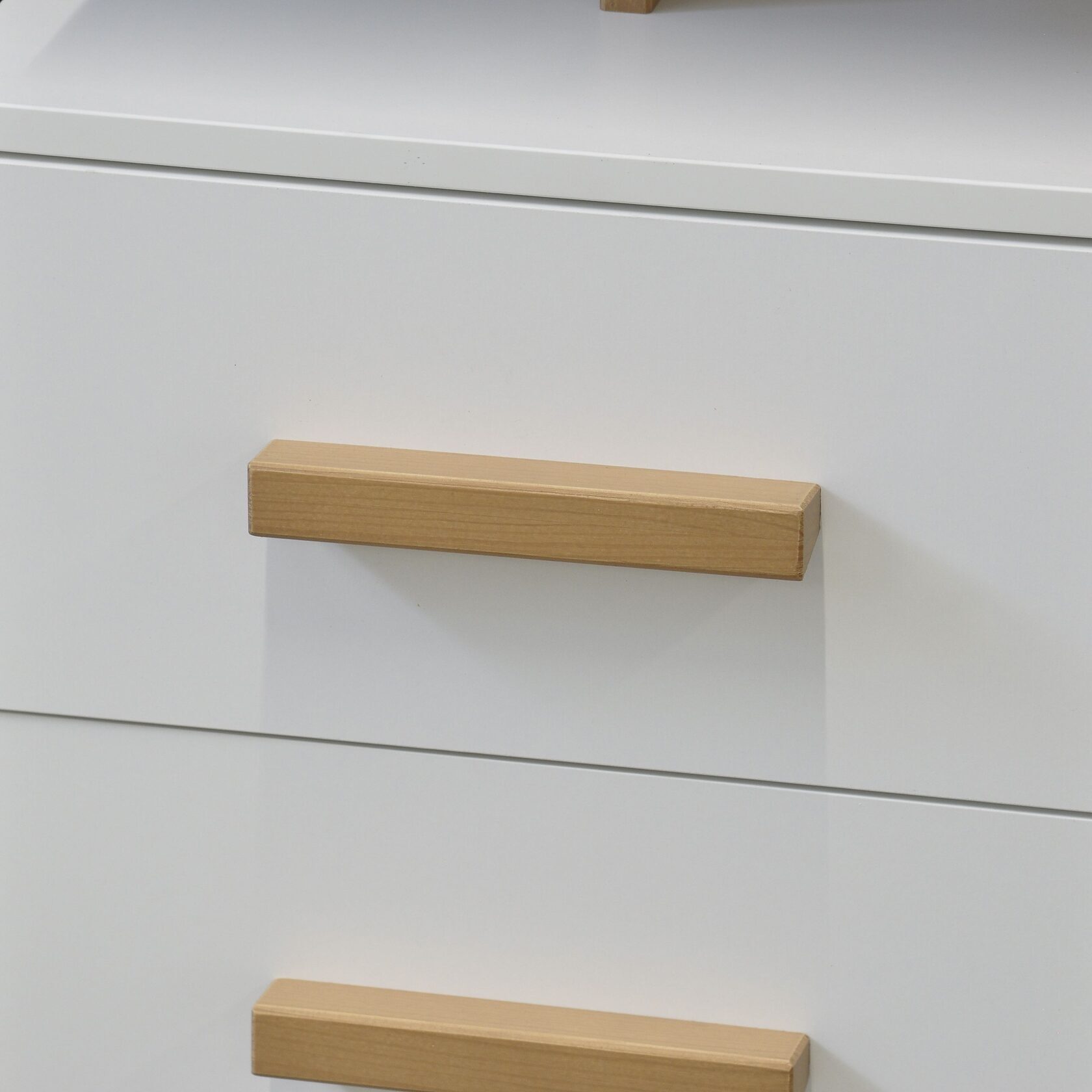 Стол Вест изготовлен из ЛДСП белого цвета с деревянными ножками из массива сосны, придающими ему не только прочность, но и приятную натуральную текстуру. Прочная столешница толщиной 22 мм обеспечивает достаточно пространства для работы или игр с максимальной нагрузкой до 30 кг. Основные элементы корпуса из массива сосны защищены натуральным лаком, сохраняя матовую поверхность и приятный тактильный опыт.