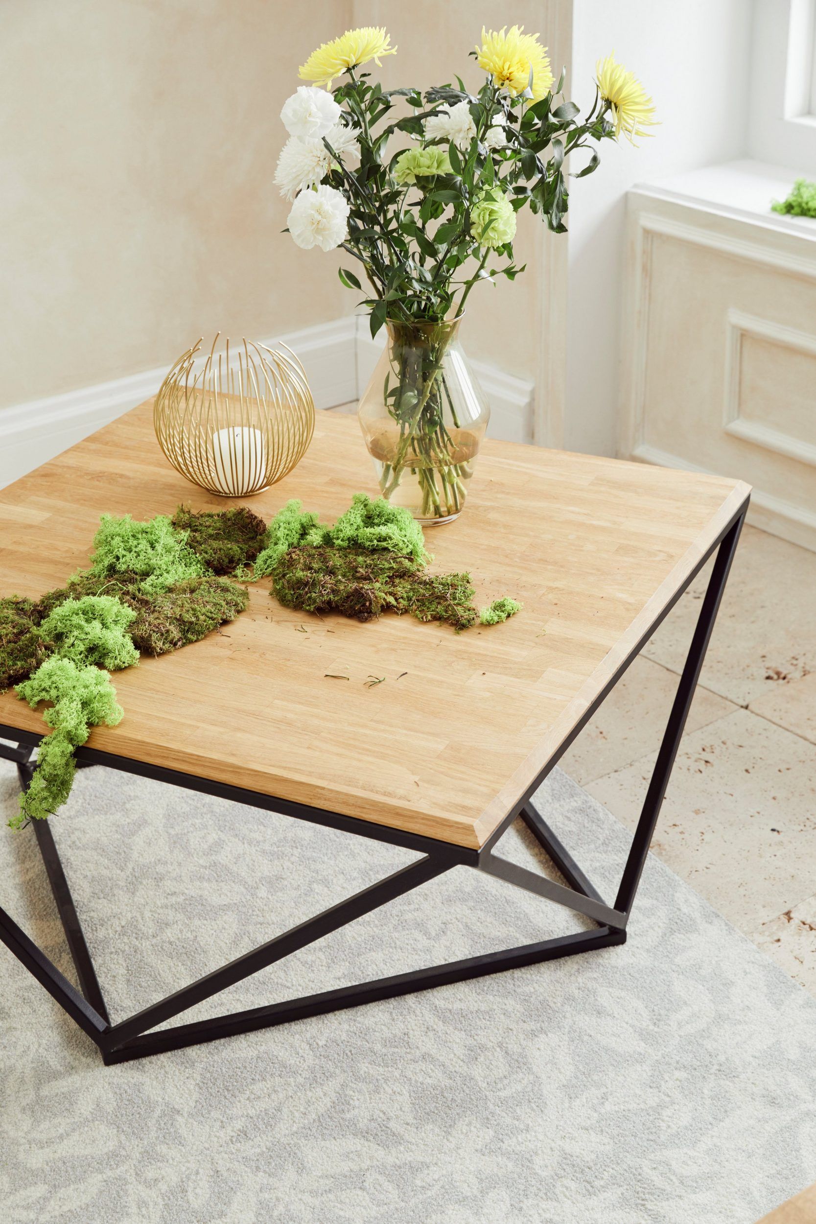 Сочетание природных материалов - металлического подстолья и дубовой столешницы - внесет природные цвета в любую квартиру, дом или дачу. Дубовая столешница всегда будет радовать своим уникальным деревянным узором.