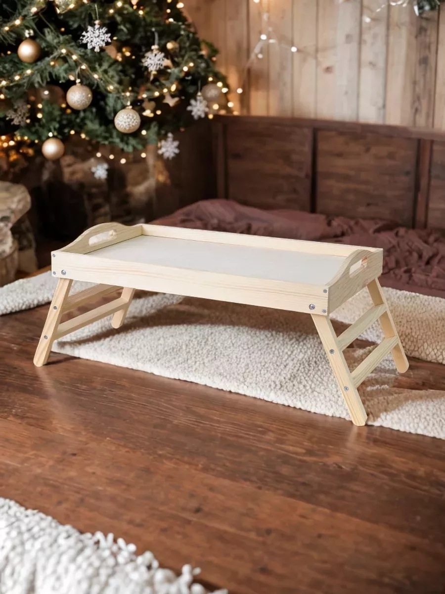 Столик поднос оптимальный по размеру, быстро складывается, его можно перенести в любое место. Его можно использовать как столик для завтрака в постель, винный столик на кровать, столик для ноутбука. Декоративный поднос на ножках будет полезен в детской, на нем можно разложить игрушки, пластилин, поделки или сладости и фрукты для малыша. Можно удобно расположиться на диване, кровати или в кресле с ноутбуком или планшетом. Наличие невысокого бортика предотвращает вытекание пролитой жидкости и соскальзывание предметов. Деревянный поднос для очень удобный и мобильный. В сложенном виде он не займет много места в Вашем доме или машине, позволит органично и элегантно дополнить Ваш пикник.