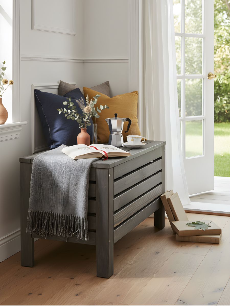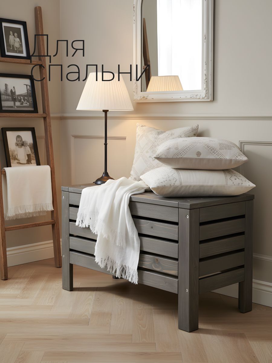 Сделанный из качественного материала, деревянный сундук гарантирует долговечность и прочность, а светлый деревянный оттенок добавляет уюта и тепла в любую комнату. Сундучок невероятно прост в использовании, сундук скамья также обладает элегантным и современным дизайном в стиле ИКЕА, который подойдет к любому интерьеру.