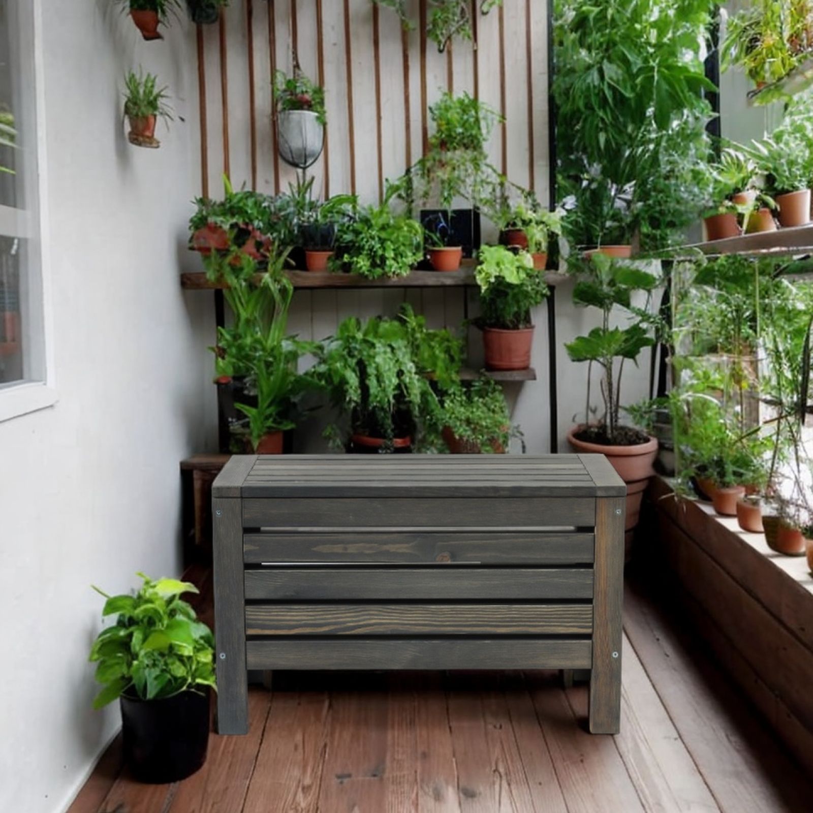Изделие покрыто прочным защитным покрытием в цвете, графит а значит сундук подойдет в интерьер любого сада или лоджии. Сундук поставляется в разобранном виде. Сборка изделия быстрая и легкая благодаря интуитивно-понятной инструкции.