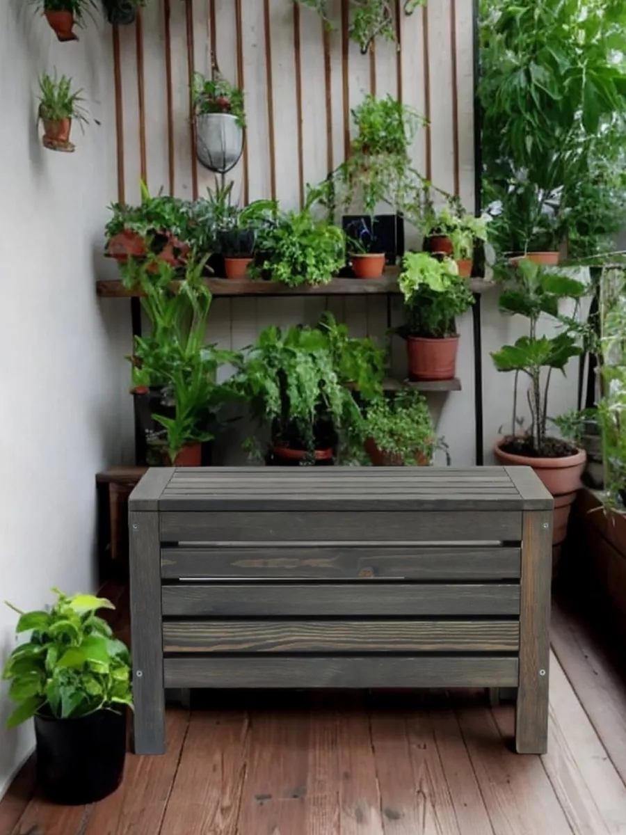 Изделие покрыто прочным защитным покрытием в цвете, графит а значит сундук подойдет в интерьер любого сада или лоджии. Сундук поставляется в разобранном виде. Сборка изделия быстрая и легкая благодаря интуитивно-понятной инструкции.
