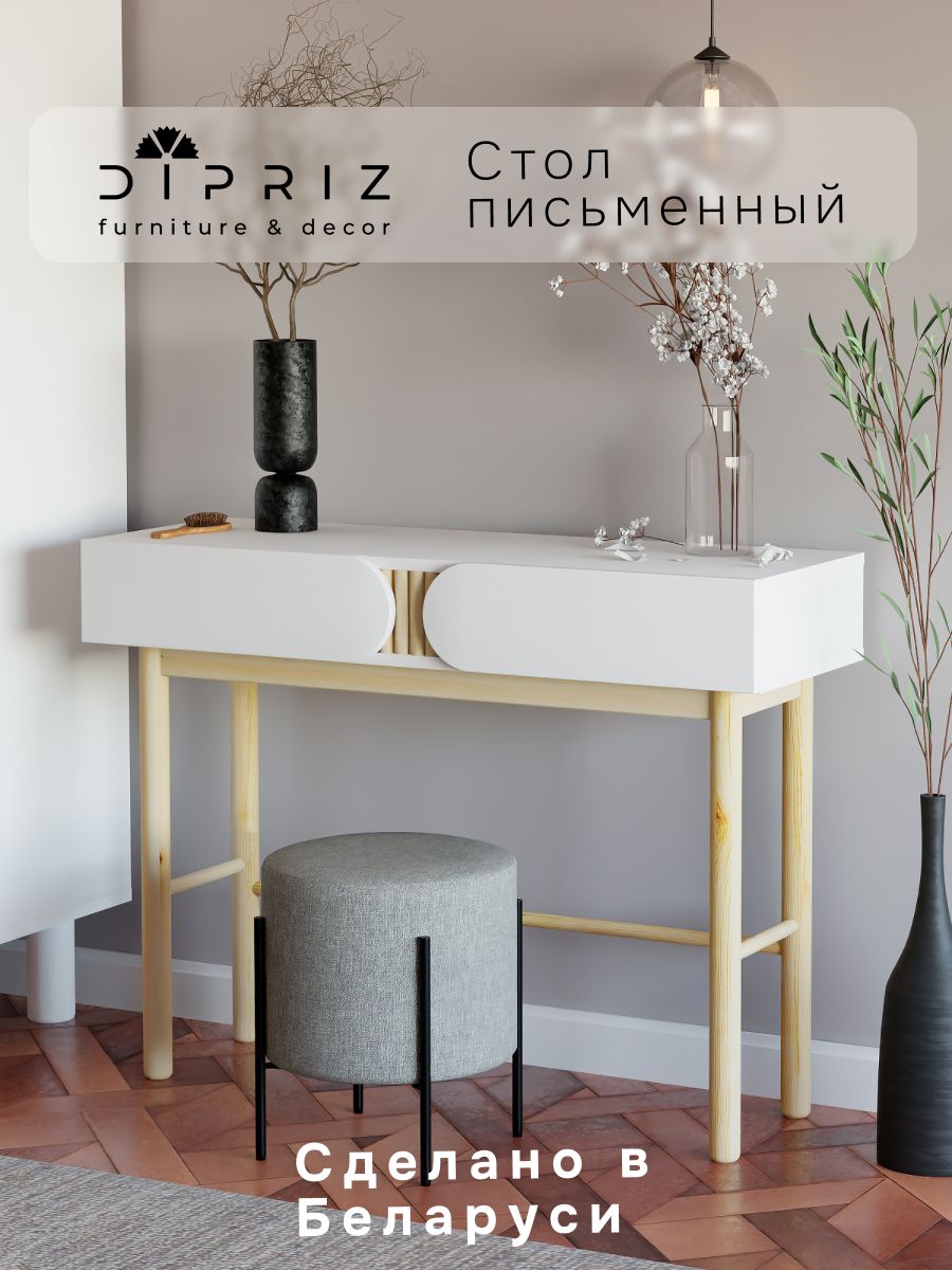 Столик выполнен из качественного ЛДСП и сосны, что обеспечивает его долговечность и эстетичный внешний вид. Удобные ящики помогут организовать пространство, сохраняя ваши принадлежности в порядке, будь то косметика или аксессуары. Консольный столик можно использовать как гримерный столик, что делает его универсальным решением для ежедневного использования.