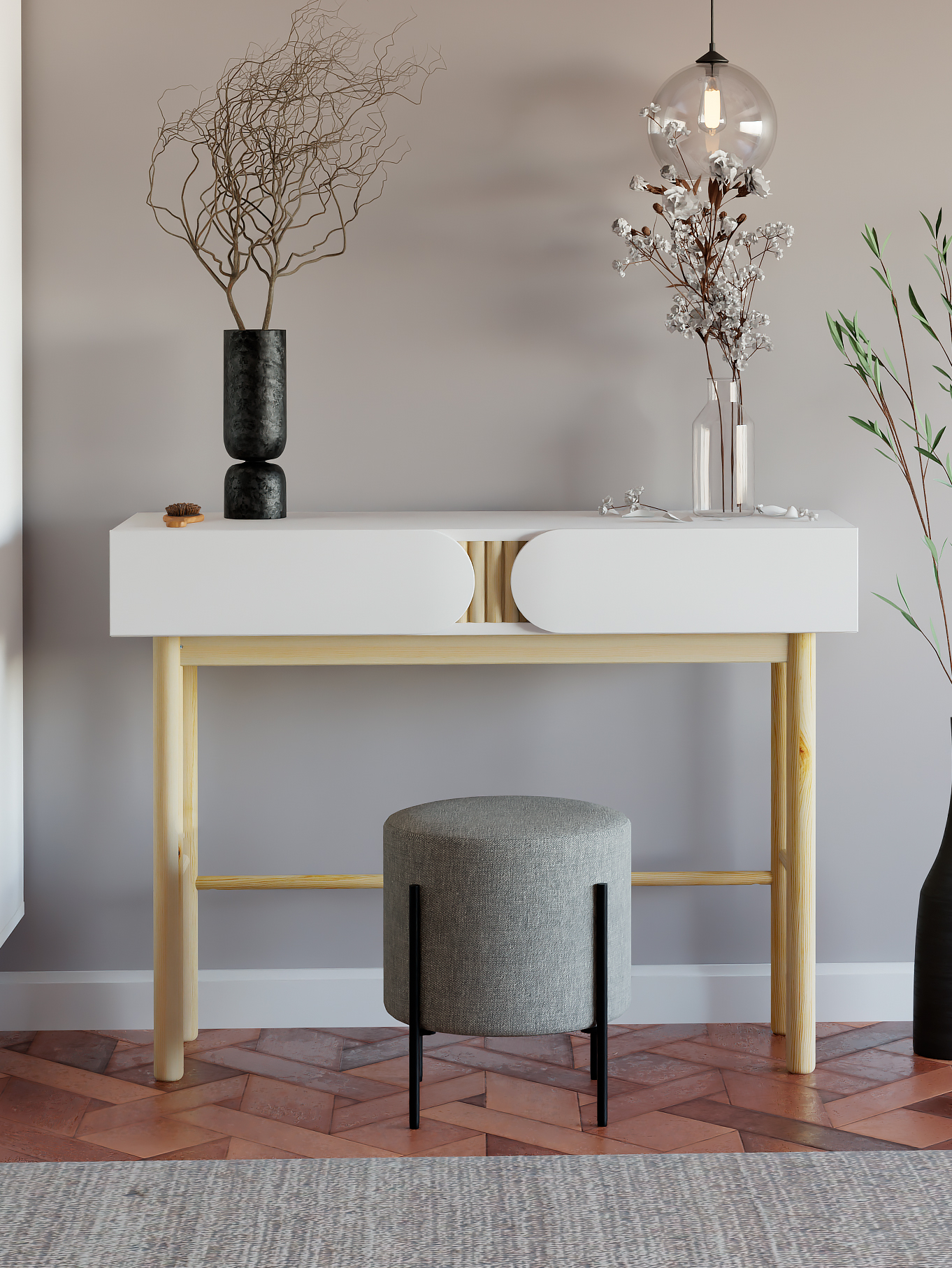 Элегантный минималистичный дизайн и натуральные материалы делают этот туалетный столик не только практичным, но и стильным элементом интерьера. Вы можете легко вписать его в различные стили, начиная от классики и заканчивая современными направлениями.