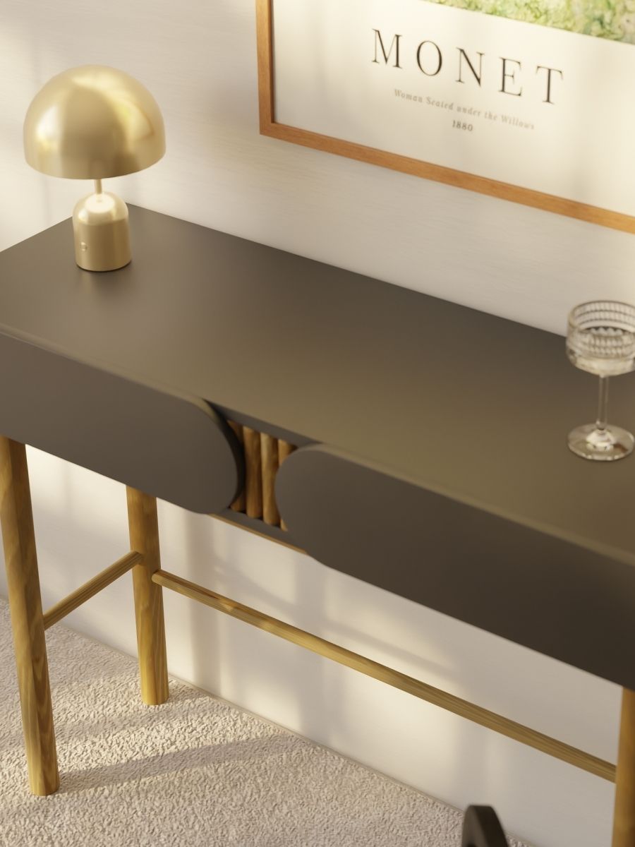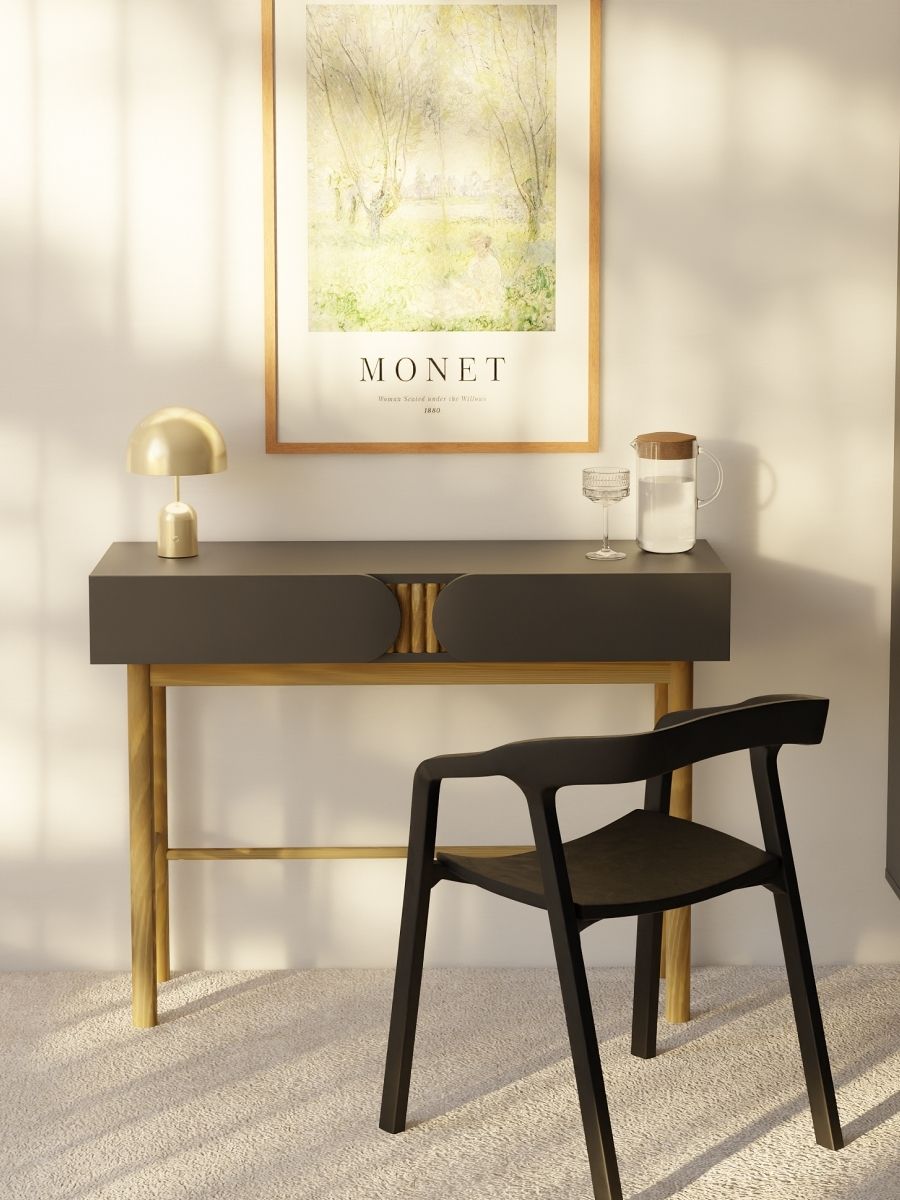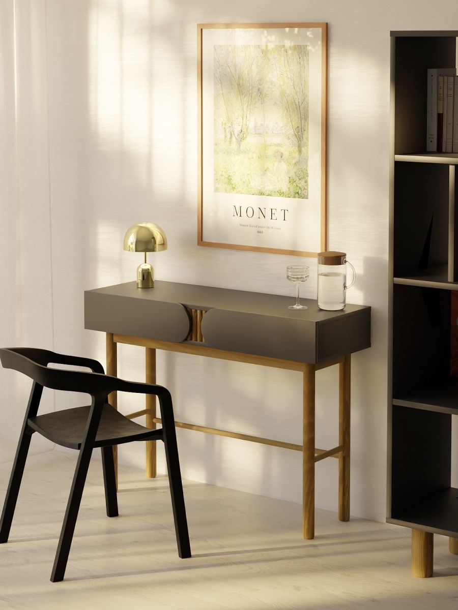 Цвет графит ДСП и подстолье из массива сосны придают любому помещению уют и утонченность.