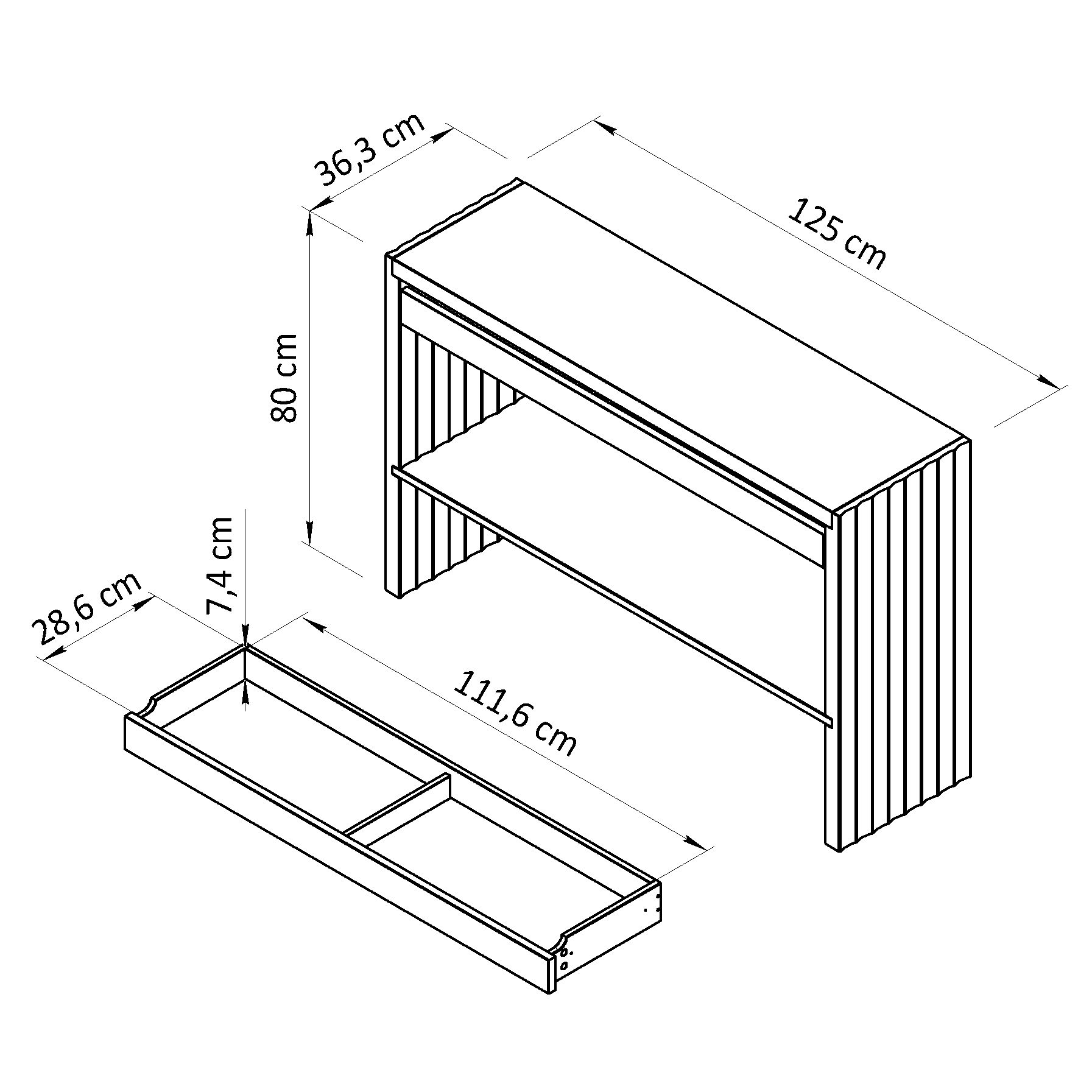 Особенностью модели является наличие удобного ящика и полки, которые позволяют эффективно использовать пространство. Ящик идеально подходит для хранения мелочей и аксессуаров, что поможет поддерживать порядок в комнате. Полка может служить местом для размещения книг, декоративных элементов или рамок с фотографиями.