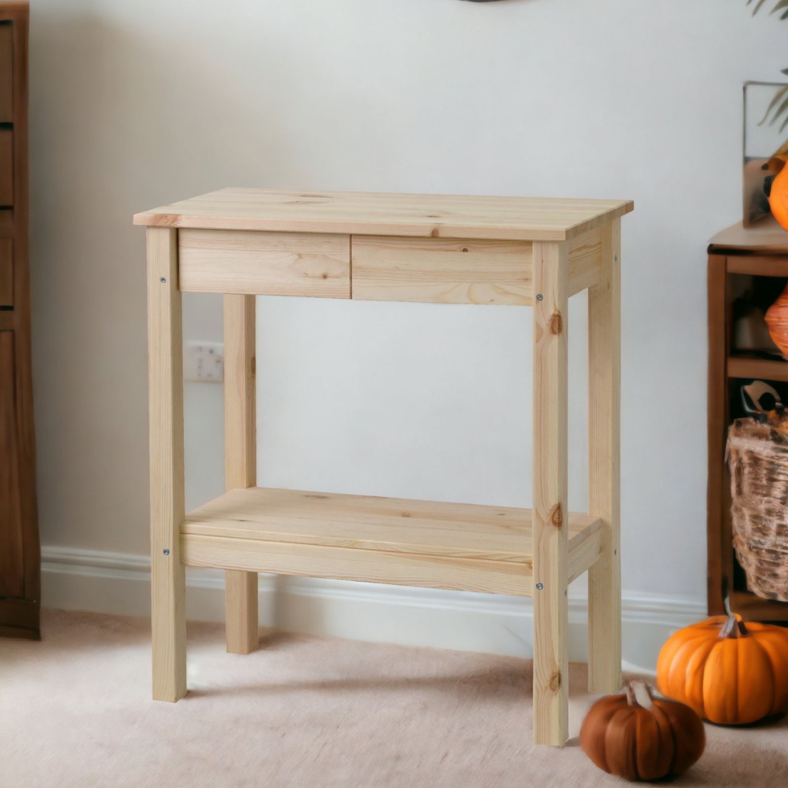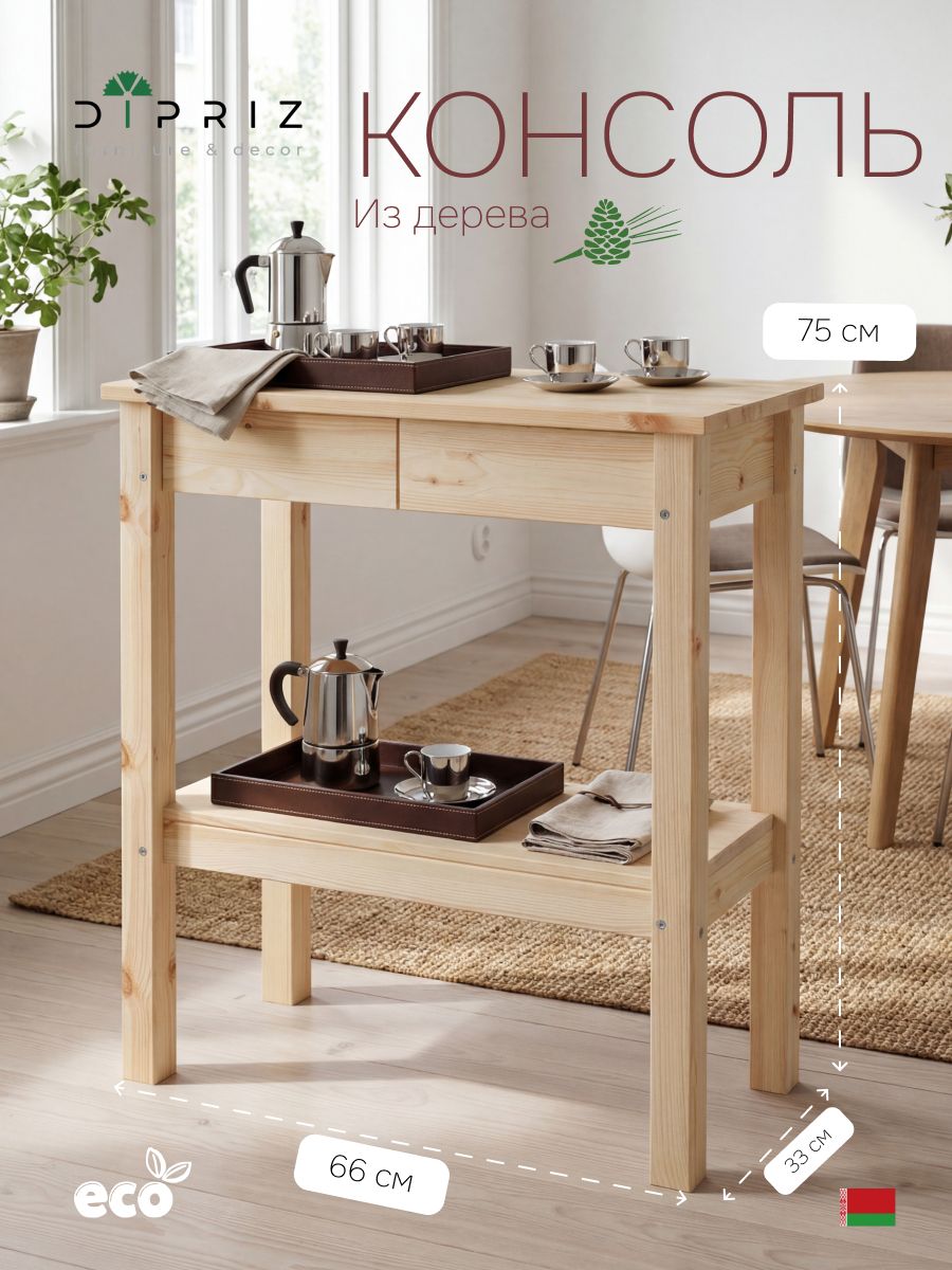 Мы решили не просто сделать обычную консоль, а сделать из неё уникальную вещь. Вы легко можете использовать её как стеллаж в любой комнате вашего дома, а можете использовать её как консоль. Благодаря конструкции, вещь является уникальной, на ней можно сидеть, можно использовать как столик, можно просто поставить и хранить в ней вещи. Мы добавили 1 полочку, которая не только повышает надежность конструкции, но и является местом куда можно положить что-нибудь из ваших любимых вещей. В производстве использовались только экологически чистые отделочные материалы, что гарантирует полную безопасность использования как детьми, так и взрослыми. Универсальная консоль не имеет отделки, а это значит, что вы можете покрыть его лаком или любым материалом, который предназначен для работы с натуральным деревом, таким образом только у вас будет уникальный товар, который не встретится ни у кого другого. Мы используем только качественные материалы и фурнитуру. чтобы наша мебель радовала вас очень долгое время. Вы можете использовать консоль в любом месте вашего дома: на кухне, в гостиной, в спальне, зале, летом можете использовать на улице. Изготовленные из качественных материалов, они обеспечивают прочность и долговечность. Для обеспечения максимальной прочности и долговечности при необходимости подтягивайте шурупы при сборке мебели. Создавайте уютную и стильную обстановку в своей кухне с помощью нашей мебели!