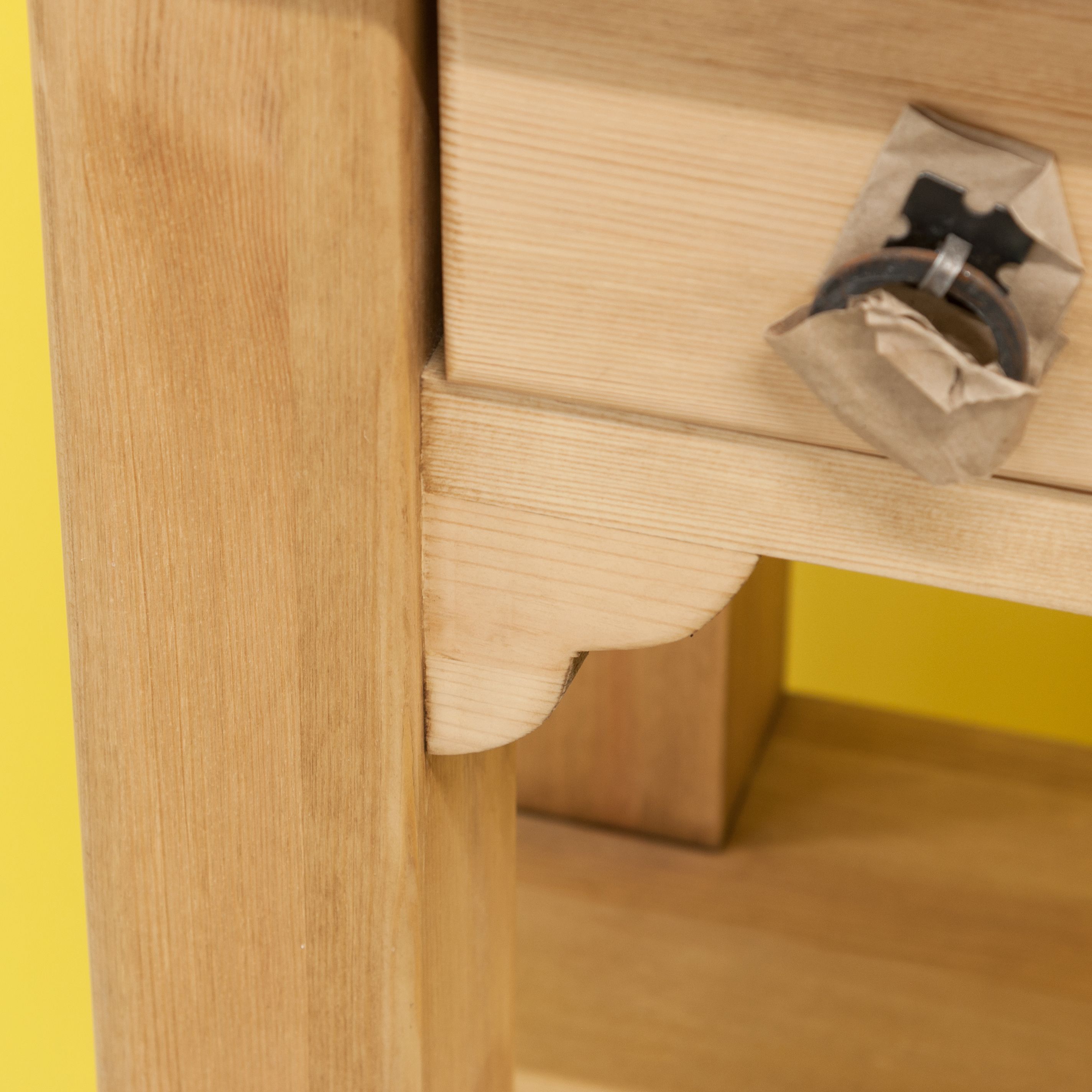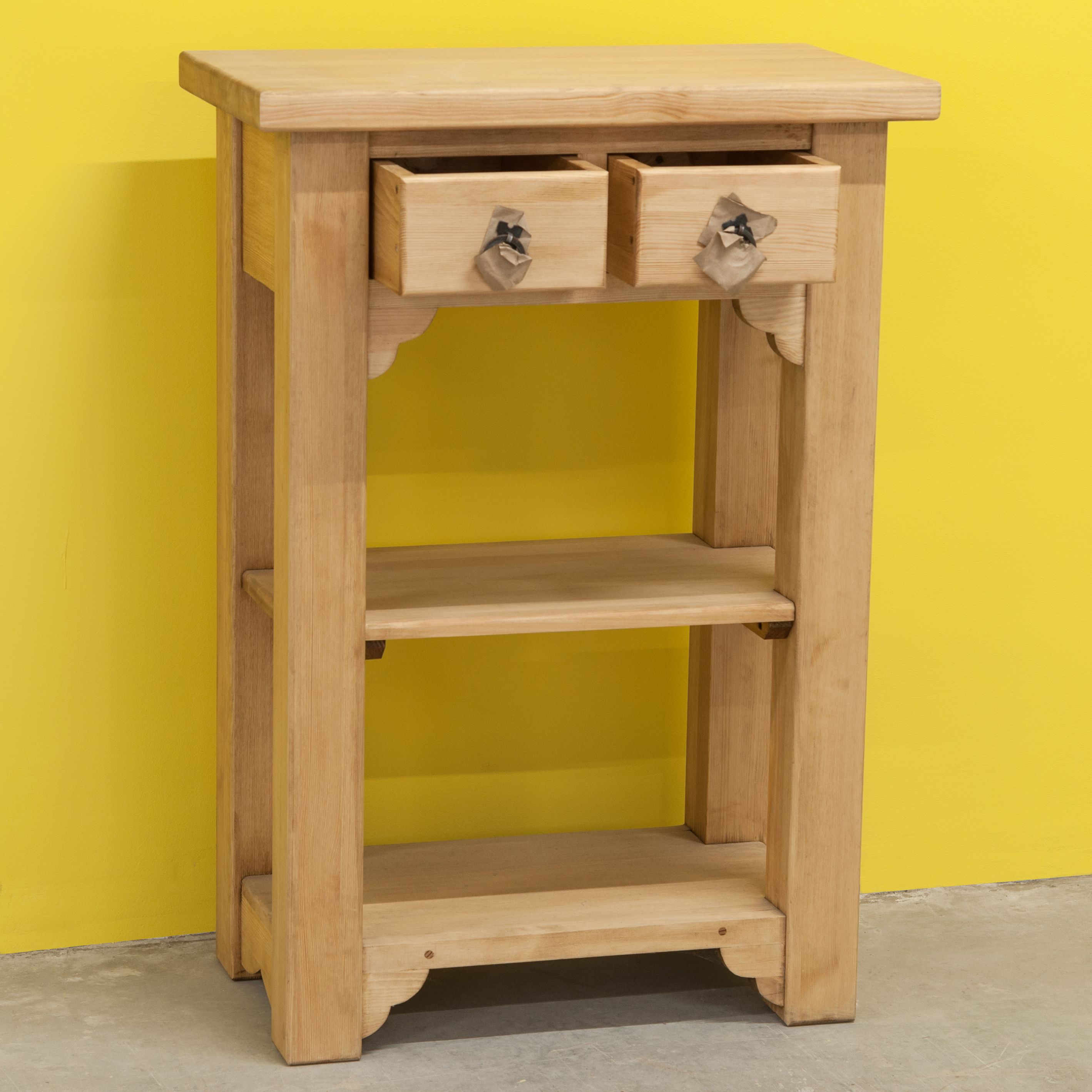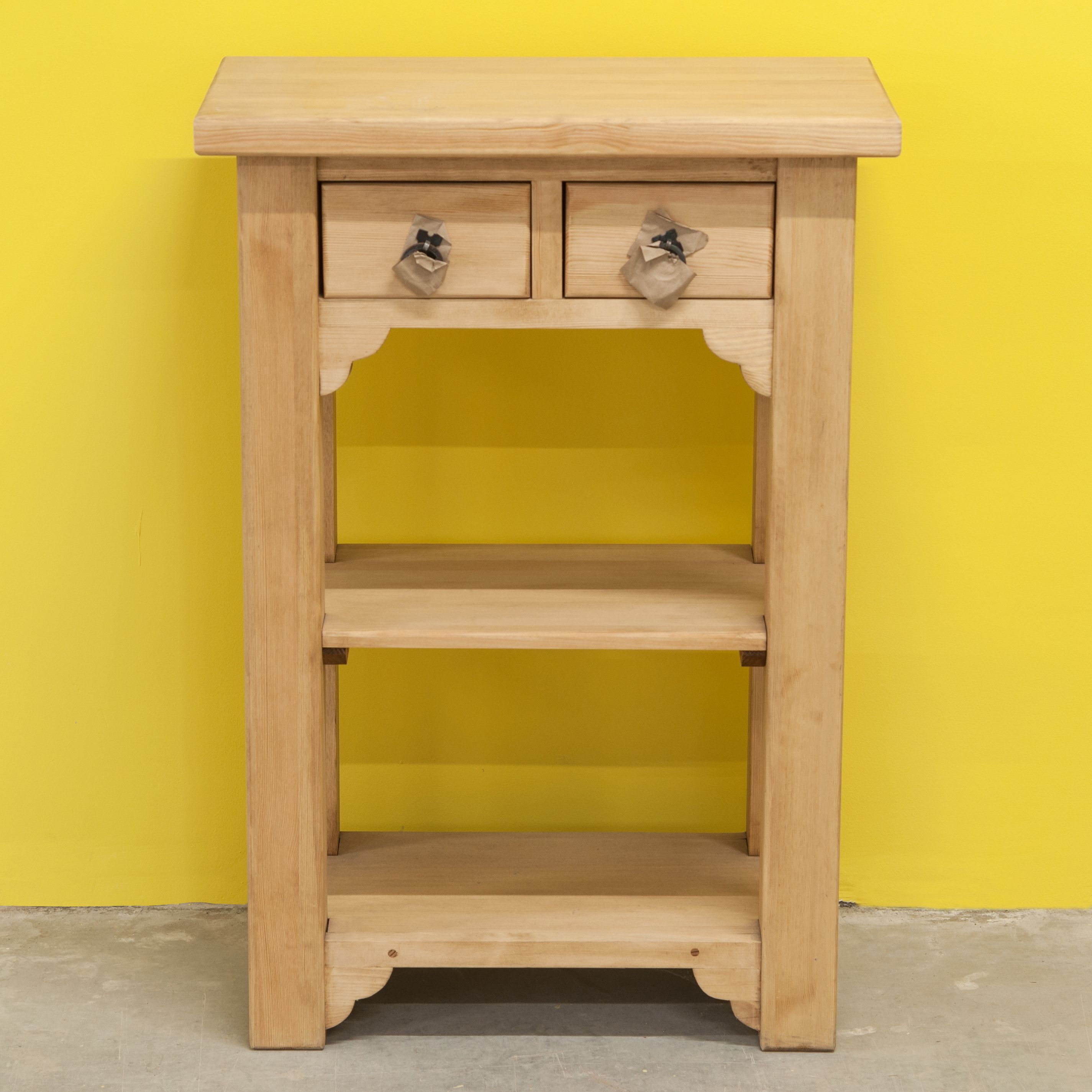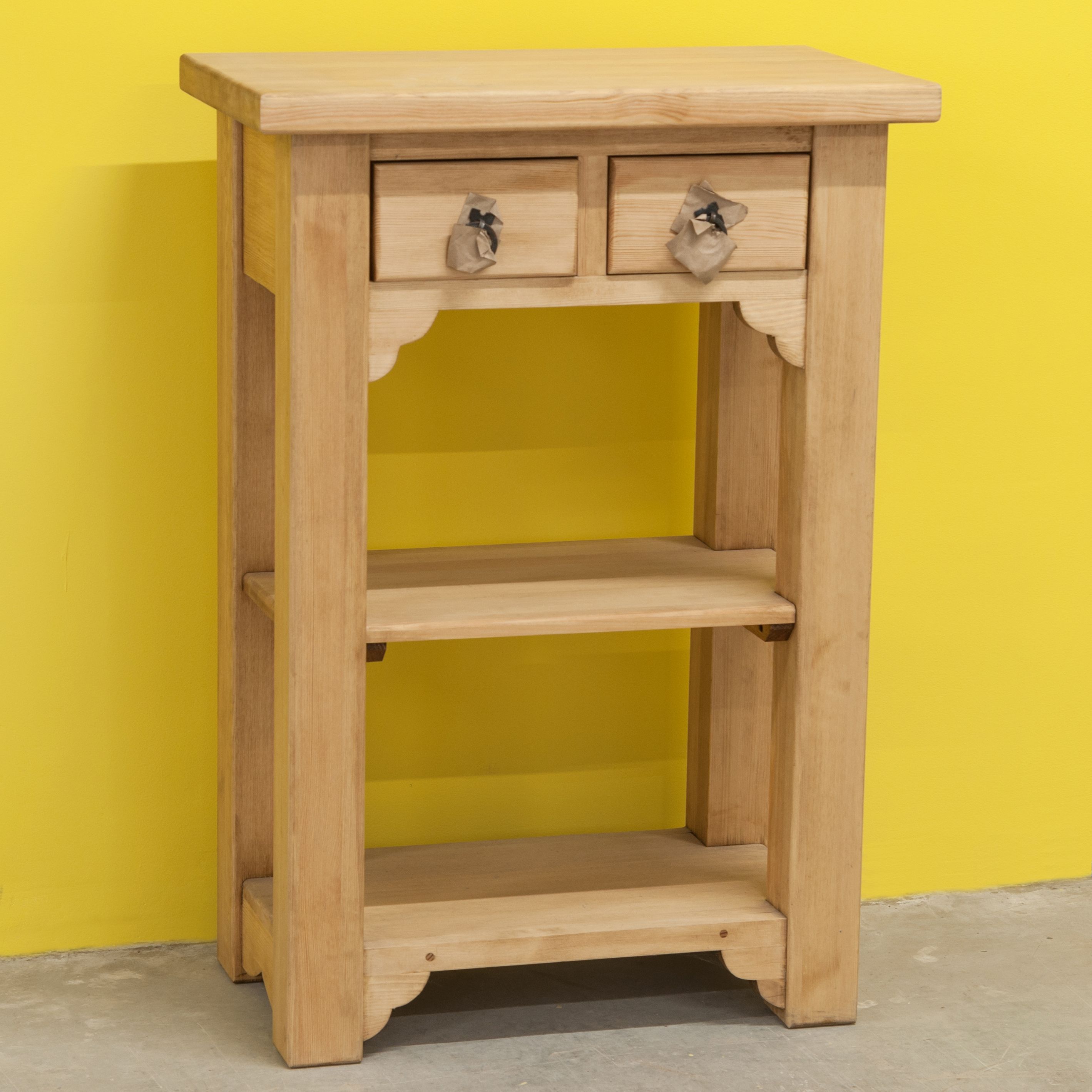 Столик консоль из натурального массива сосны в стиле прованс с декоративными фасадами и металлическими ручками создаст атмосферу уюта и элегантности в вашем интерьере.