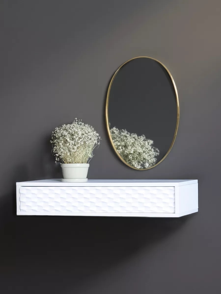Данная консоль надежно крепится к стене, обеспечивая максимальную стабильность и долговечность. Благодаря своей прочности, она легко выдерживает большую нагрузку, позволяя разместить на ней все необходимые предметы и аксессуары. Фасады ящика украшены декоративными пазами, которые придают изделию богатый, современный вид.