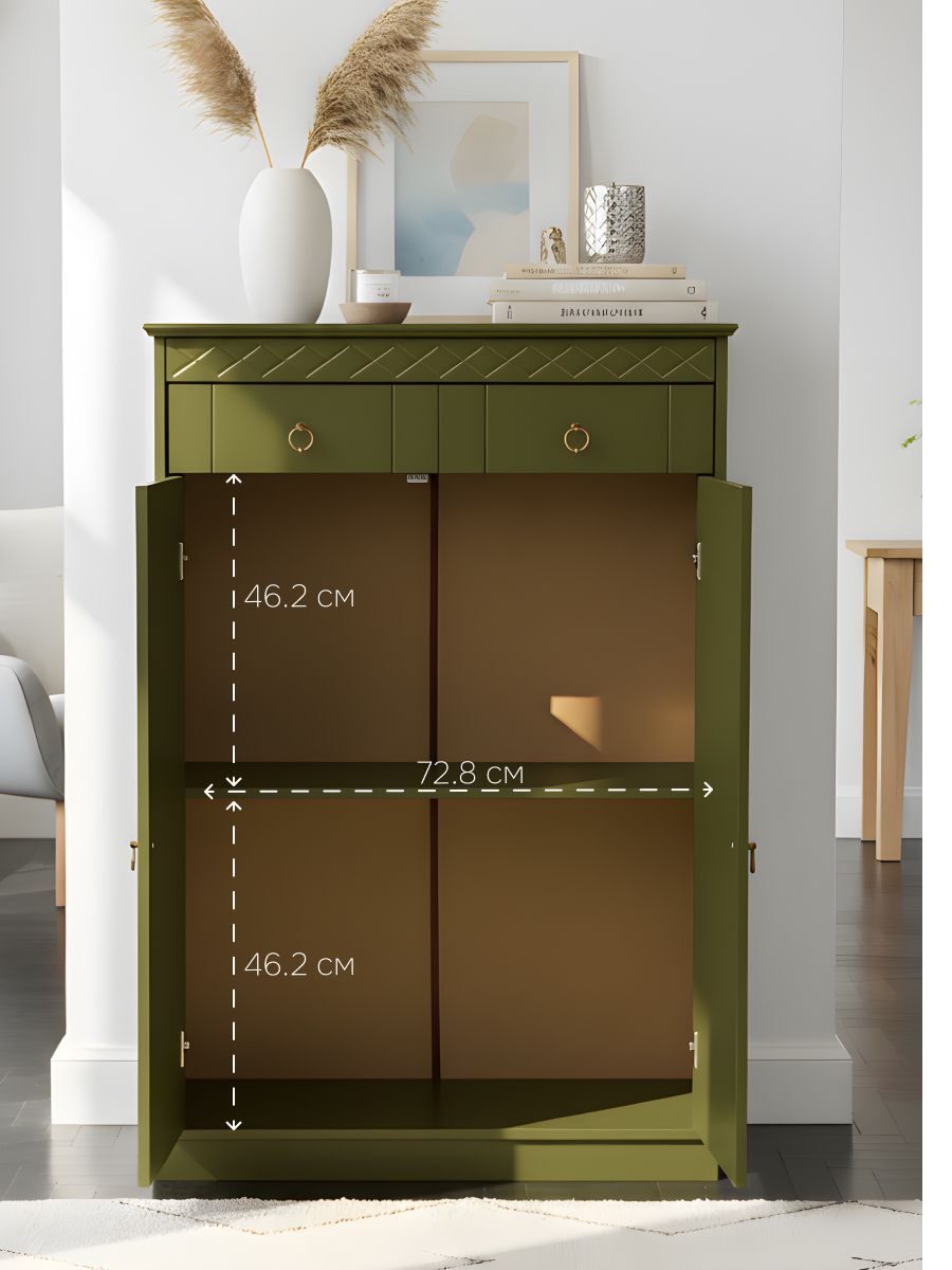 Тумба имеет два ящика, которые можно использовать для хранения различных вещей. Она также оснащена шариковыми телескопическими направляющими 310*17 мм, что позволяет легко открыть и закрыть ящики без лишних усилий. Высота тумбы 118,5 см, ширина - 78,8 см, глубина - 36,5 см.