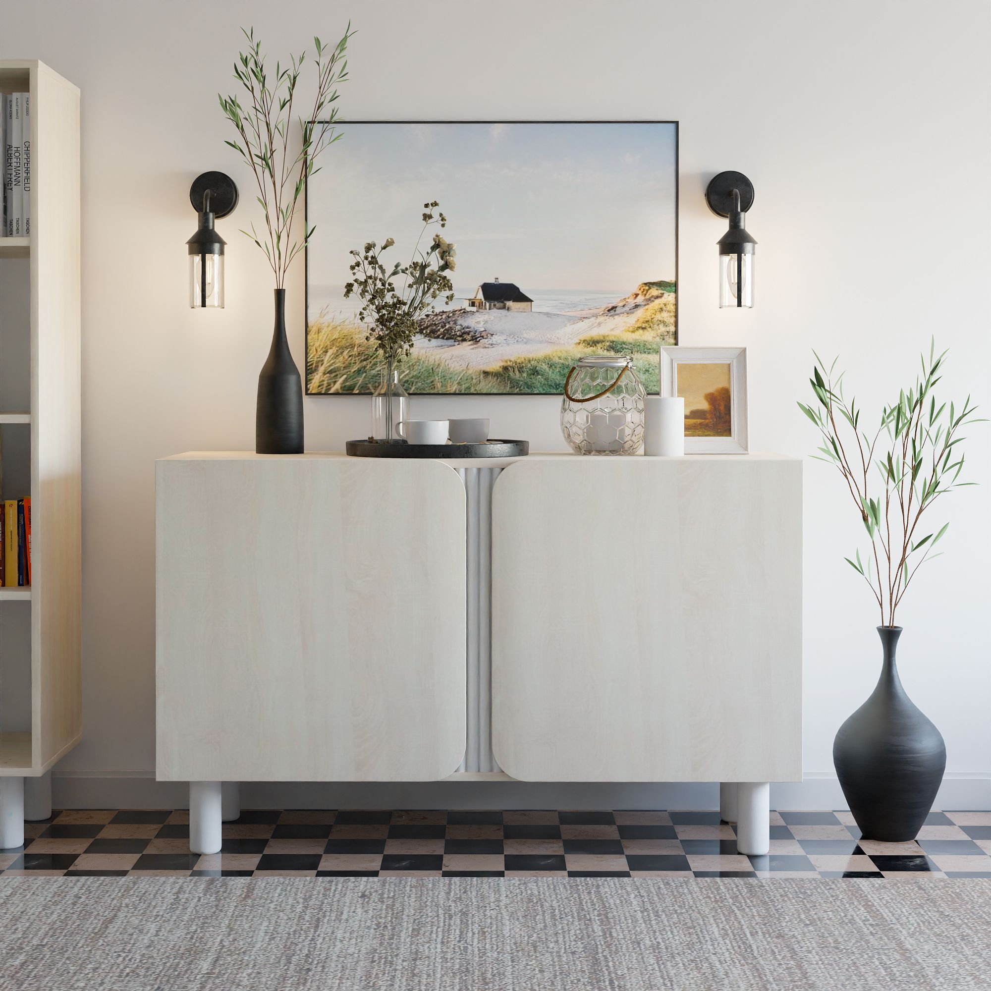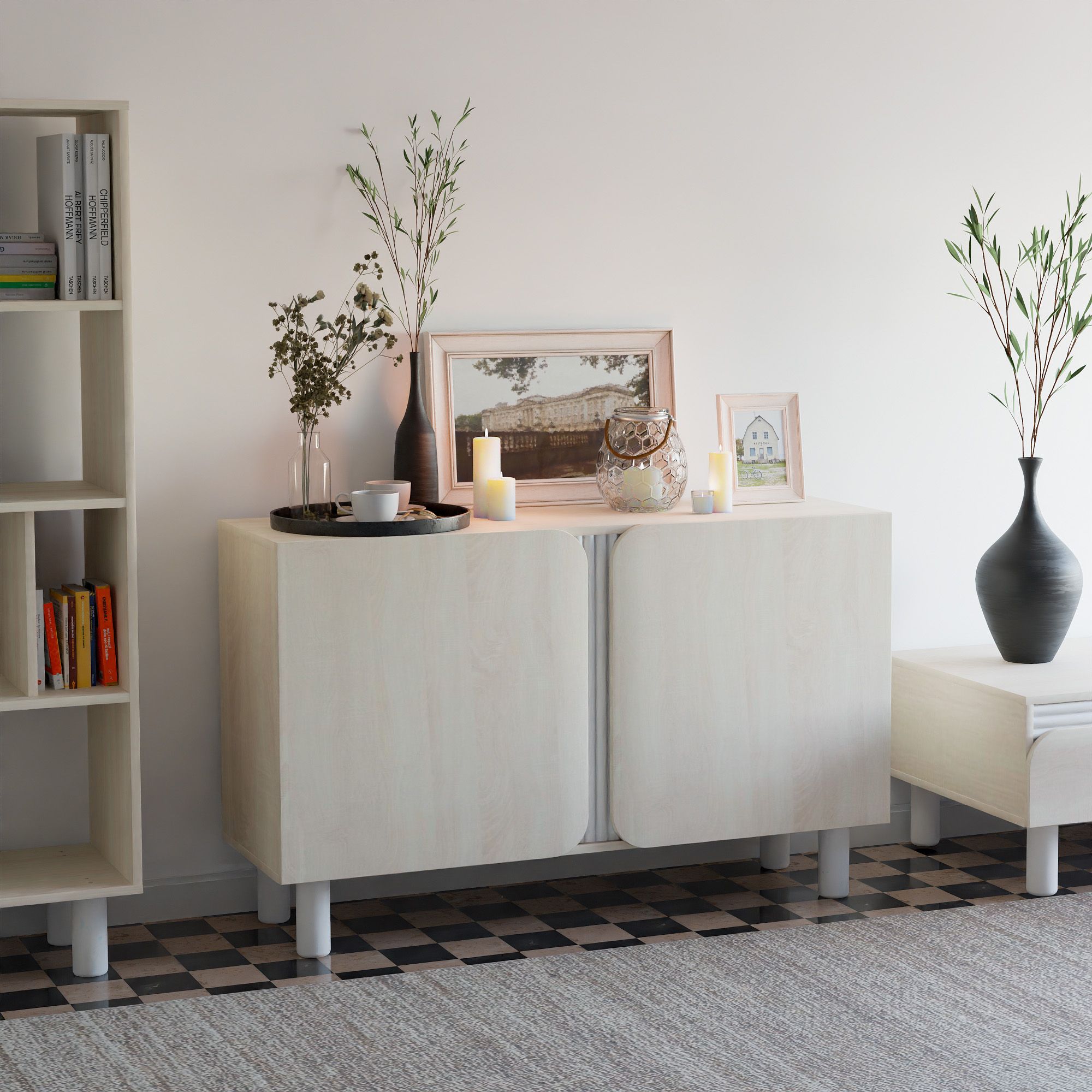 Представляем вам современную дизайнерскую тумбу с 2 дверцами Ола, которая станет утонченным дополнением вашего интерьера. Размеры 120х40х75 см идеально подходят для установки в любой комнате — будь то гостиная, спальня или домашний офис. Этот низкий буфет изготавливается из качественного ЛДСП и сосны, что обеспечивает не только привлекательный внешний вид, но и долговечность.